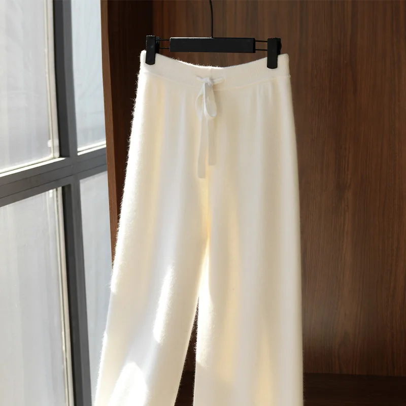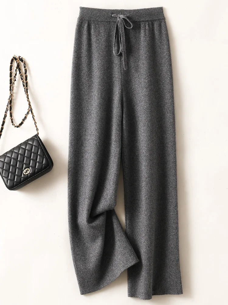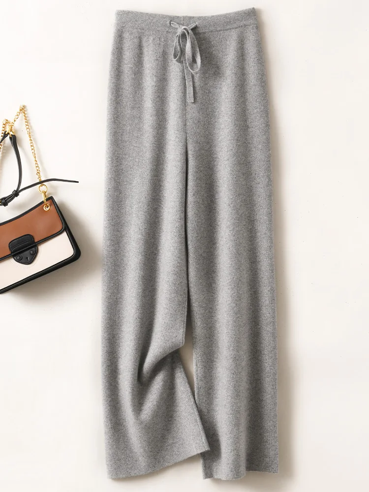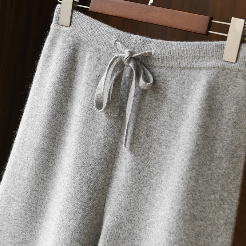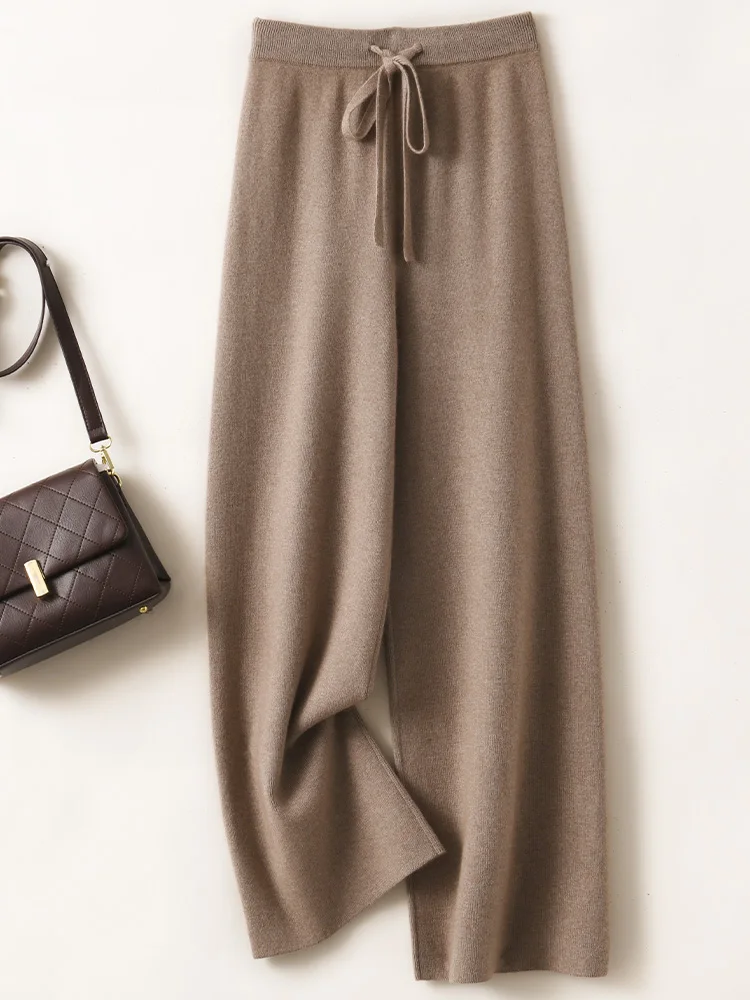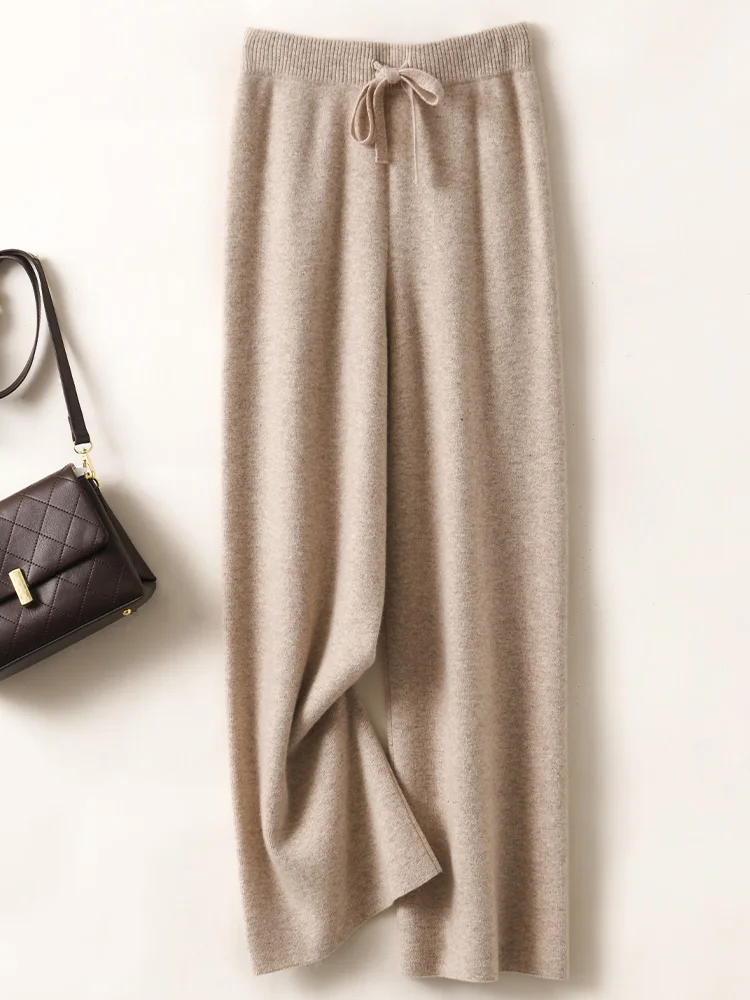 Pantaloni da donna autunno inverno Pantaloni basic morbidi casual con fascia 100% lana merino Maglieria Pantaloni popolari coreani