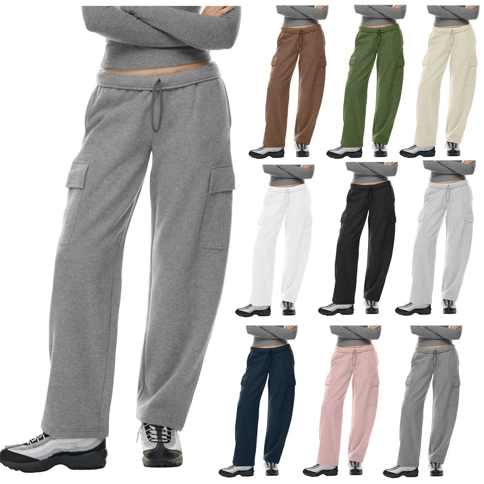 Recensisci per primo “Pantaloni da donna causali Pantaloni larghi a vita alta alla moda Pantaloni da jogging a gamba dritta Pantaloni sportivi con tasche Pantaloni con coulisse femminili”