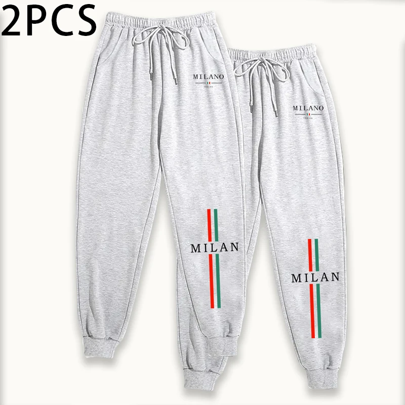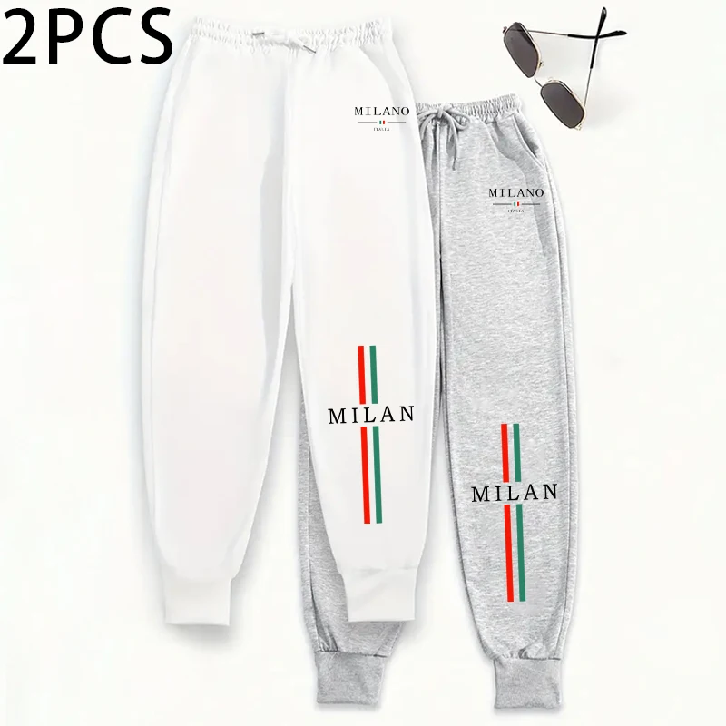 Pantaloni da jogging da donna 2 pezzi Italia Milano stampa pantaloni sportivi casual autunno inverno casa comfort all’aperto pantaloni moda confezione da 2