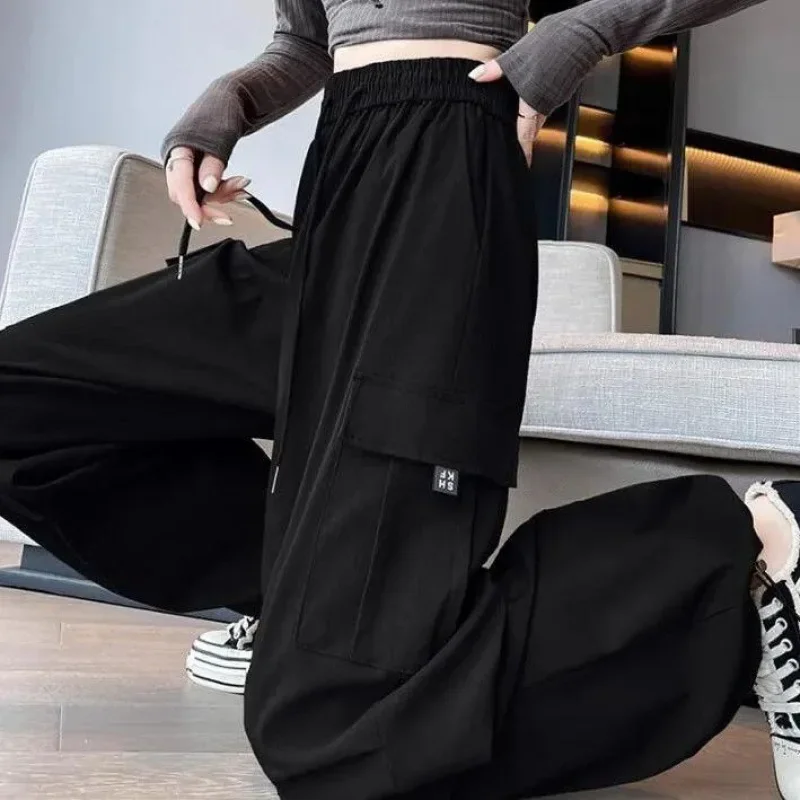 Pantaloni da lavoro rossi casual stile americano Pantaloni da donna a vita alta primavera estate Pantaloni sportivi larghi a gamba larga