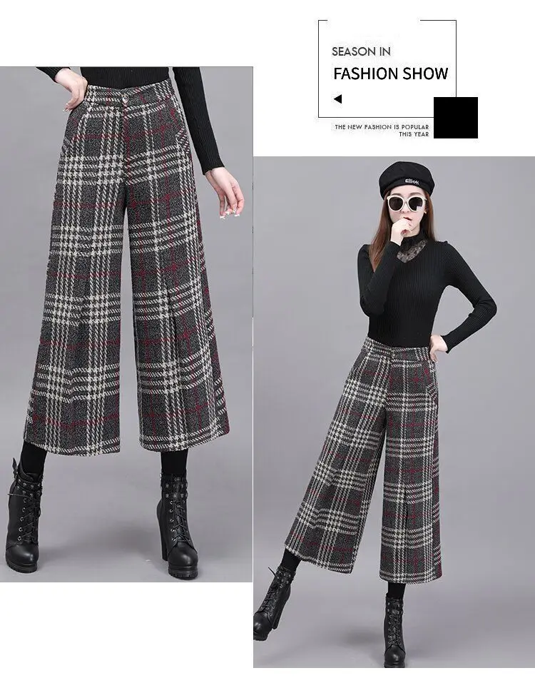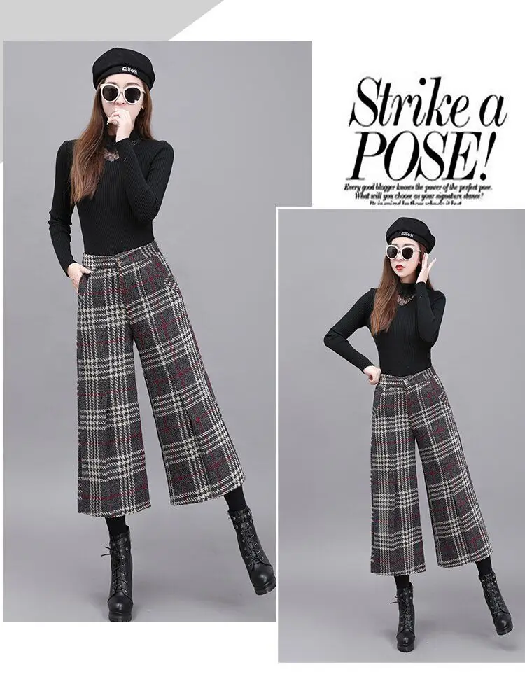 Recensisci per primo “Pantaloni scozzesi alla moda a gamba larga Pantaloni corti Pantaloni da donna Inverno Nuovi pantaloni con gonna ispessita Pantaloni con gamba altalena” Annulla risposta