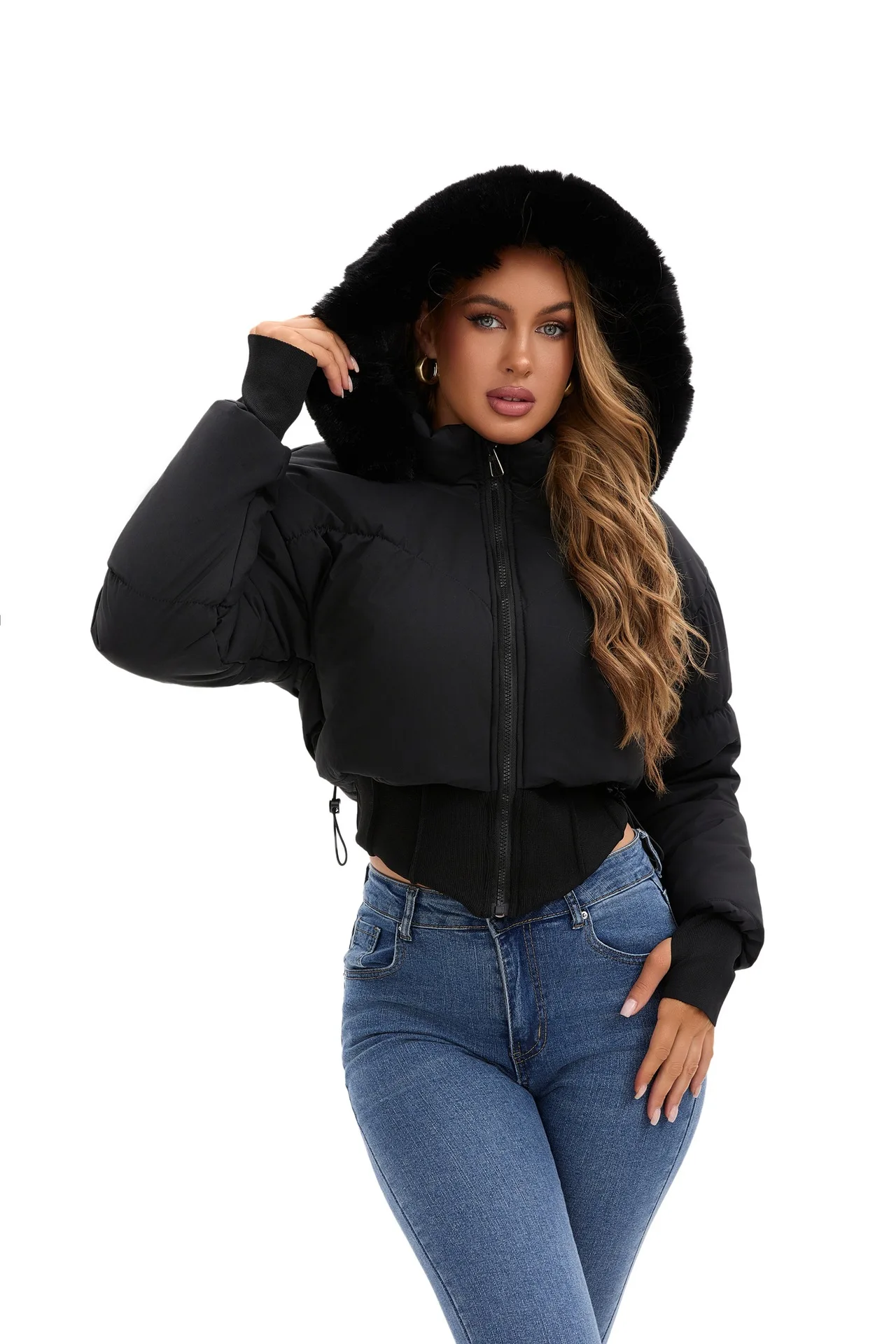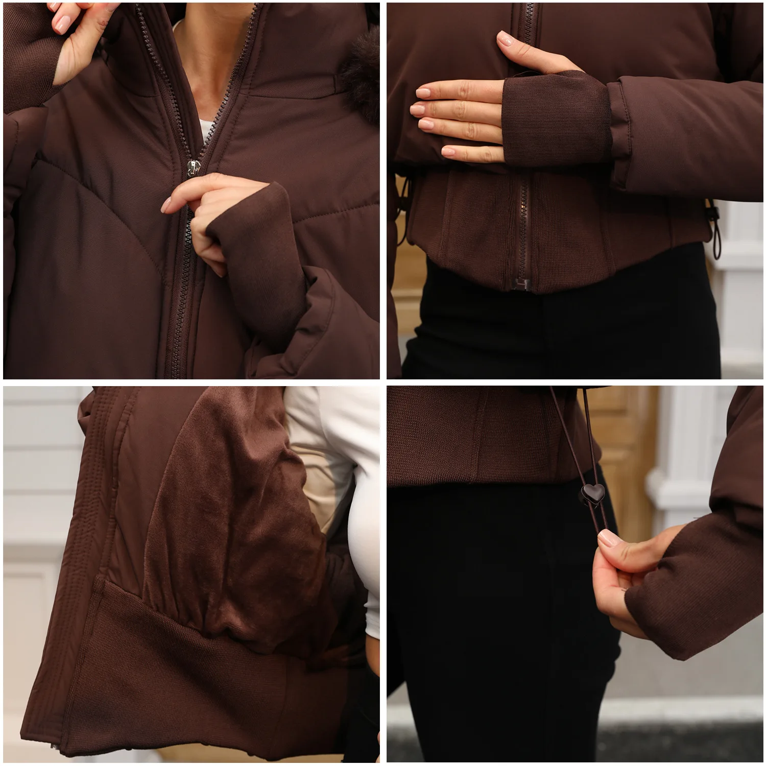 Piumini invernali da donna spessi e caldi Cappotti Parka Collo in pelliccia grande Cappuccio Donna Piumino imbottito in cotone Capispalla Cappotto H24