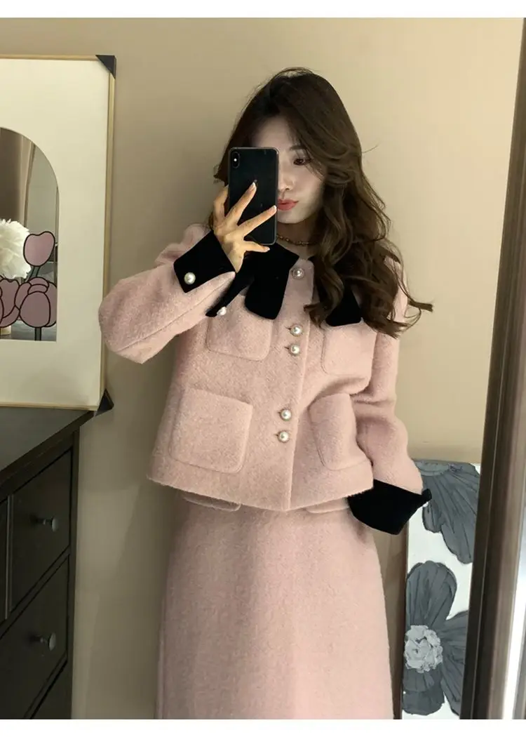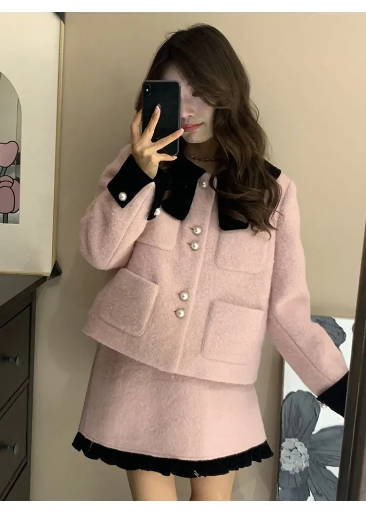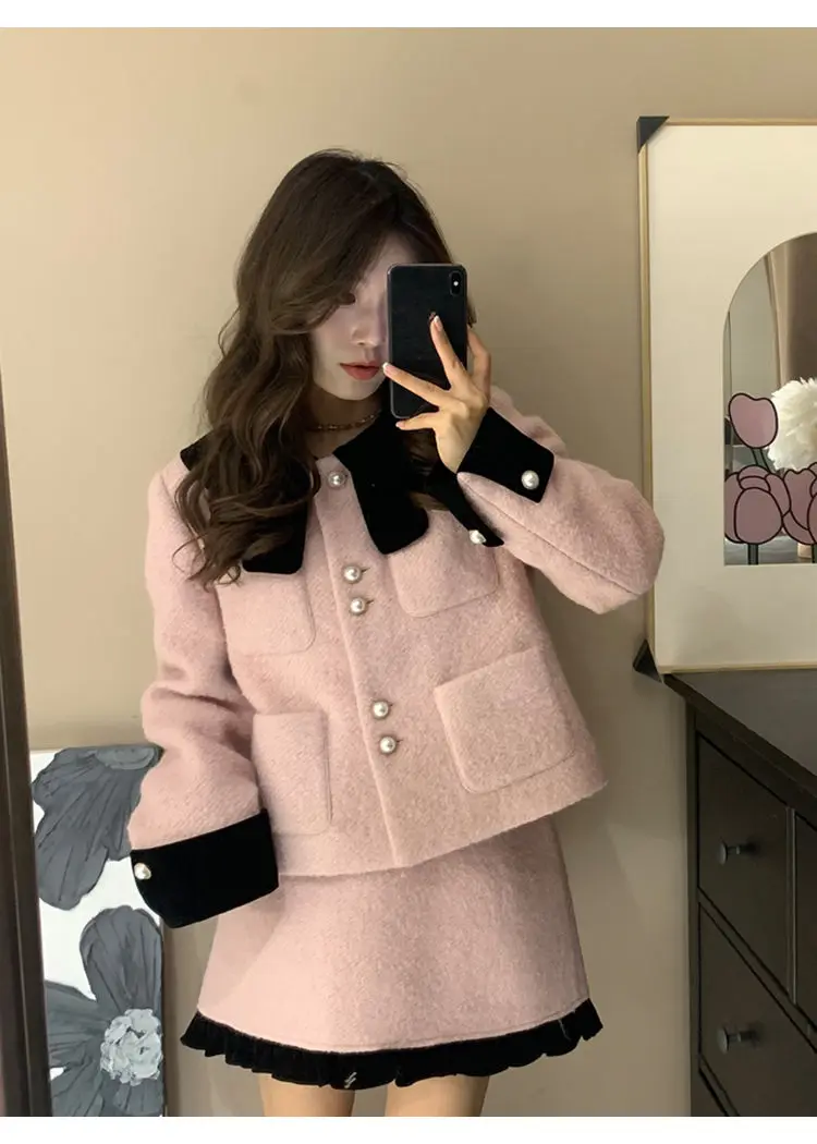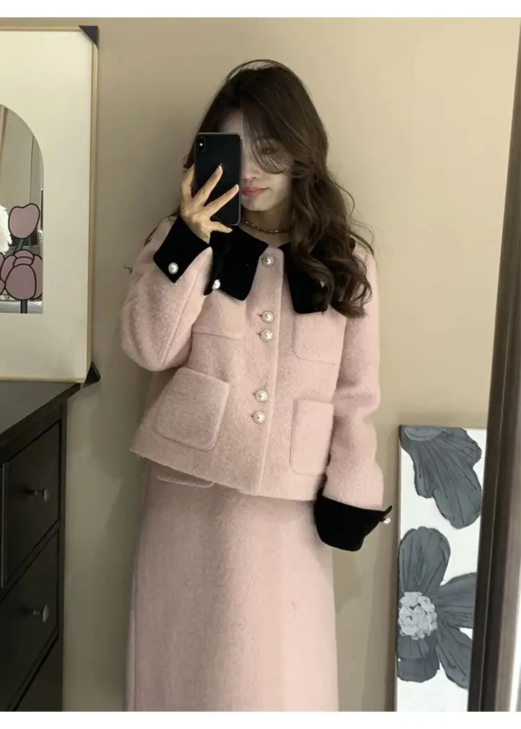 Plus Size Socialite elegante giacca da donna autunno e inverno Chubby Girl High Sense Coat Top gonna corta/lunga Set a due pezzi