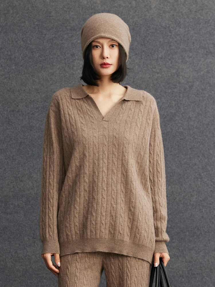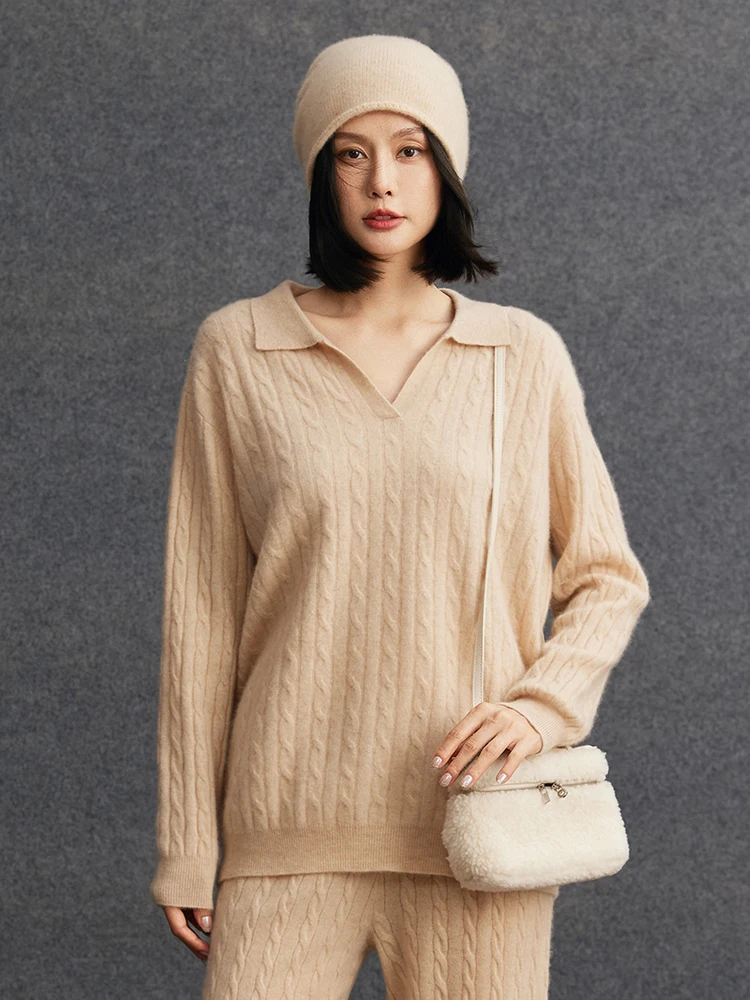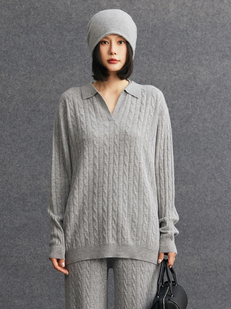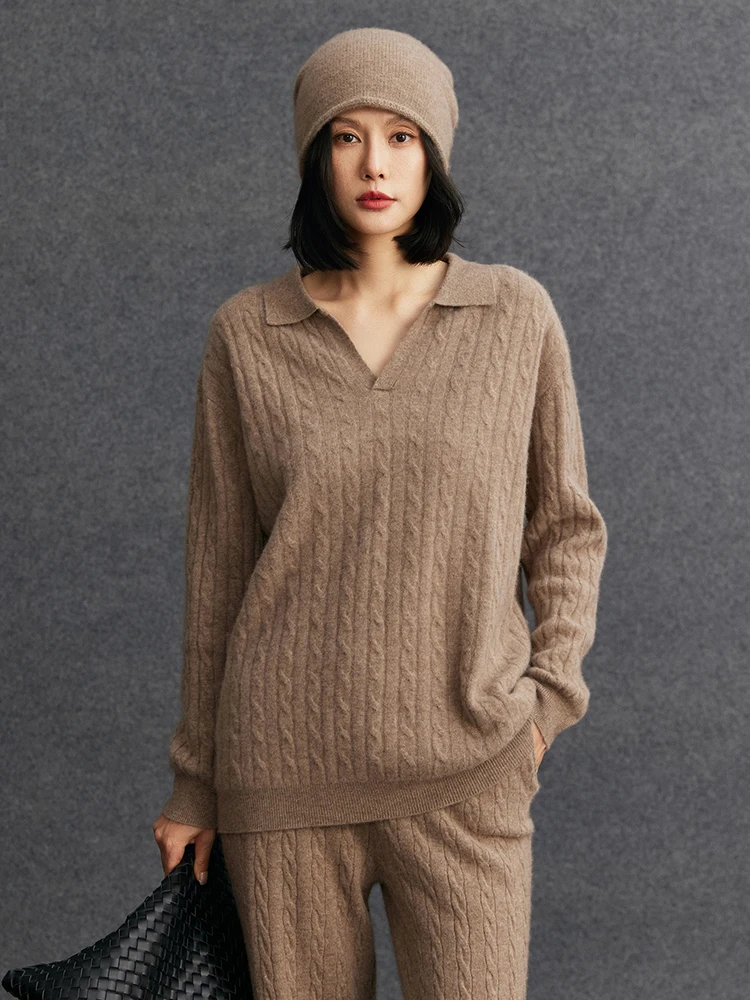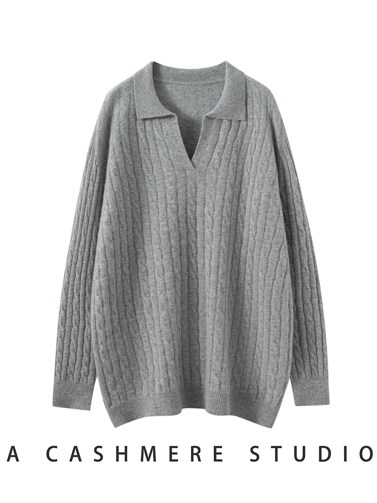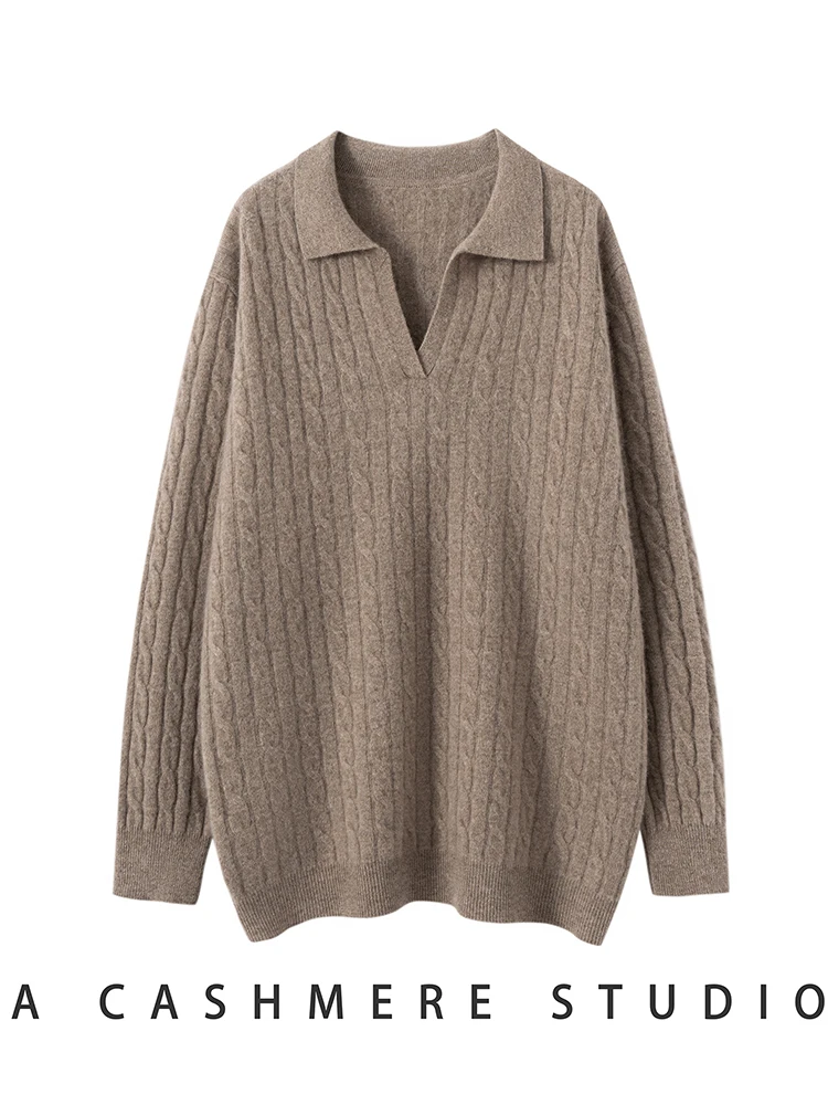 Polo da donna con scollo a V maglione pullover allentato casual 100% maglieria in cashmere caldo lusso twist fiore maglione autunno inverno vestiti Top