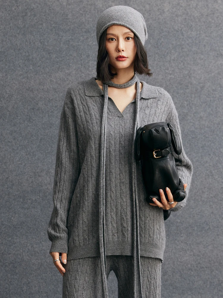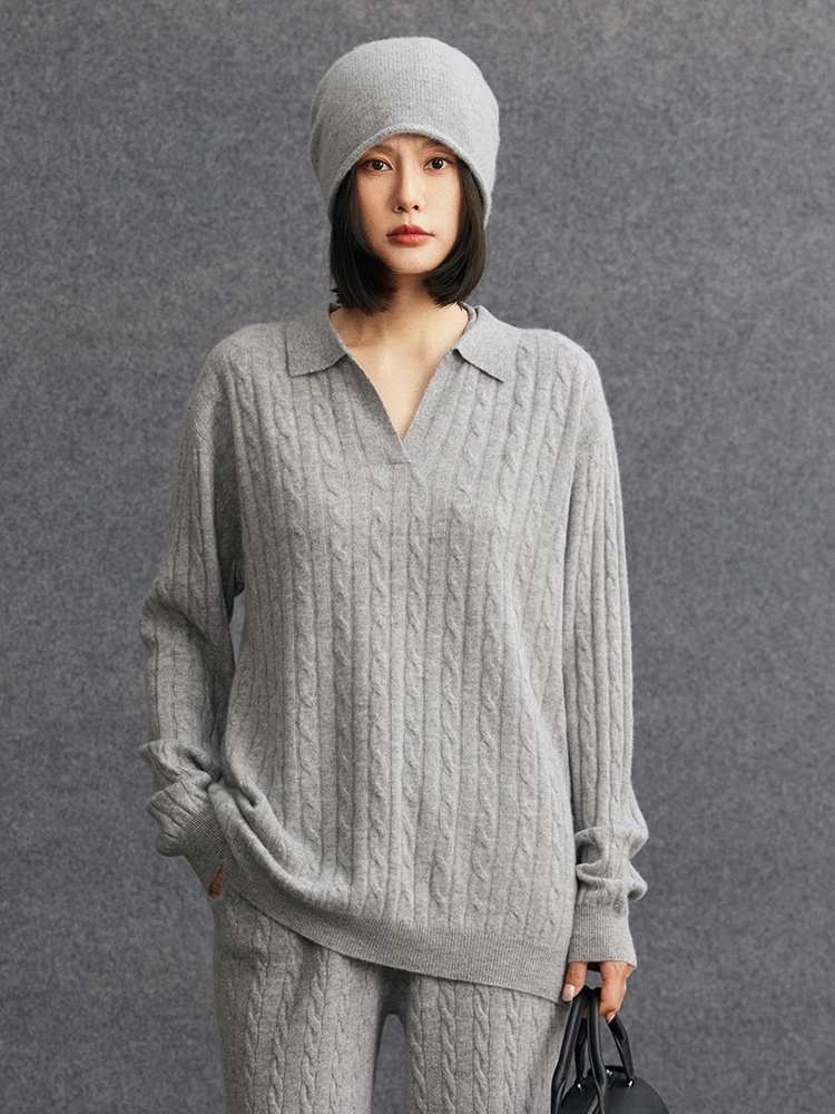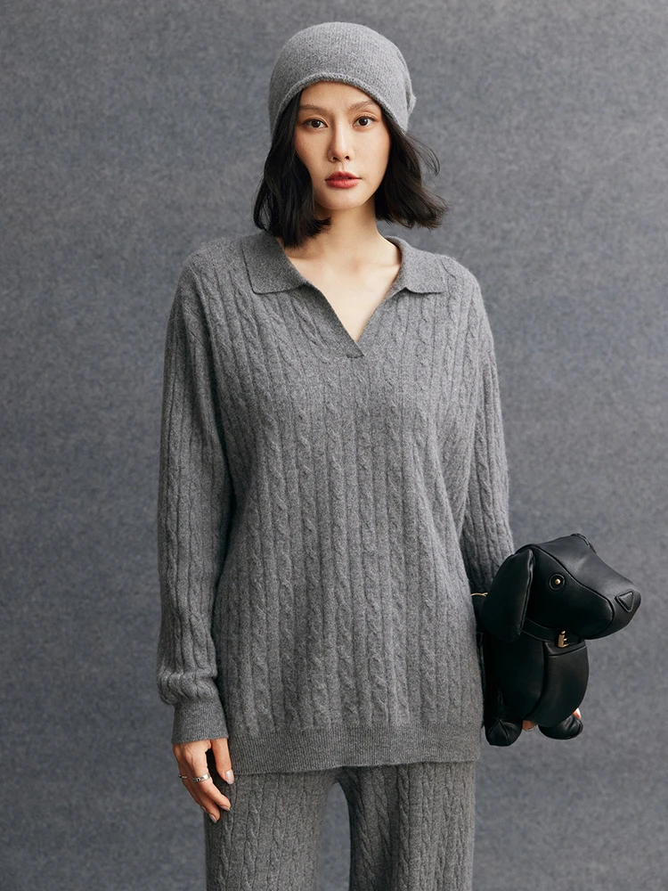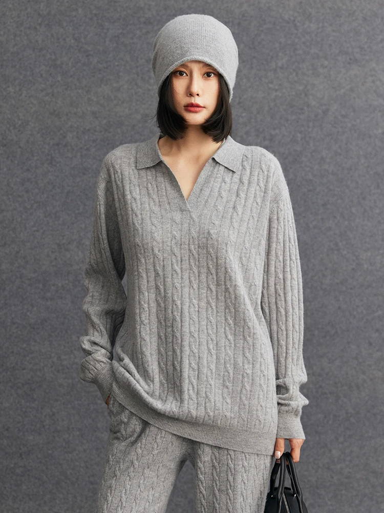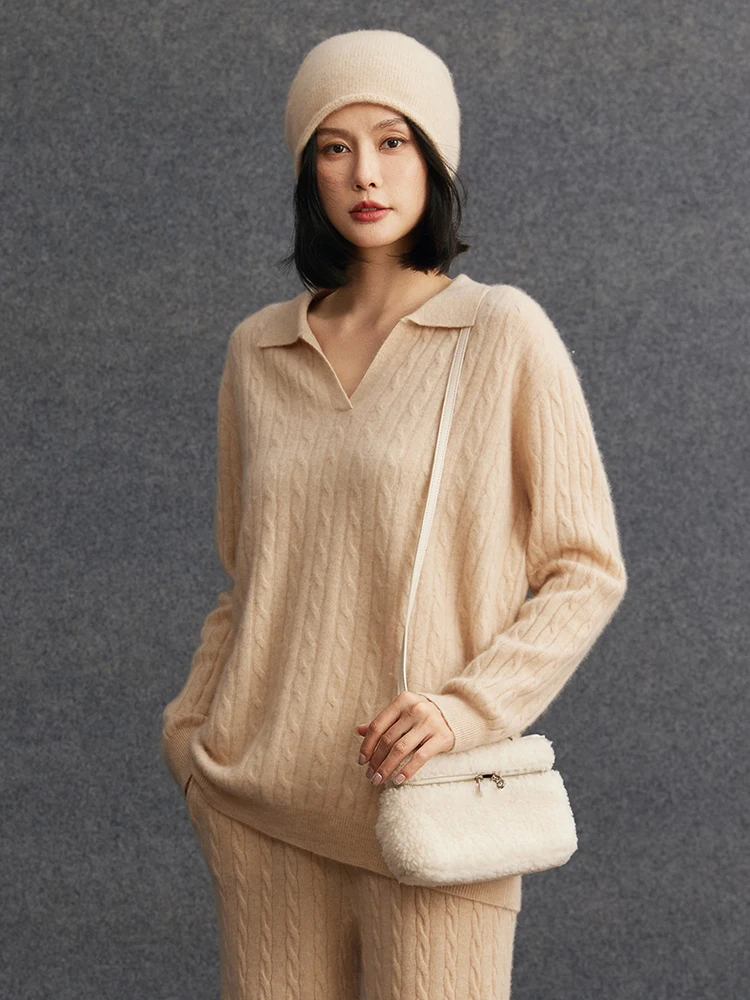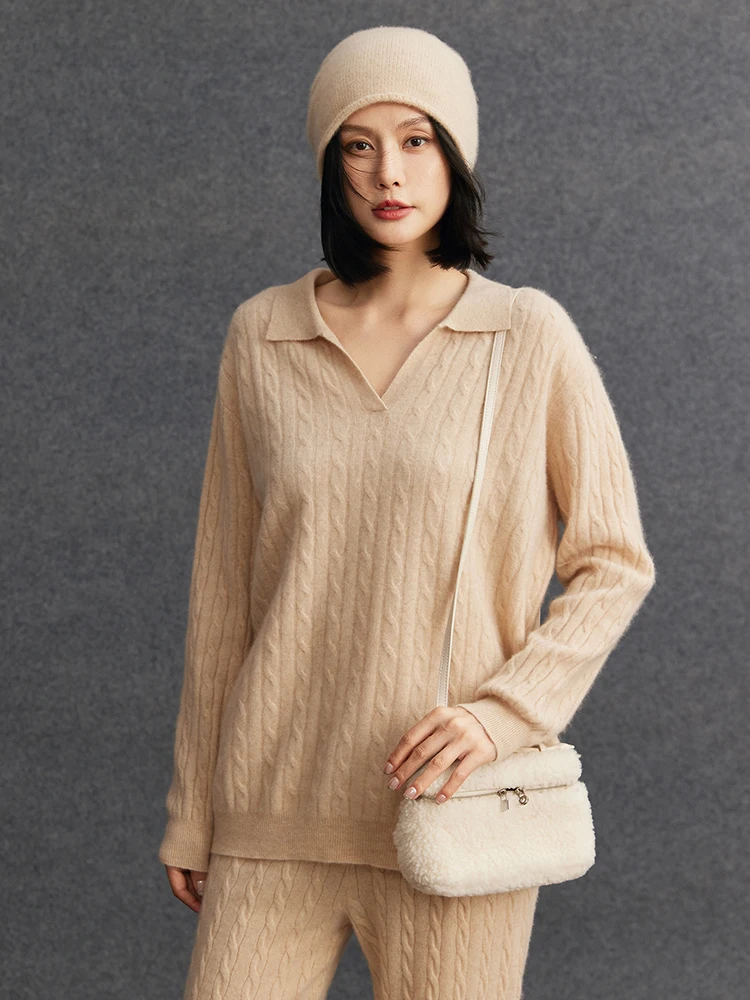 Polo da donna con scollo a V maglione pullover allentato casual 100% maglieria in cashmere caldo lusso twist fiore maglione autunno inverno vestiti Top