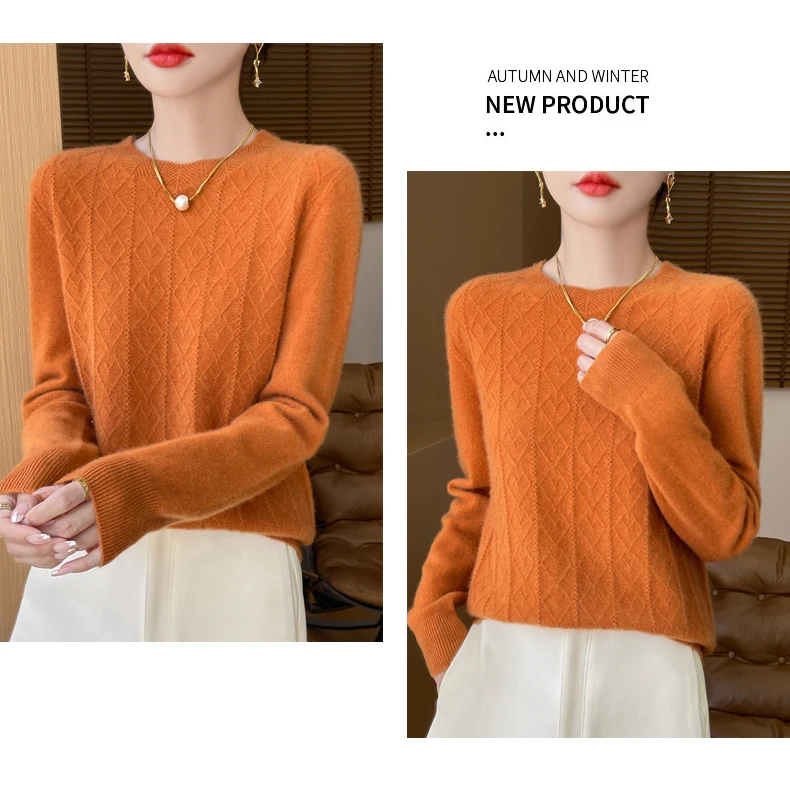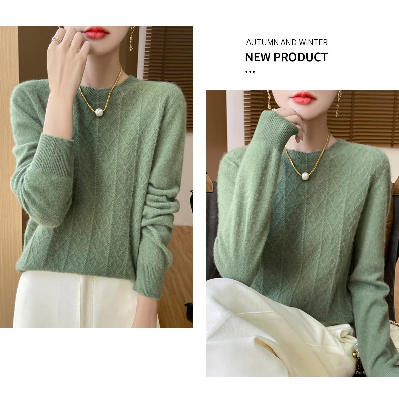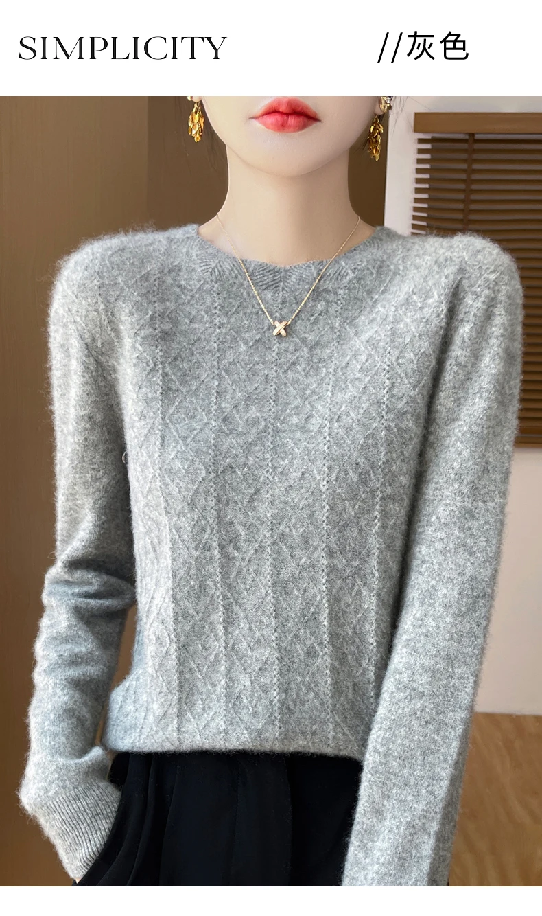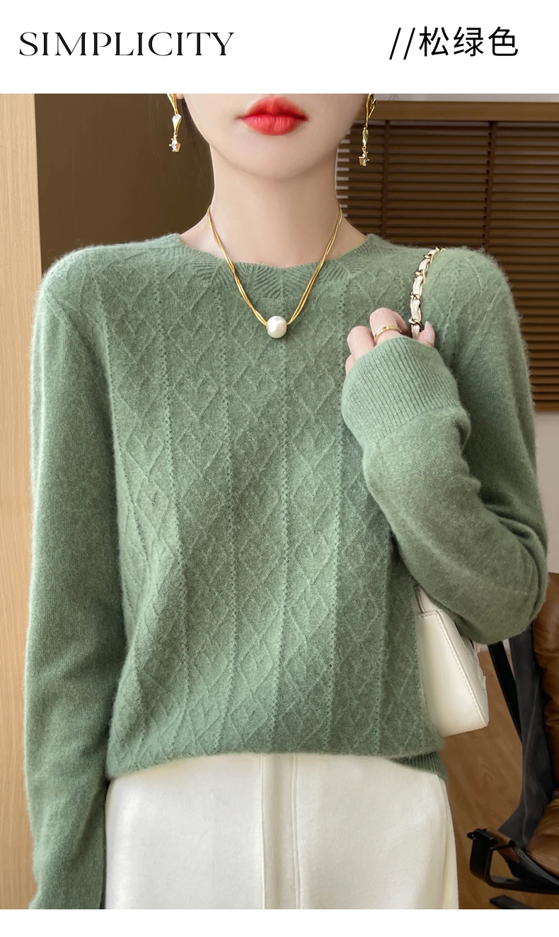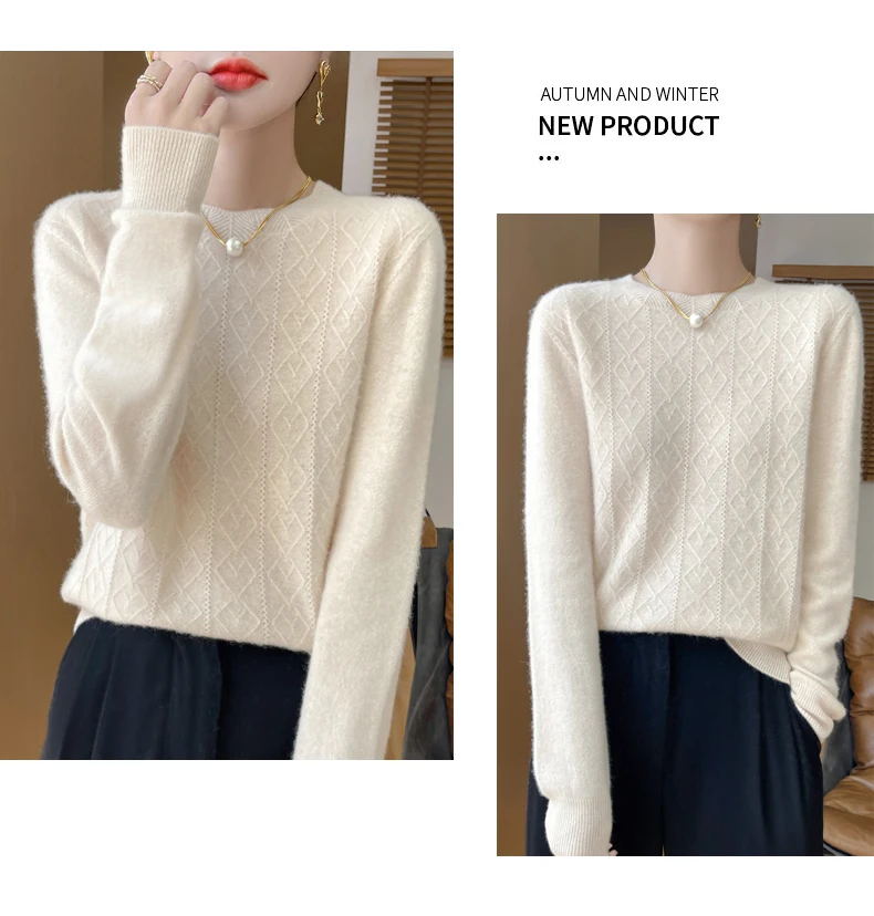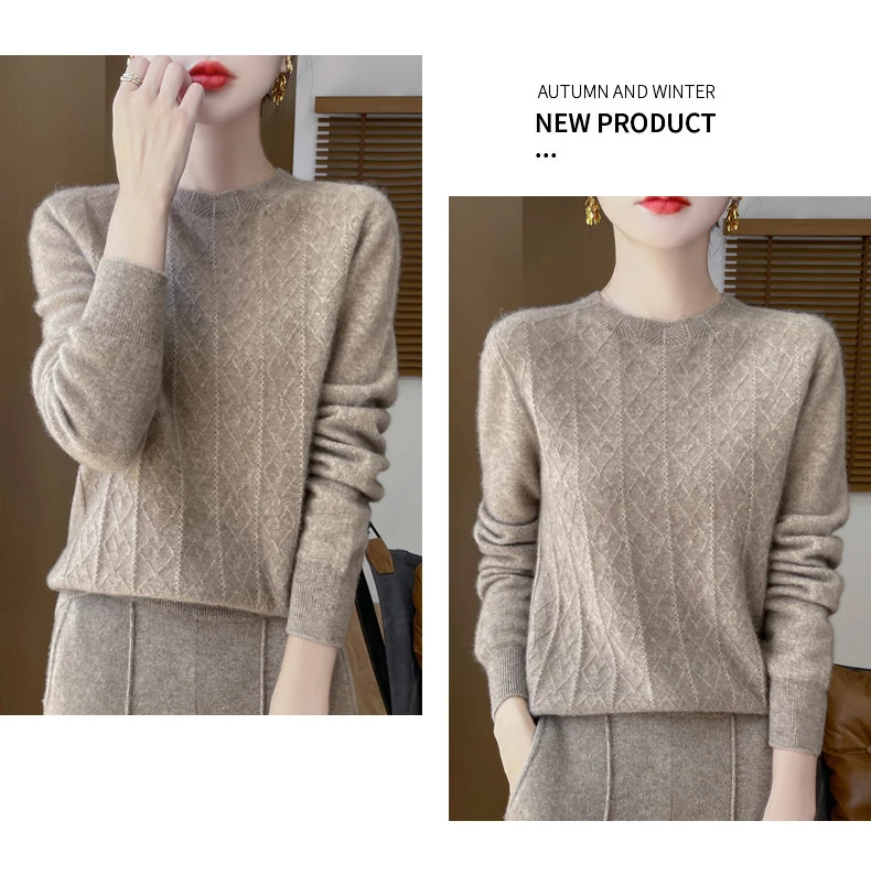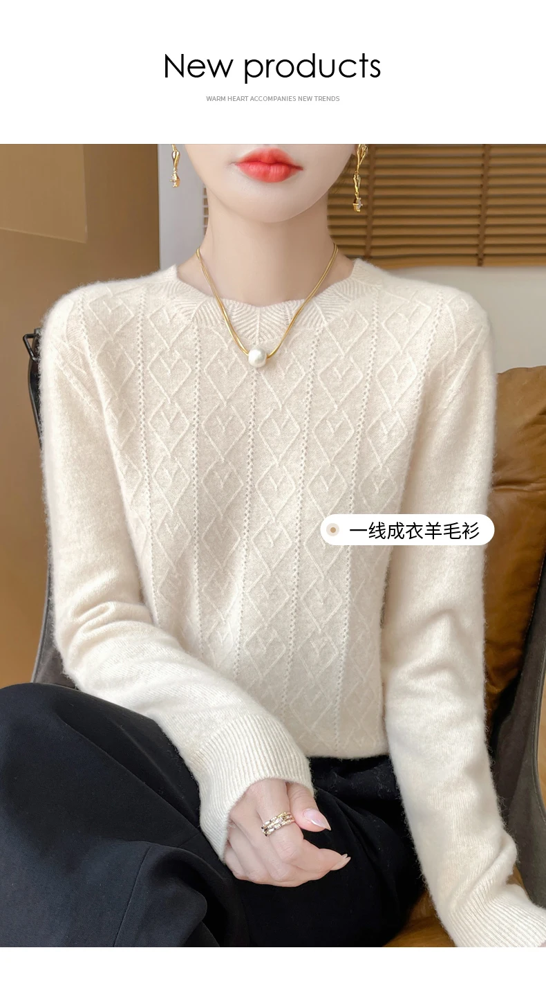 Prima linea pronta da indossare 100% lana merino autunno e inverno nuovo maglione da donna girocollo maglione pullover lavorato a maglia fondo cashmer