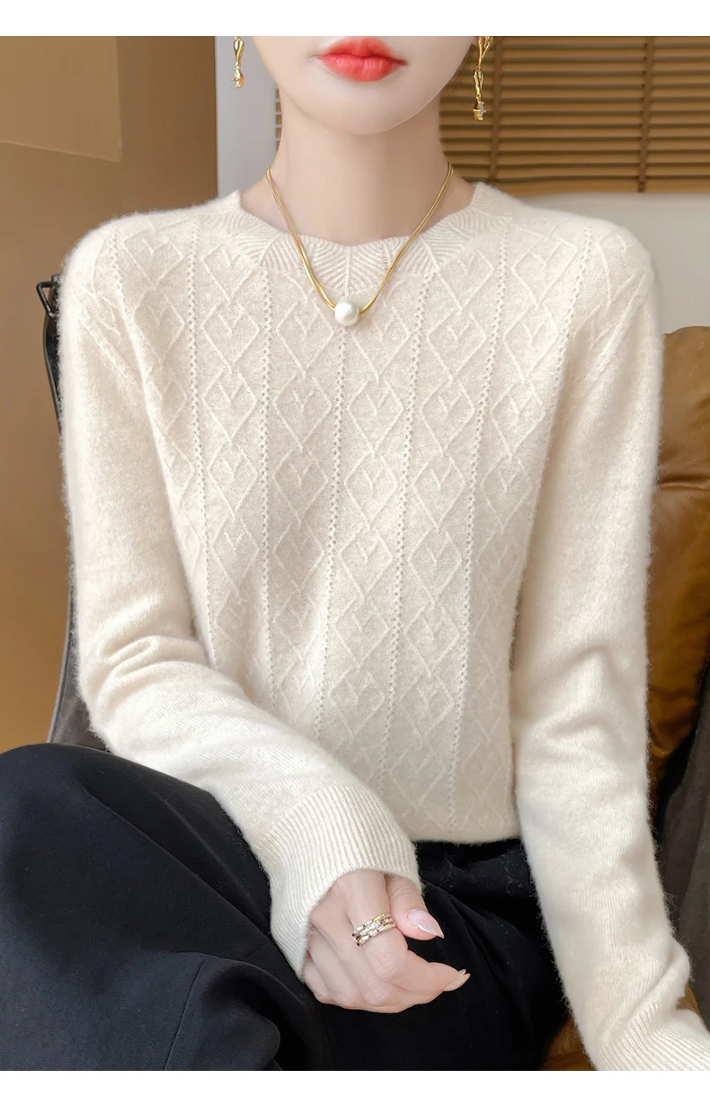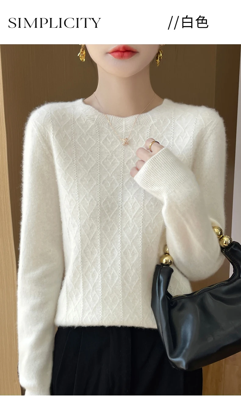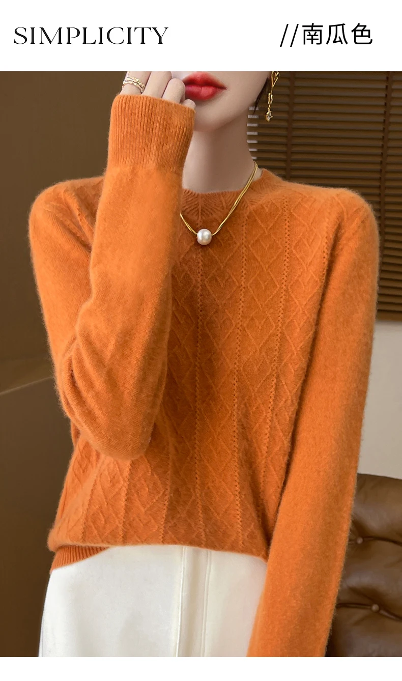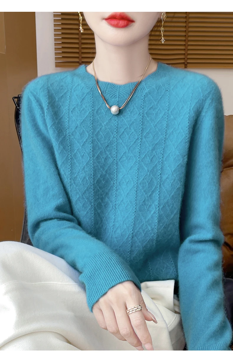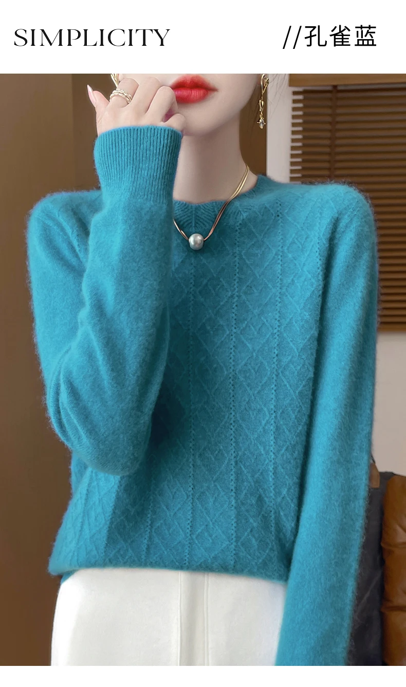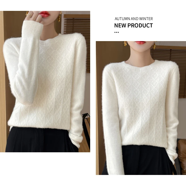 Prima linea pronta da indossare 100% lana merino autunno e inverno nuovo maglione da donna girocollo maglione pullover lavorato a maglia fondo cashmer