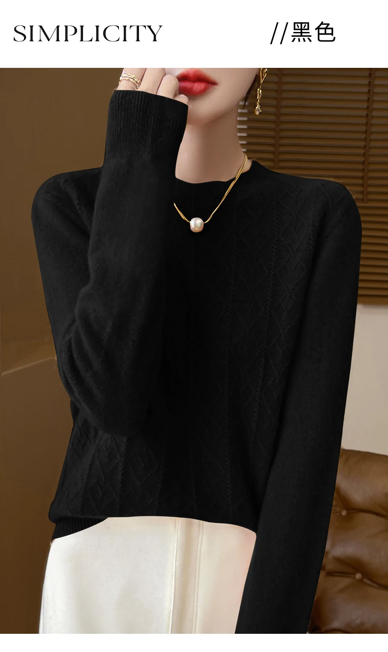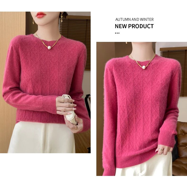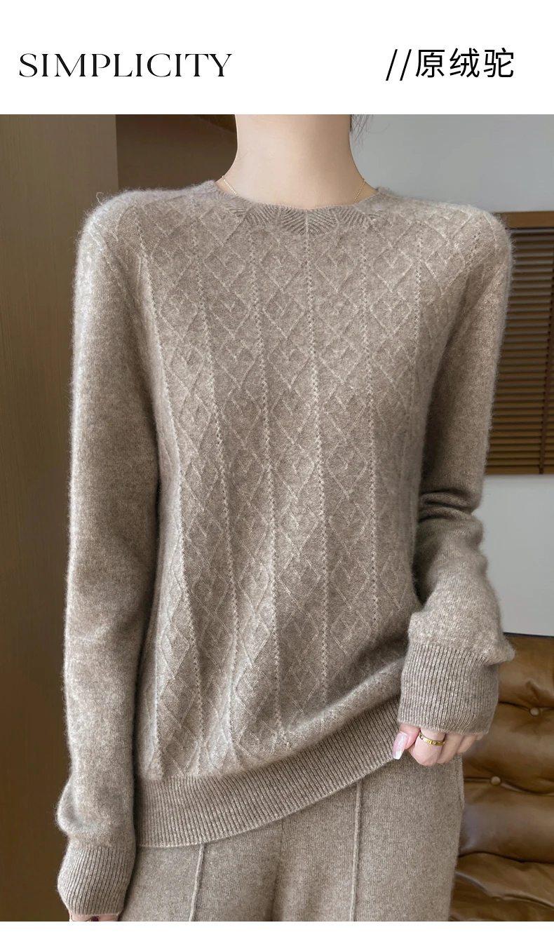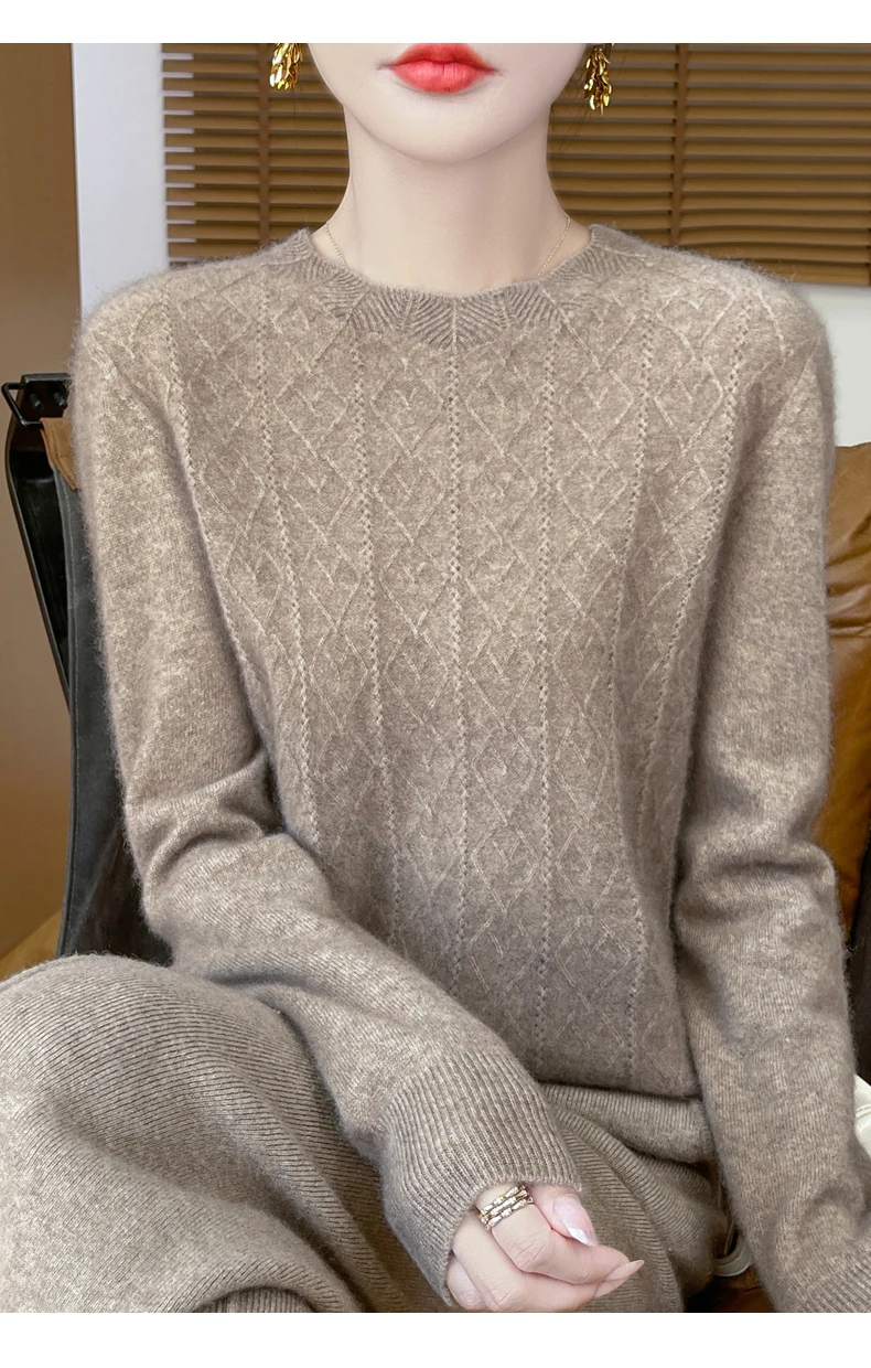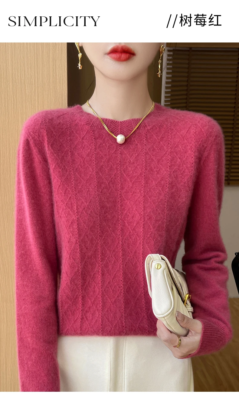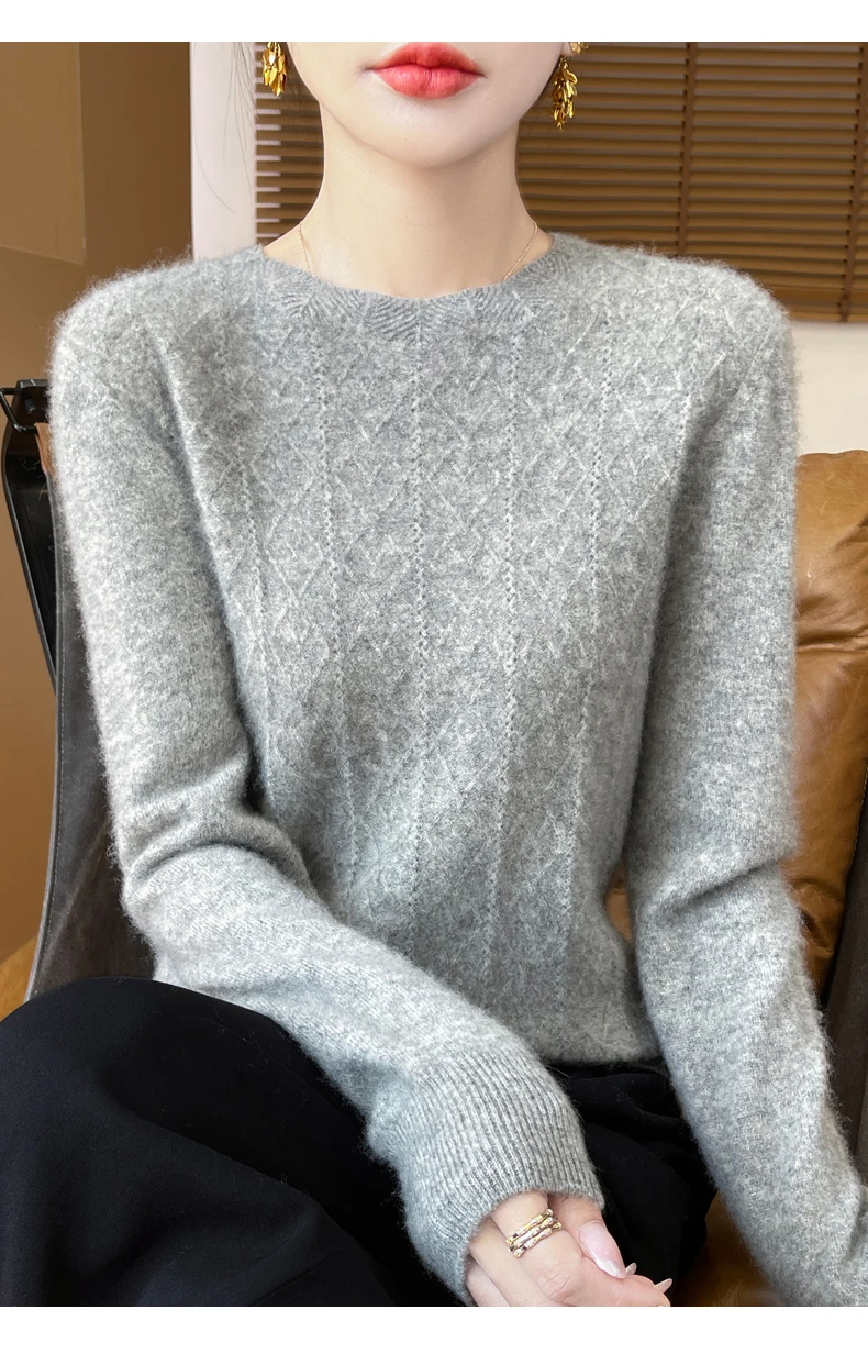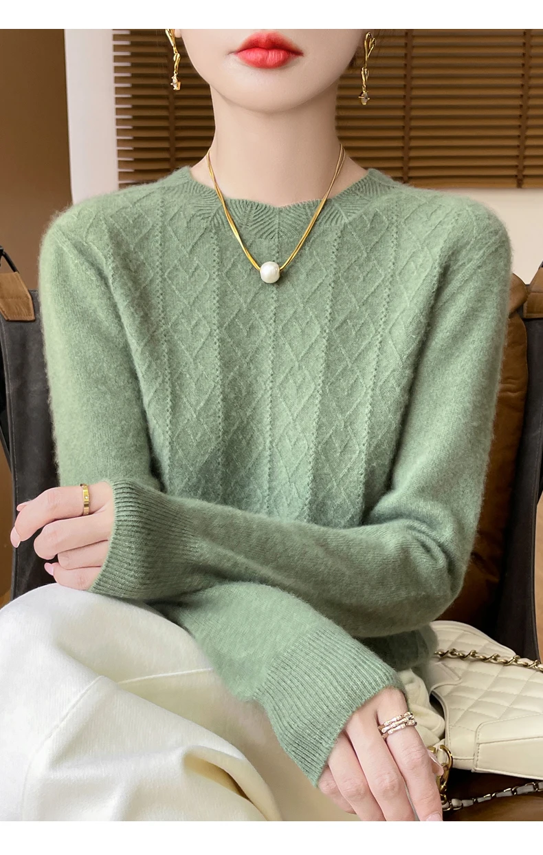 Prima linea pronta da indossare 100% lana merino autunno e inverno nuovo maglione da donna girocollo maglione pullover lavorato a maglia fondo cashmer