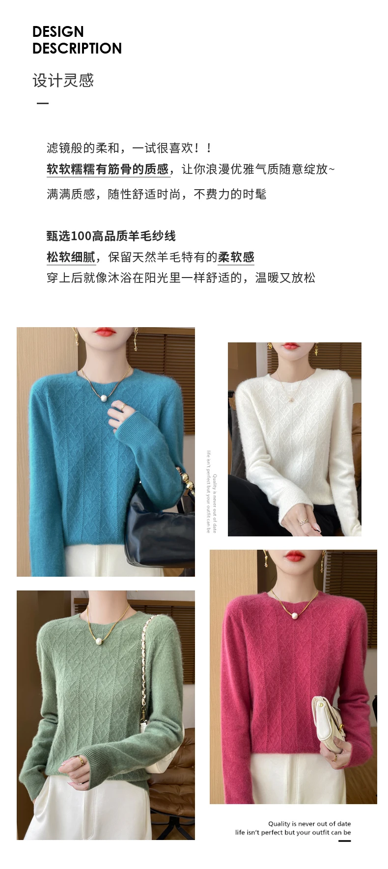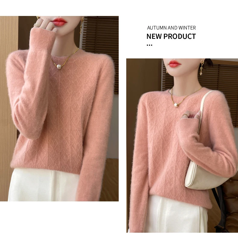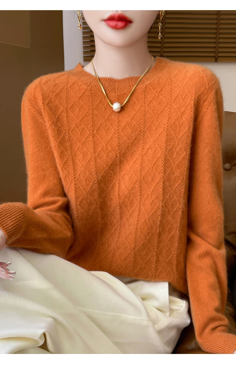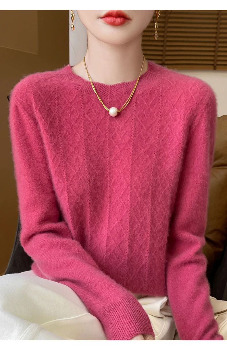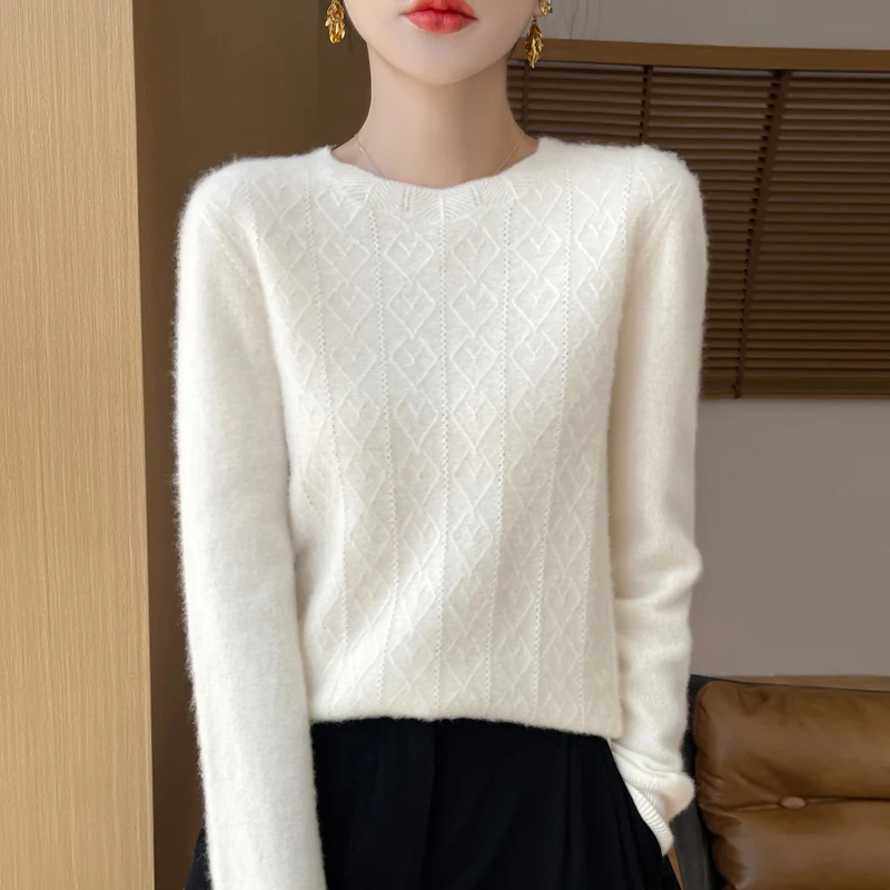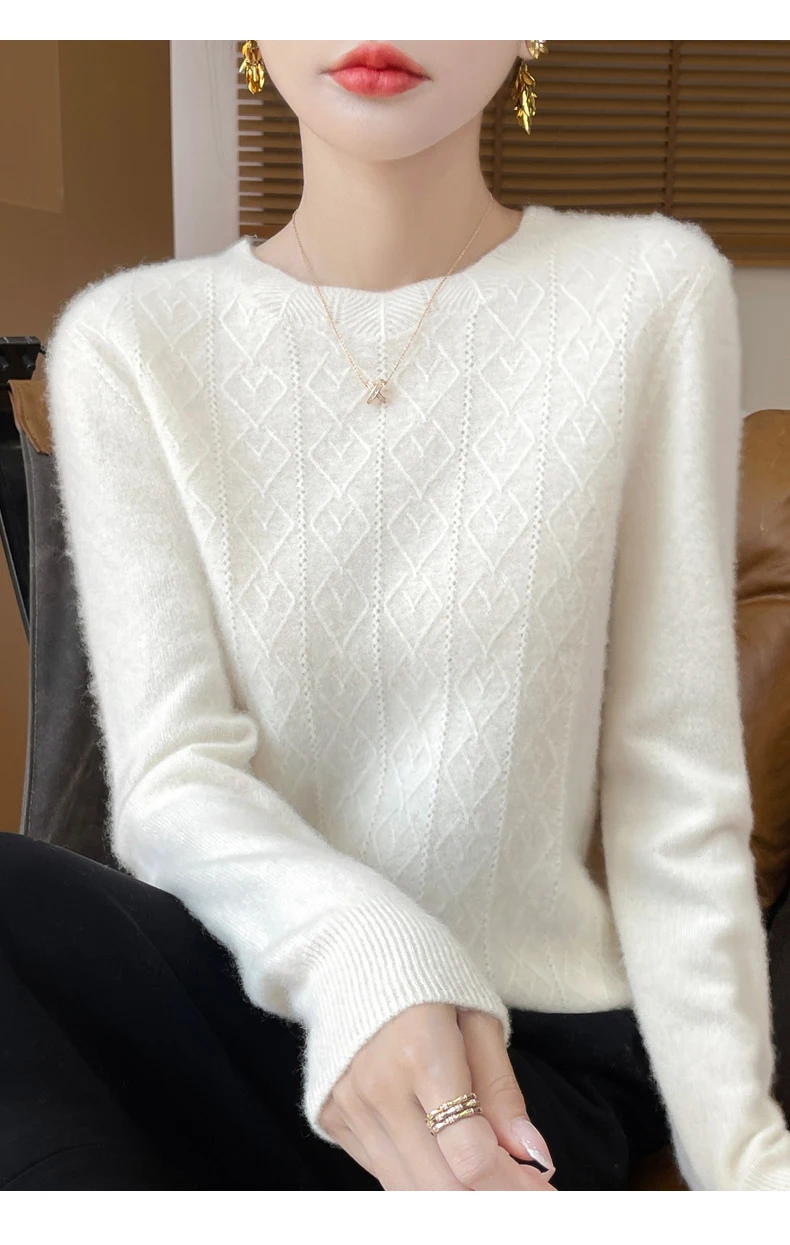 Prima linea pronta da indossare 100% lana merino autunno e inverno nuovo maglione da donna girocollo maglione pullover lavorato a maglia fondo cashmer