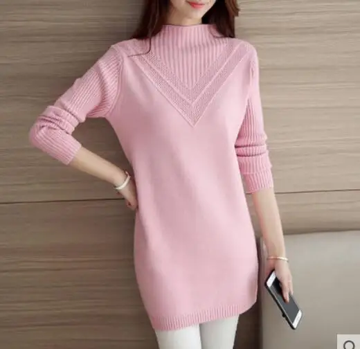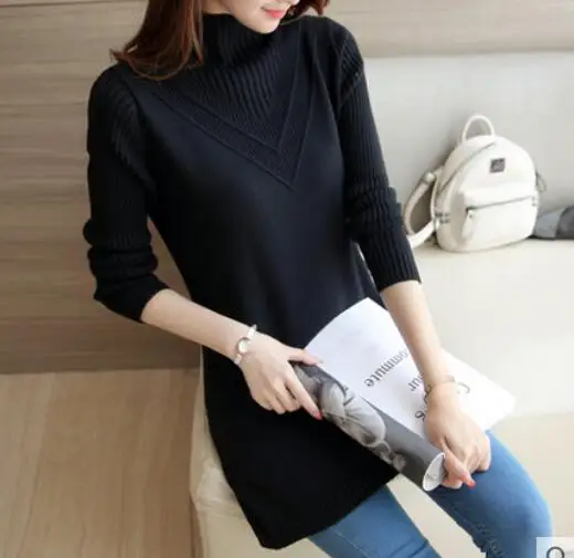 Primavera Autunno Inverno Nuovo maglione a collo alto Maglione da donna Medio lungo in maglia spessa Top Pullover che tocca il fondo Maglioni Pulls Femmes