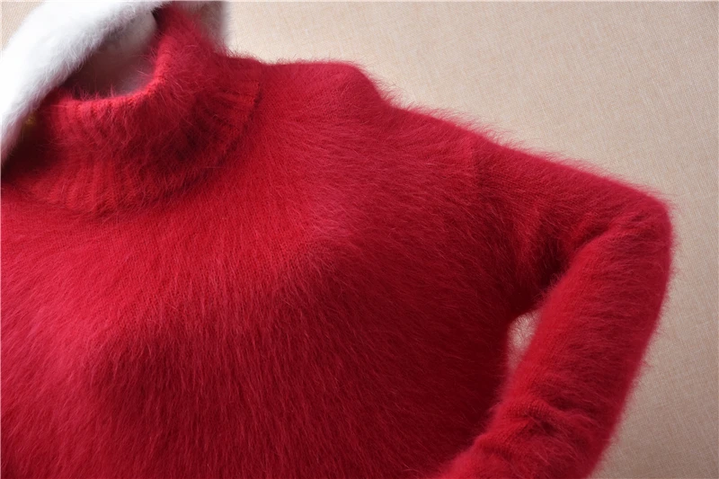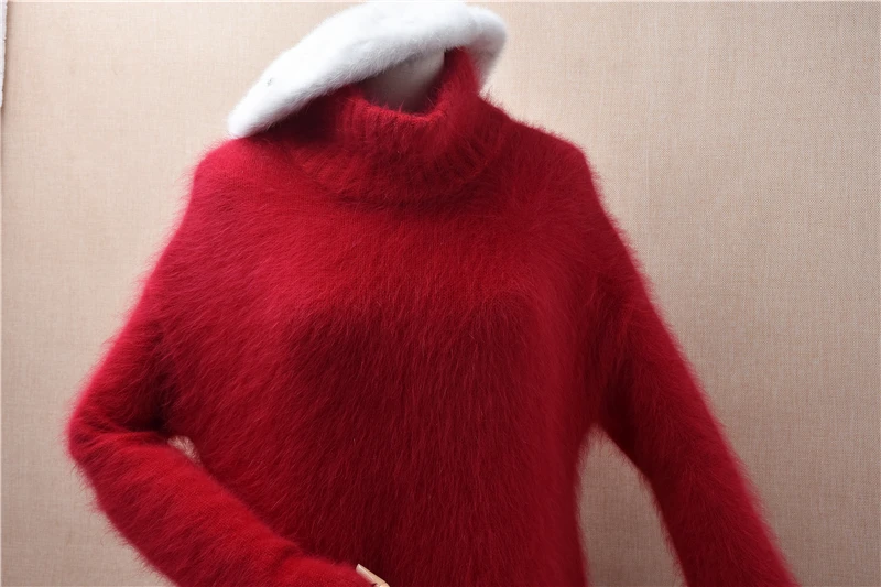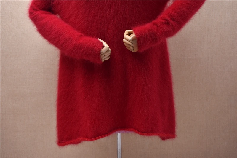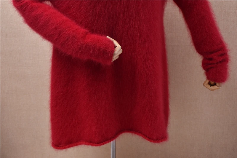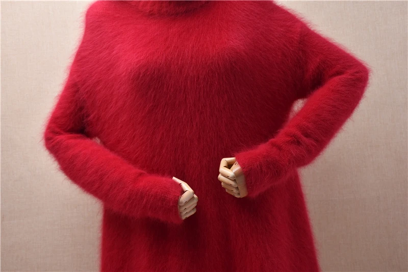 Pull Femmes Donna Rosso Autunno Inverno Vestiti Visone peloso Cashmere Dolcevita lavorato a maglia Maniche lunghe Abito maglione maglione medio lungo