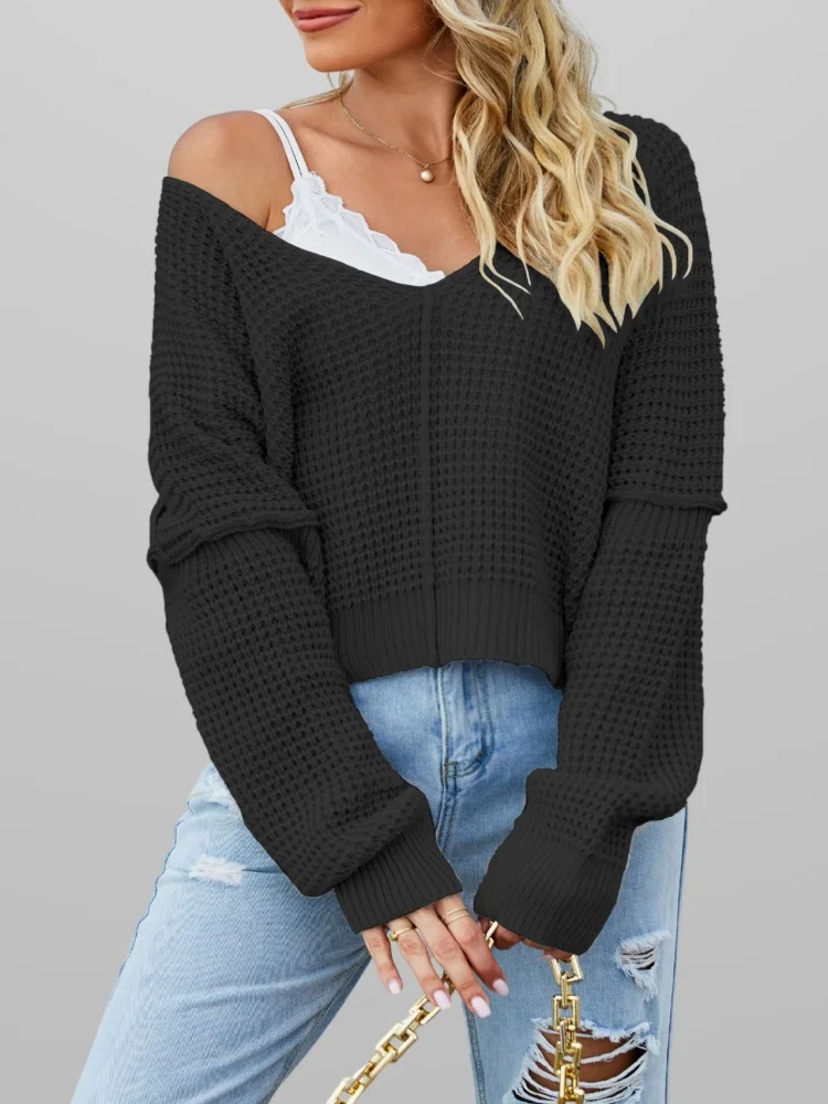 Pullover ampio Maglioni casual con scollo a V profondo Top lavorato a maglia femminile Novità in capispalla Stampa Abiti autunnali e invernali