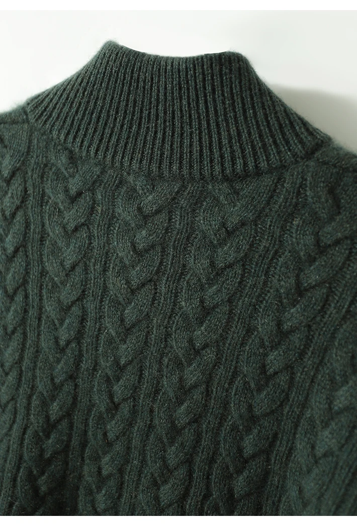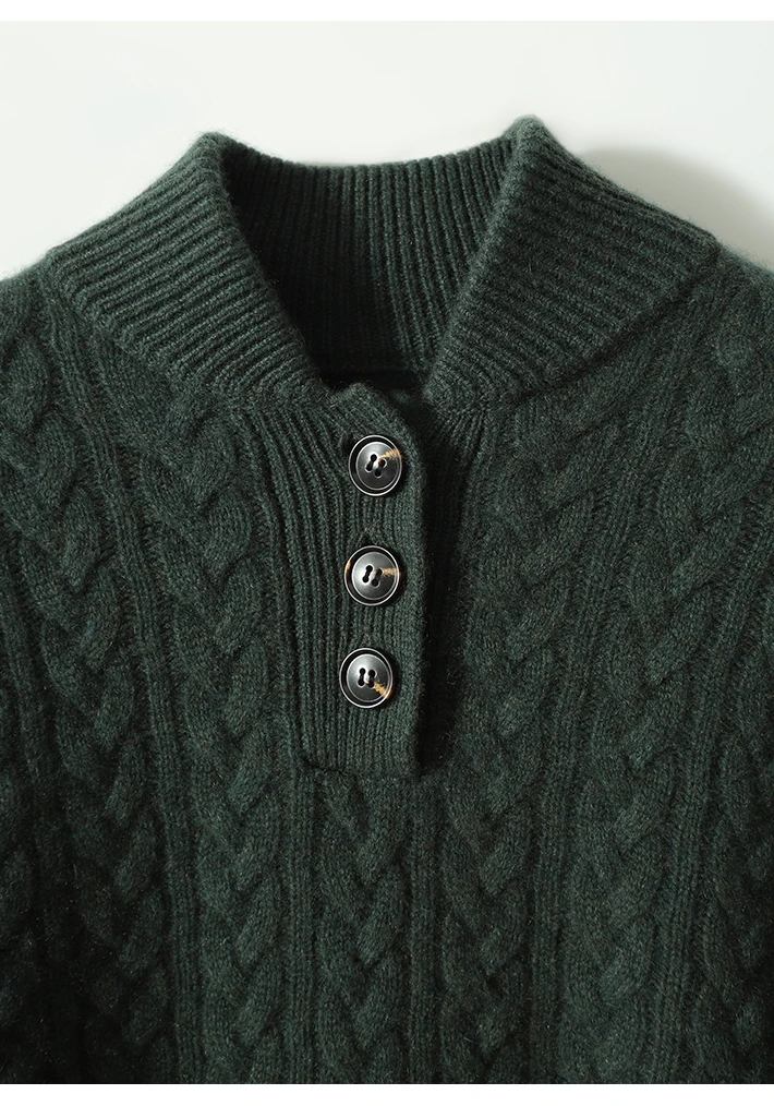 Pullover lavorato a maglia Top maglione, colletto rialzato, risvolto semiaperto, trama intrecciata, puro Cashmere, Baseball, elegante