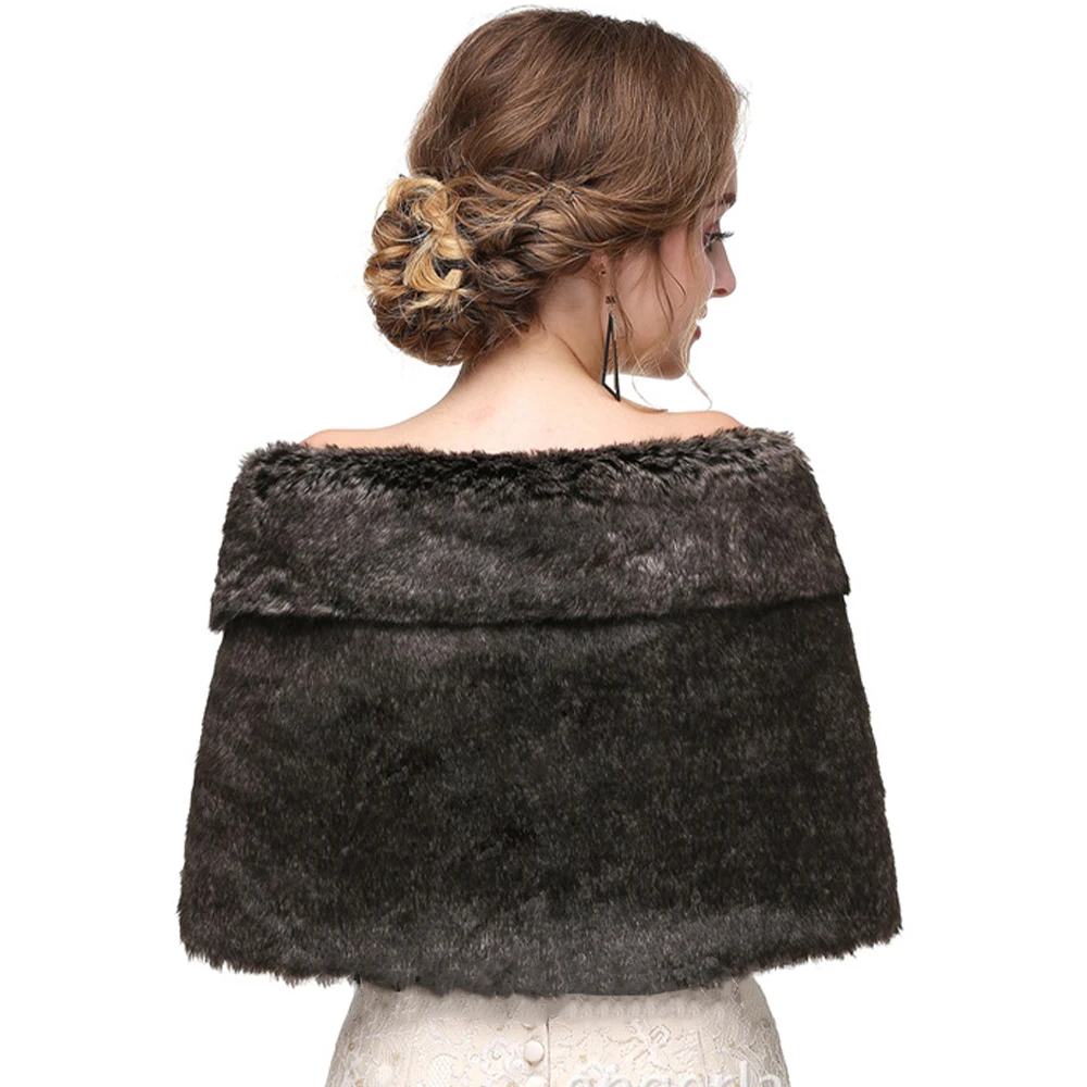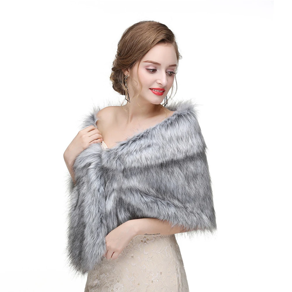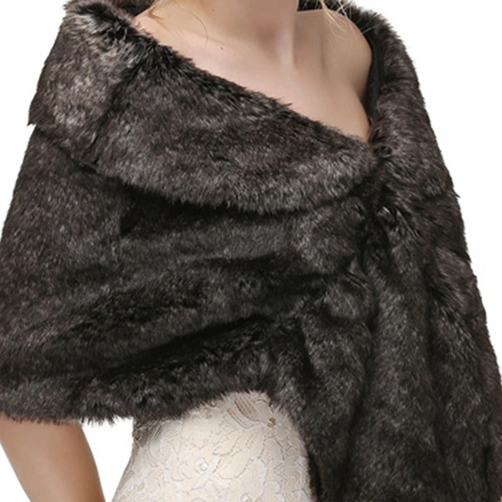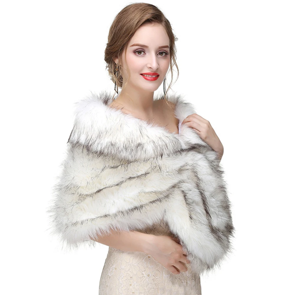 Scialle da donna caldo invernale in pelliccia sintetica addensato termico da sposa da sposa elegante mantello da esterno festa da donna avvolgente quotidiano grigio avorio