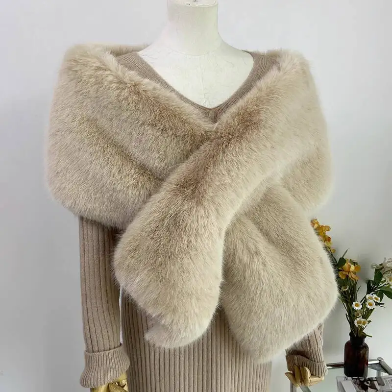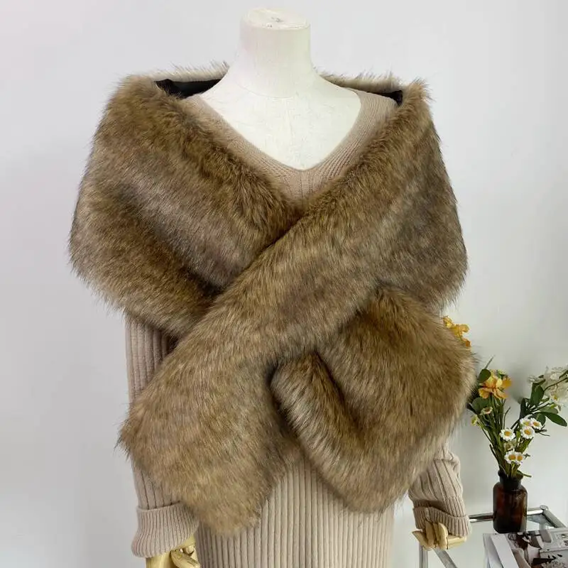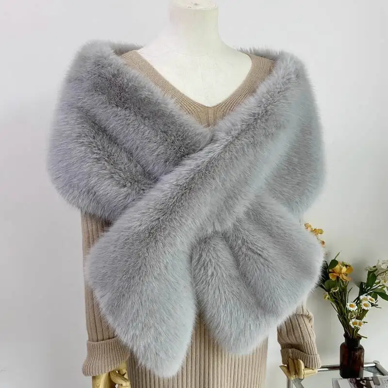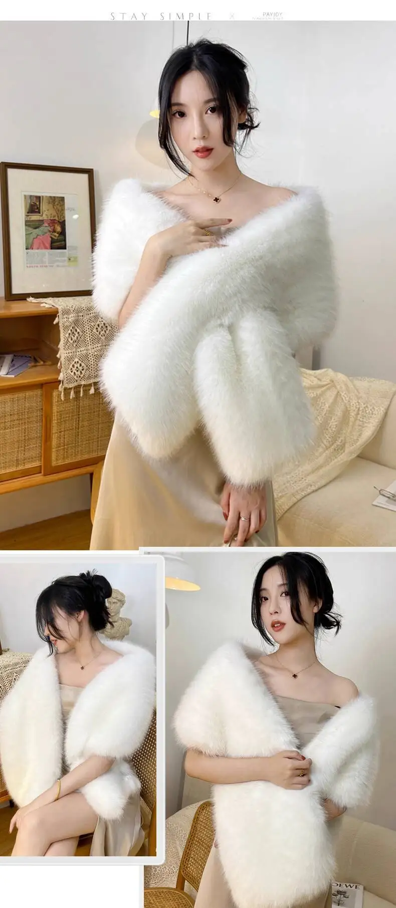 Scialle da sposa in pelliccia sintetica donna festa sposa mantello mantello autunno inverno banchetto abito da palcoscenico sciarpa da sposa avvolgere Bolero accessorio Stock