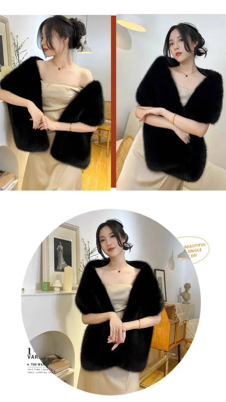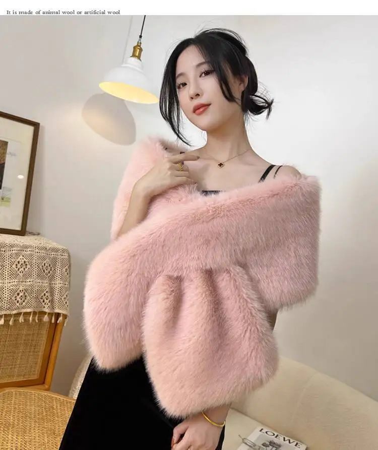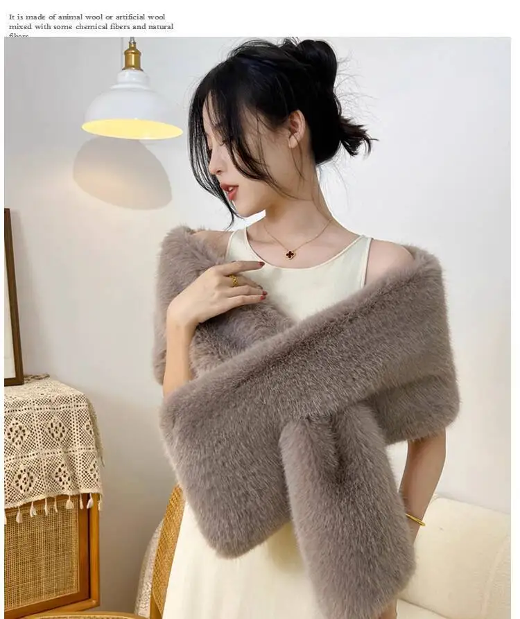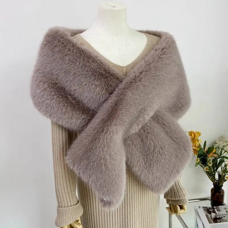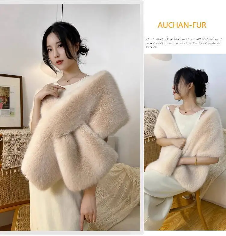 Scialle da sposa in pelliccia sintetica donna festa sposa mantello mantello autunno inverno banchetto abito da palcoscenico sciarpa da sposa avvolgere Bolero accessorio Stock