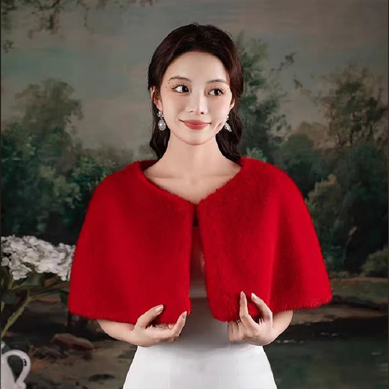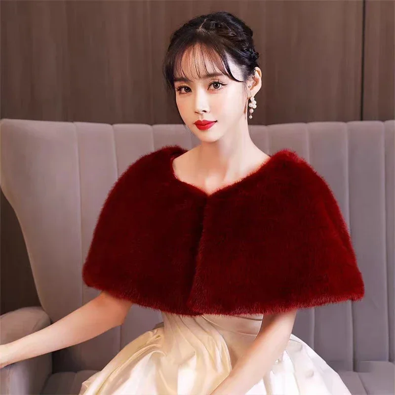 Scialle di pelliccia da 110 cm Avvolgente da sposa per abito formale Cheongsam Capispalla da sposa Mantello da sposa Autunno Inverno Giacca Bolero