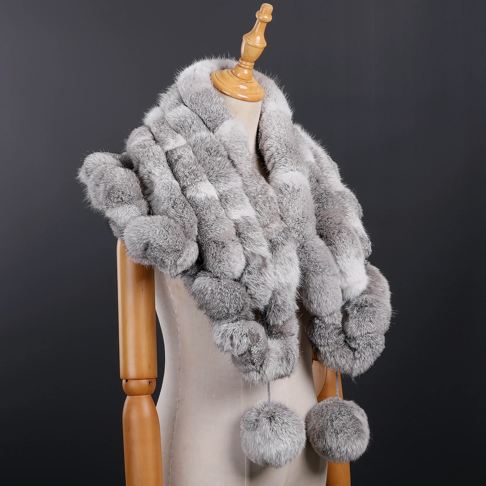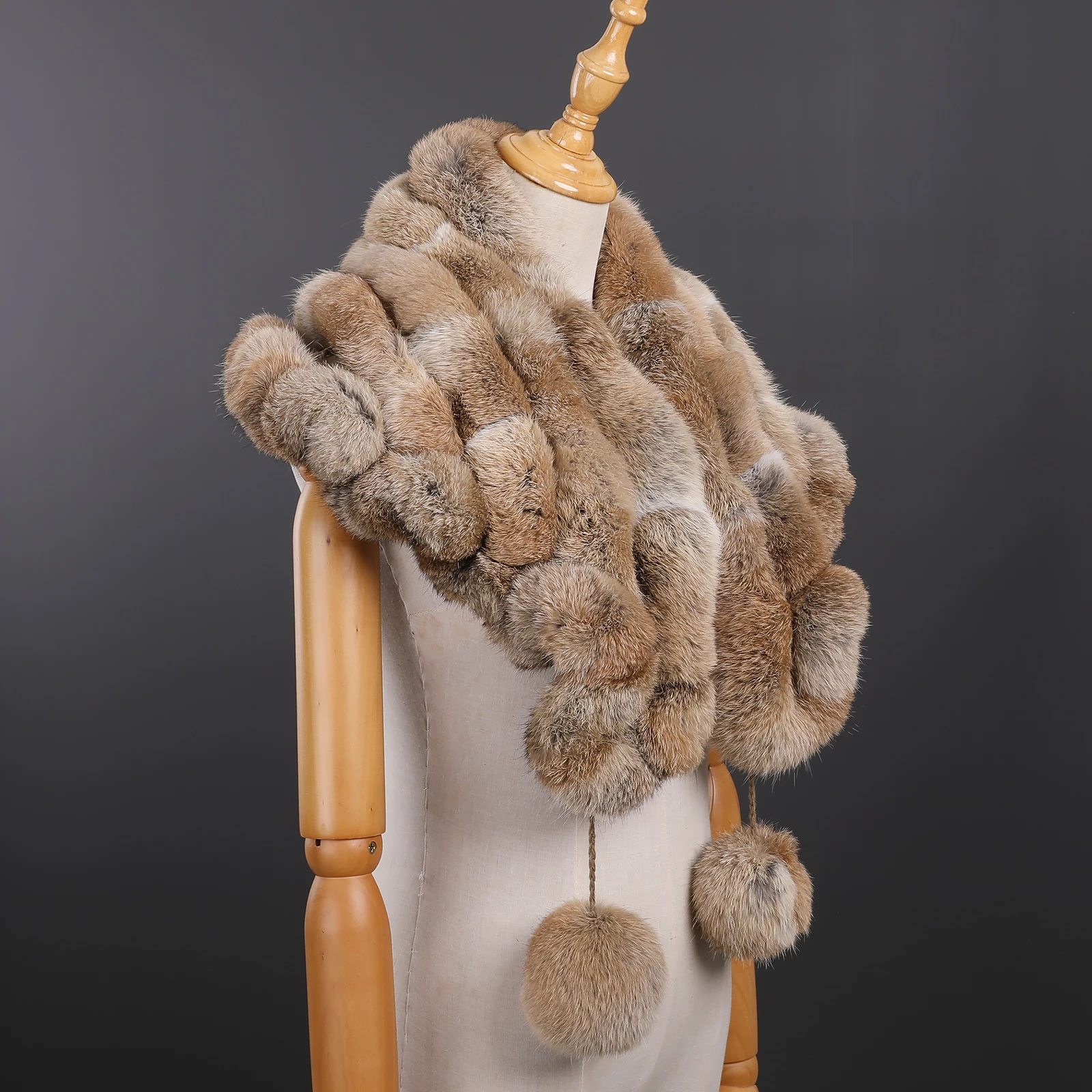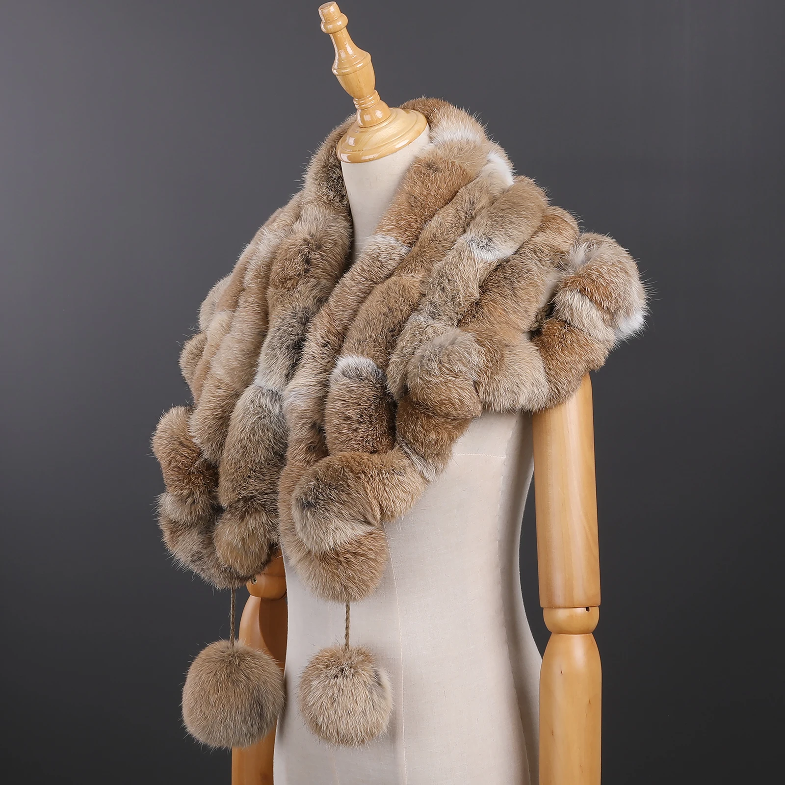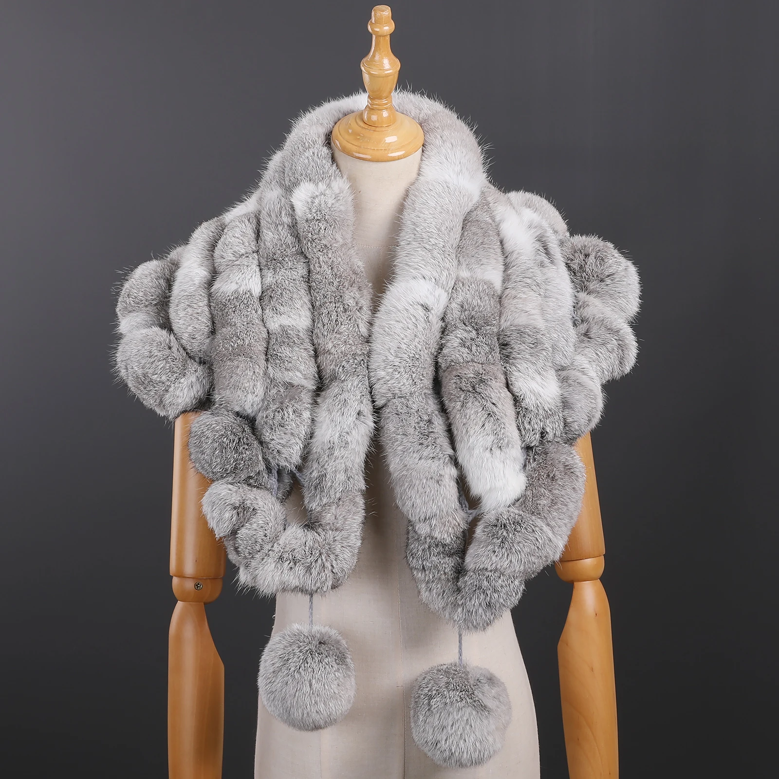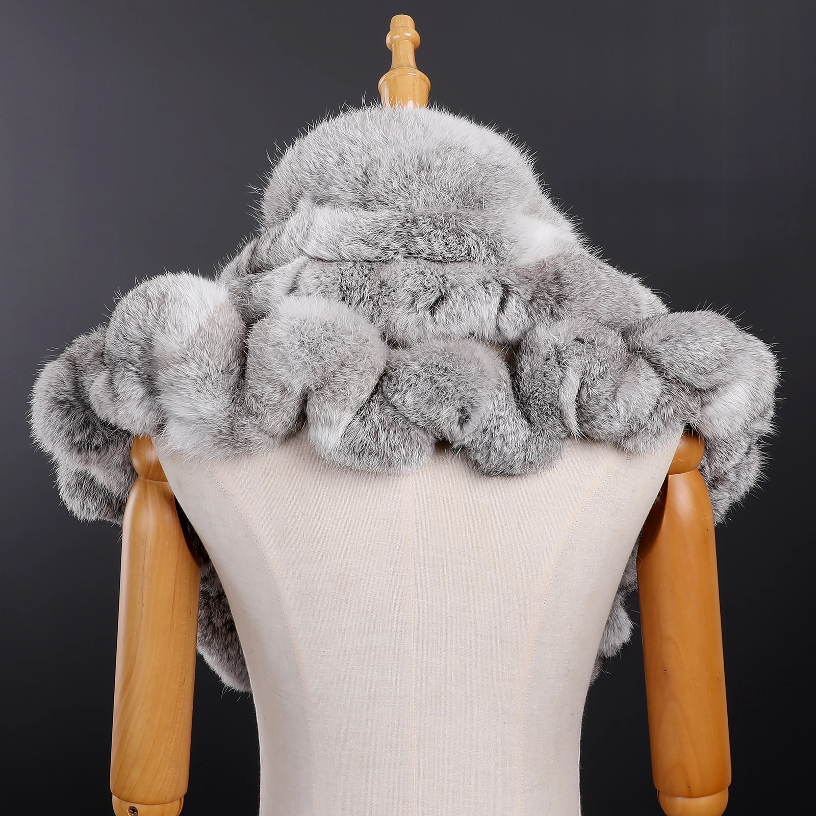 Scialle di pelliccia di coniglio genuina di lusso per donna-signora mantello di pelliccia vera con volant avvolge scialli caldi invernali