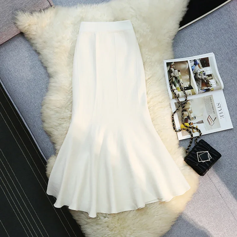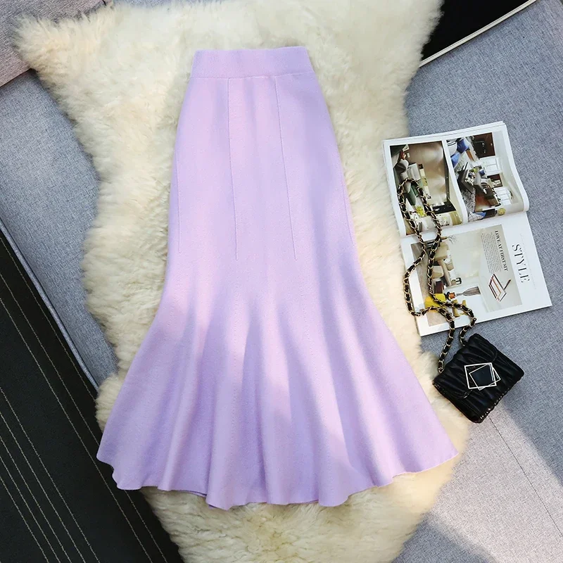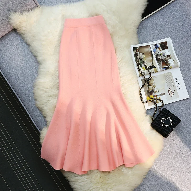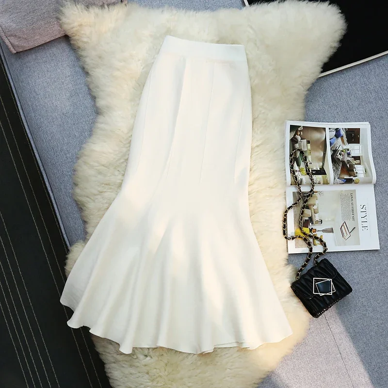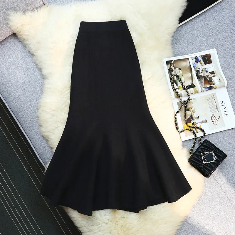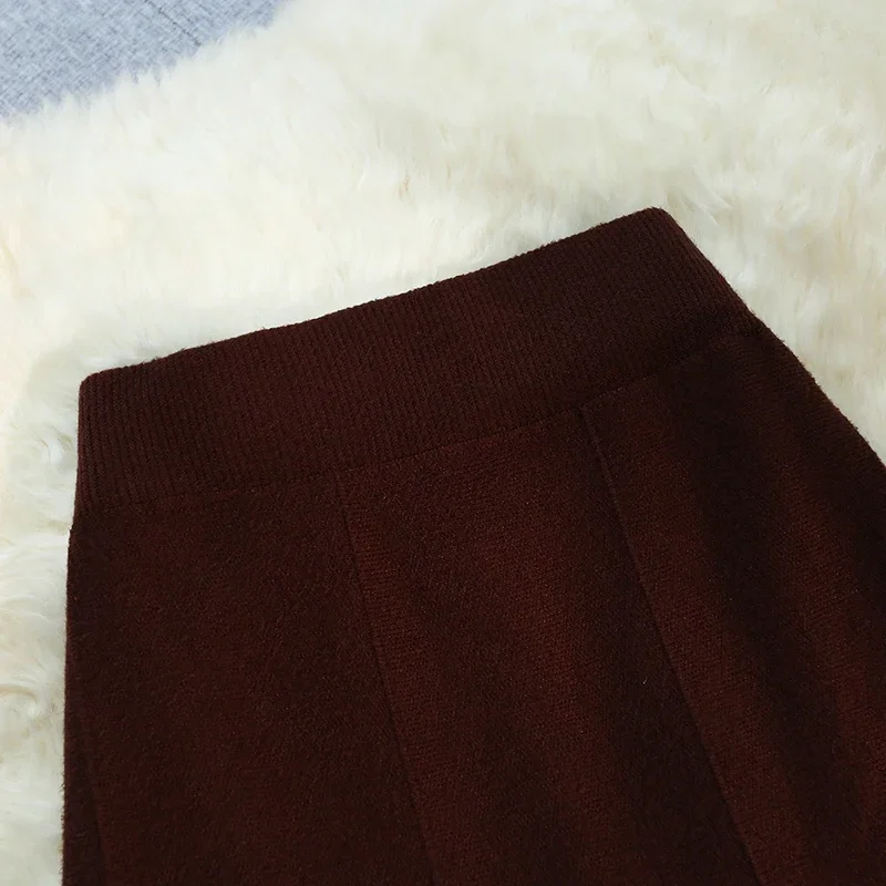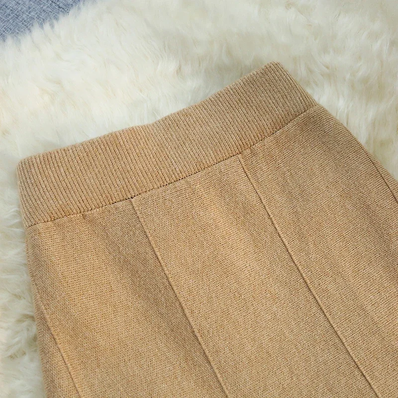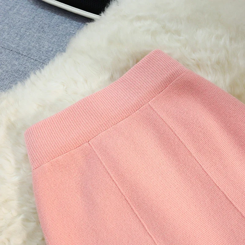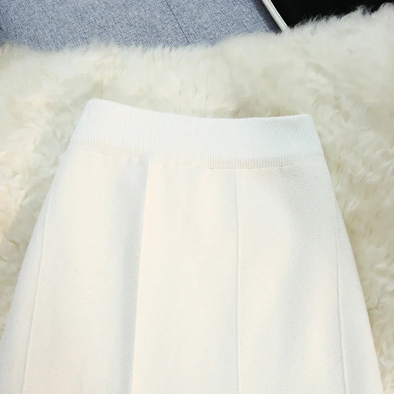 Seoulish 2024 nuovo autunno inverno a vita alta gonne a maglia da donna alla moda tinta unita coreano ufficio signora gonne Casual