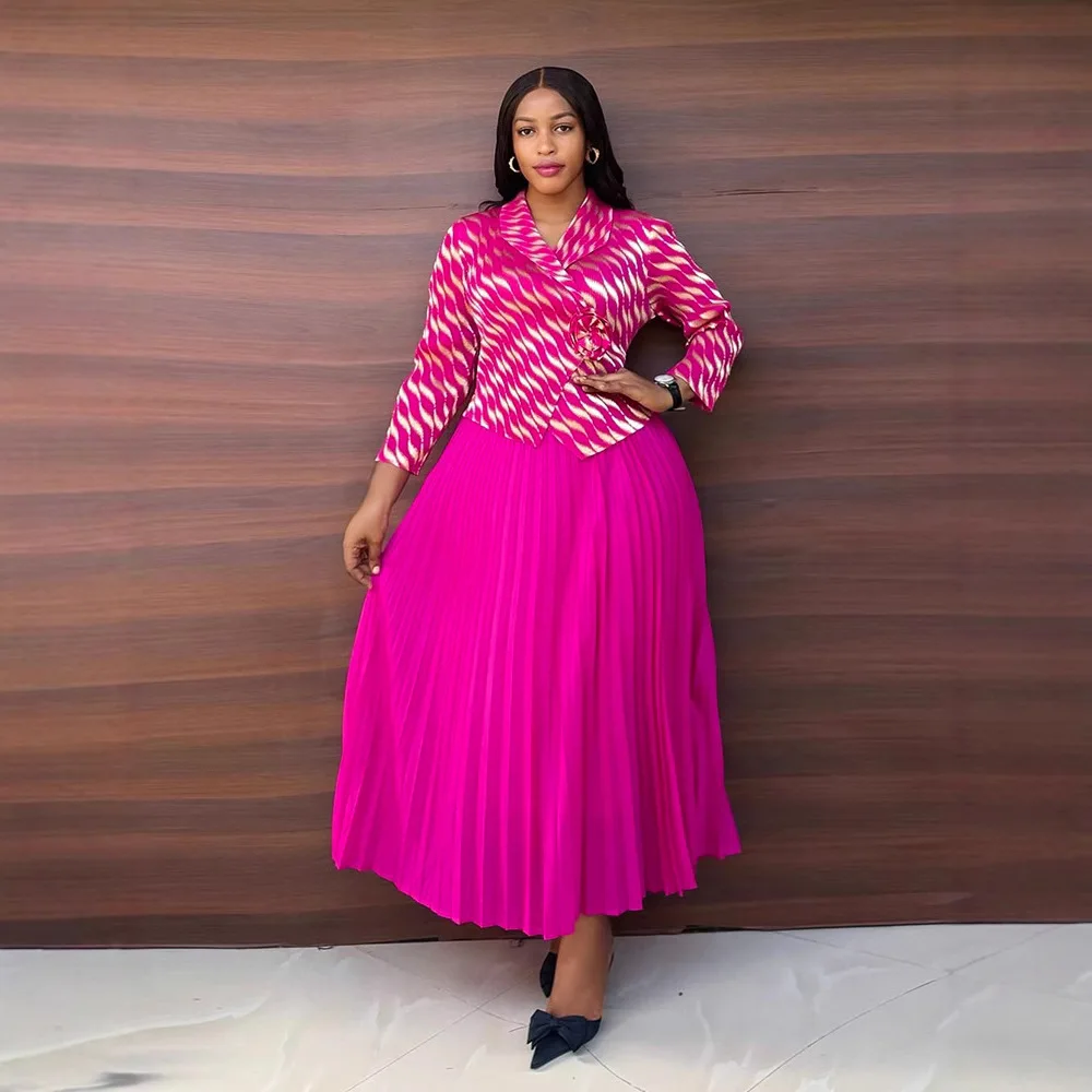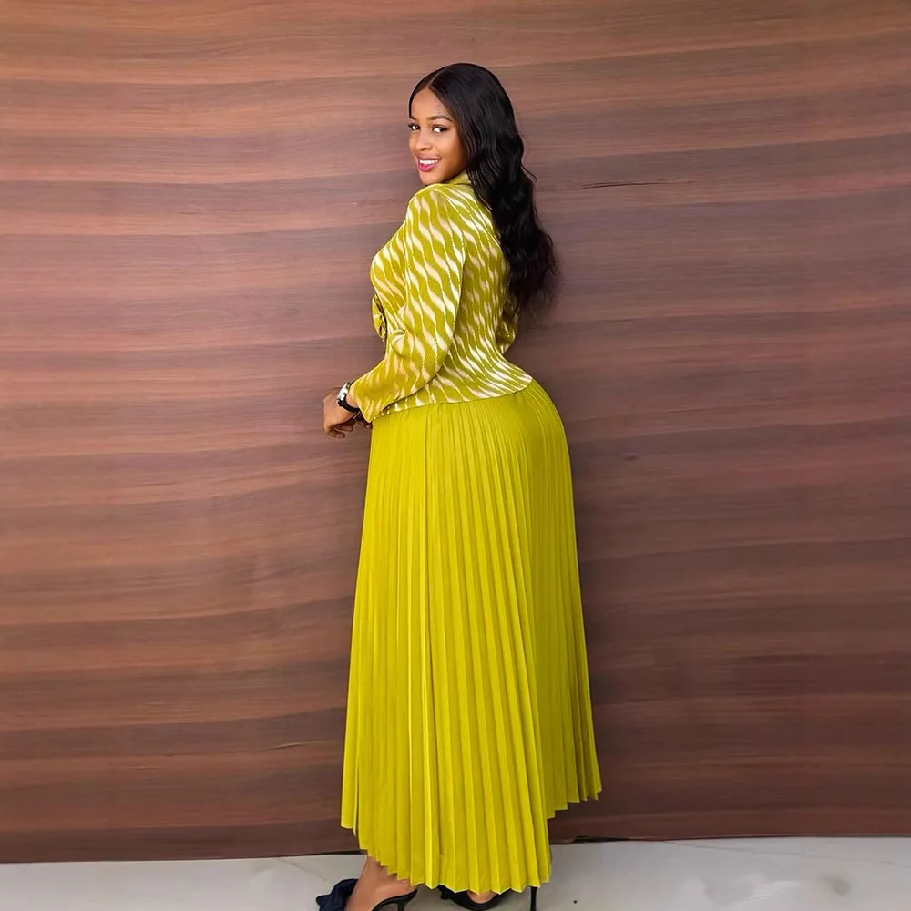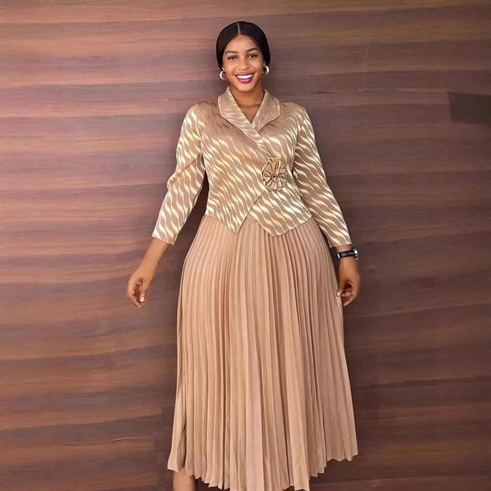 Set gonna a pieghe Miyake per donna 2025 Nuovo set di due pezzi con risvolto placcato oro Gonna con pieghe larghe di grandi dimensioni alla moda