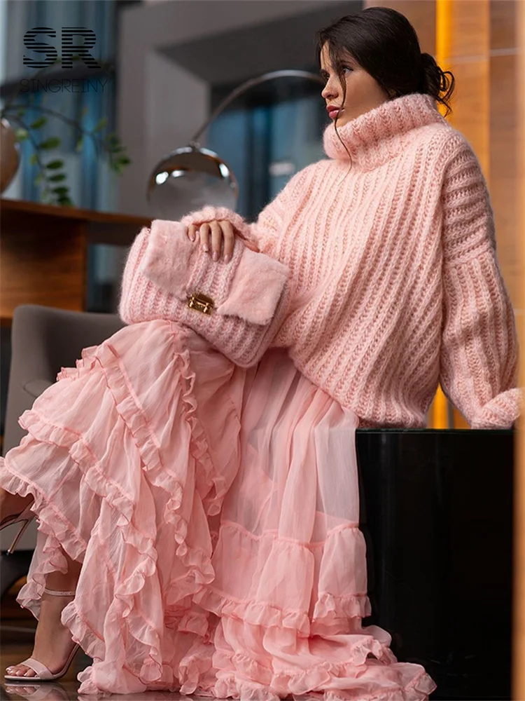Singliny dolcevita Pullover lavorato a maglia donna capispalla invernale sciolto solido elegante manica lunga moda donna Casual maglione caldo top