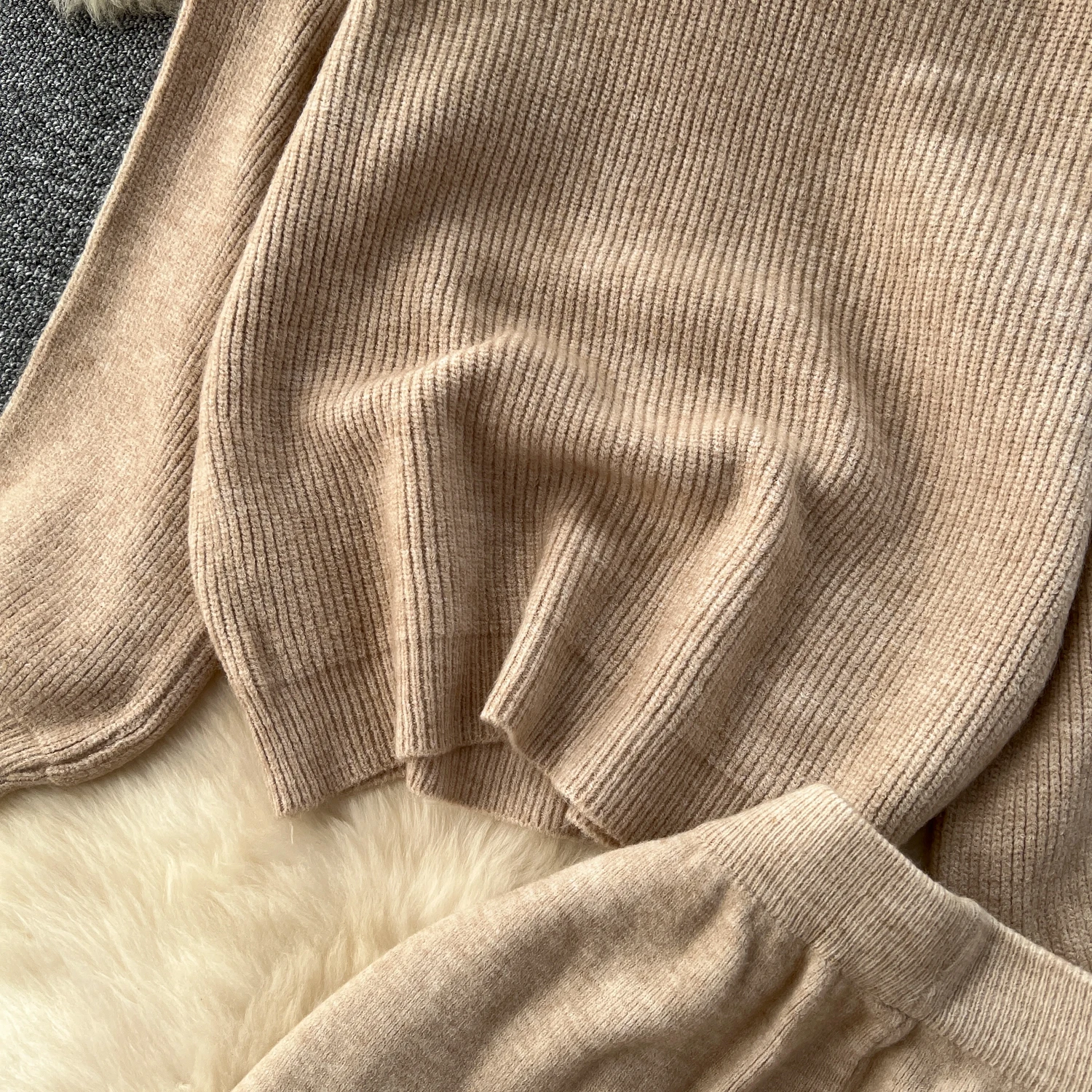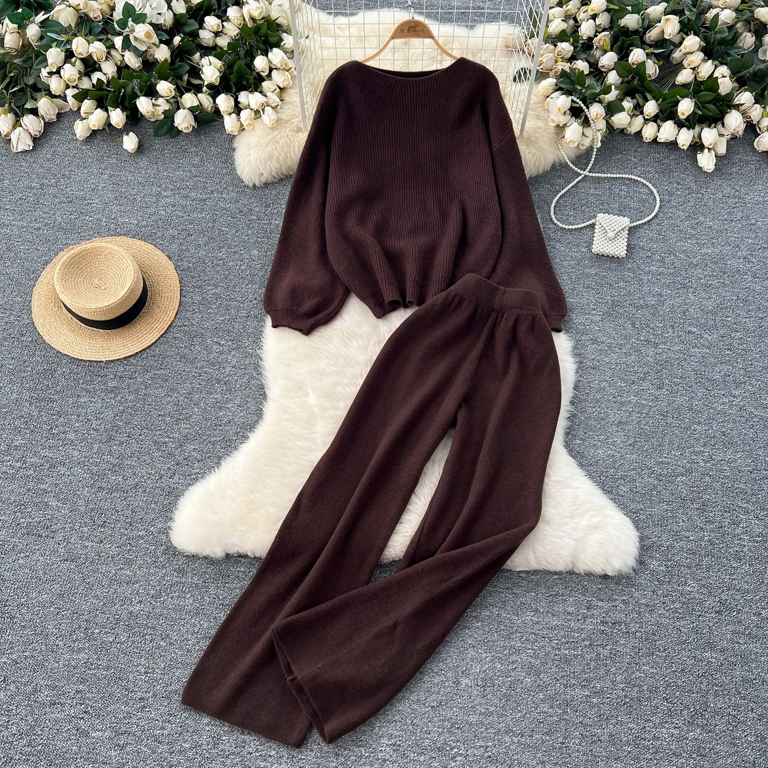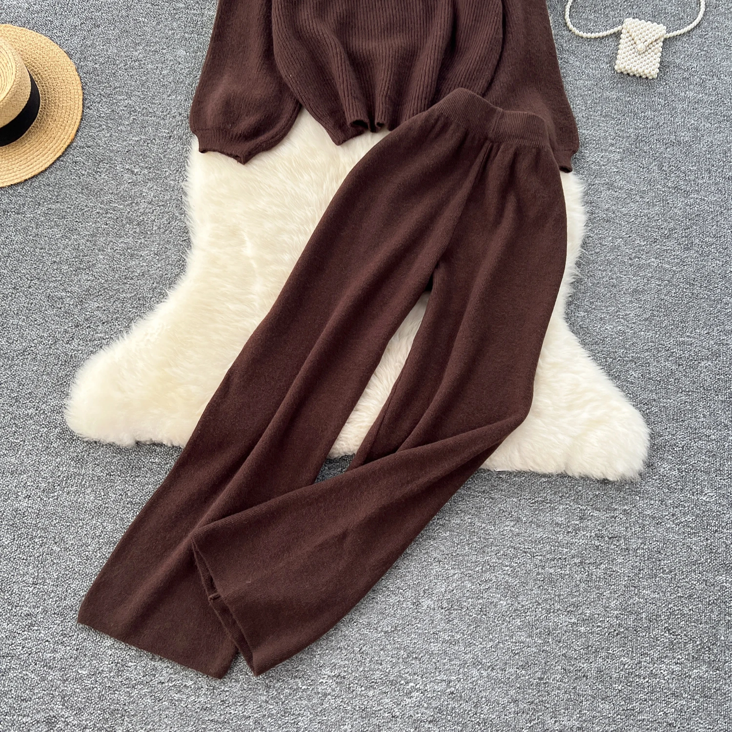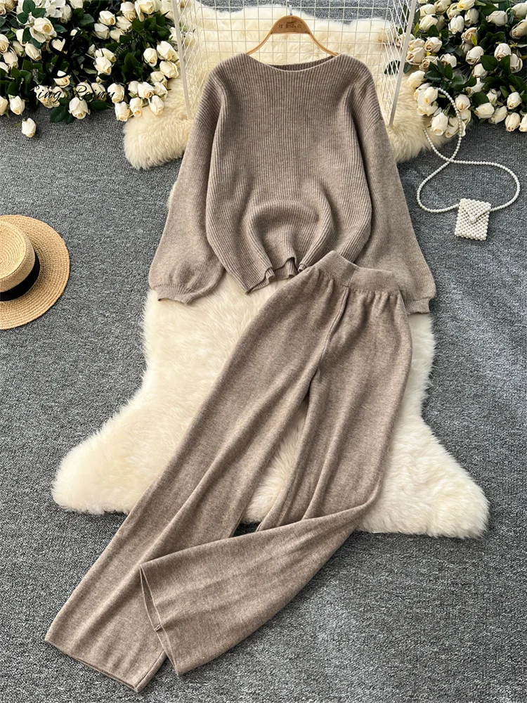 1 recensione per SINGREINY 2025 Inverno Spessore Abiti da donna Maglione allentato Top + Vita alta Gambe larghe Pantaloni lunghi Autunno Solido Causale Caldo Set da 2 pezzi