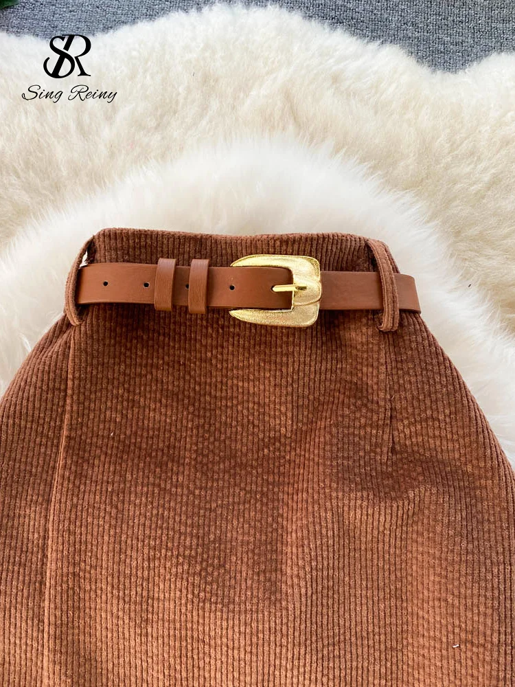 SINGREINY Donne Coreano Split Gonna Lunga Sexy 2024 Velluto A Coste di Inverno Sottile di Spessore Streetwear Moda Vintage Autunno Gonna Aderente