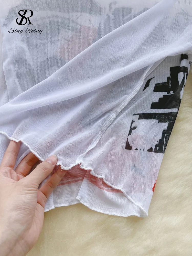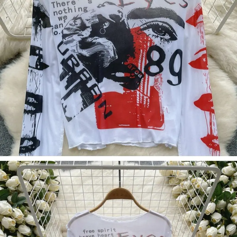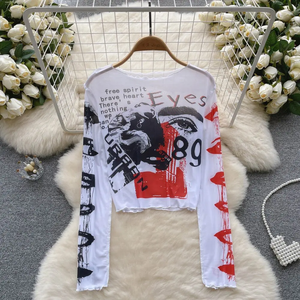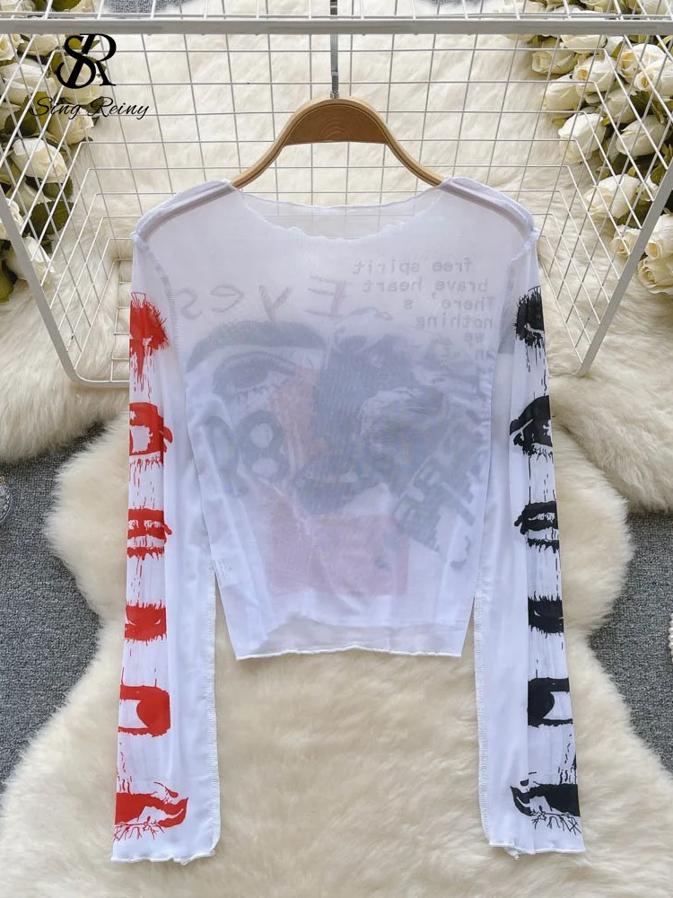 SINGREINY Ins Moda Streetwear Magliette e camicette Lettera Pittura Stampa Americana Retro T-Shirt Delle Donne 2024 Autunno Nuovo Sottile Causale Nozioni di Base Magliette e camicette
