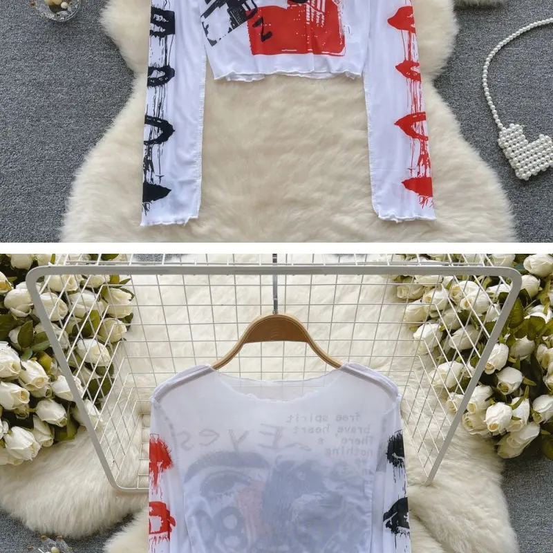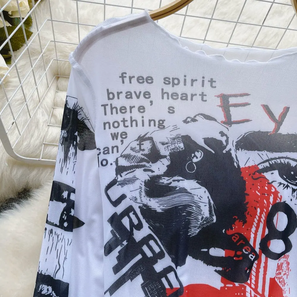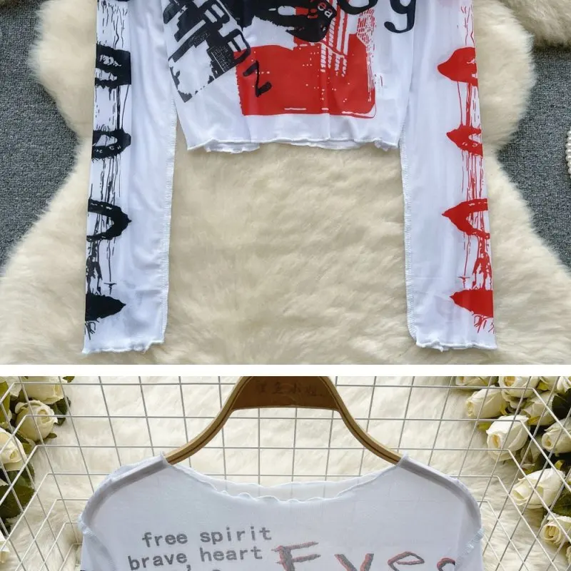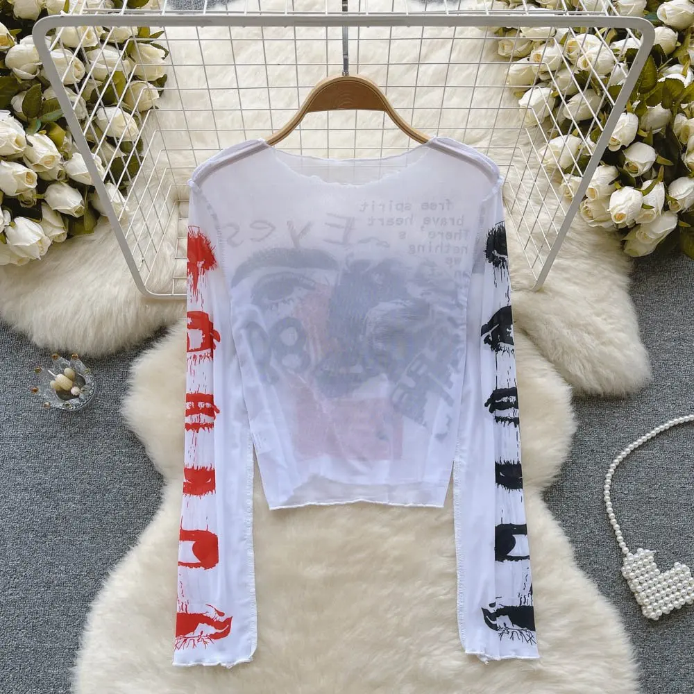 SINGREINY Ins Moda Streetwear Magliette e camicette Lettera Pittura Stampa Americana Retro T-Shirt Delle Donne 2024 Autunno Nuovo Sottile Causale Nozioni di Base Magliette e camicette