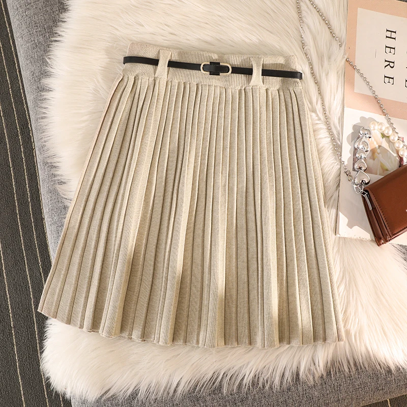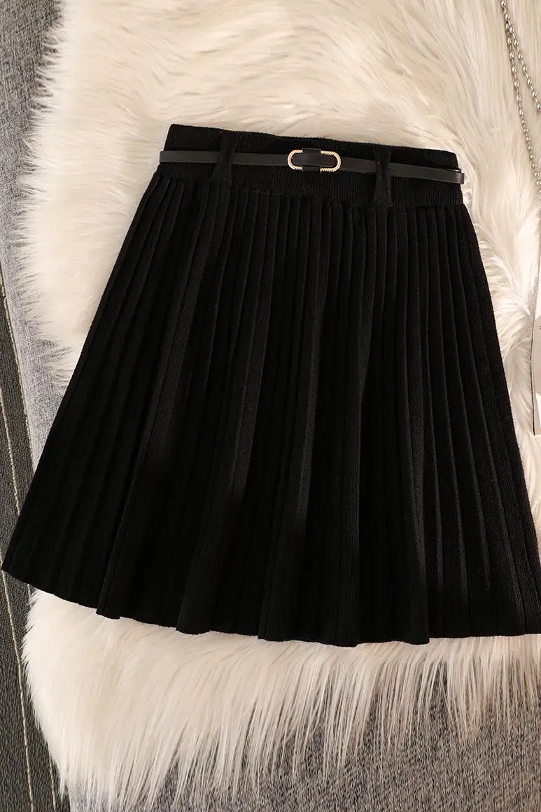 Recensisci per primo “Solid Elegant Holiday minigonna lavorata A maglia donna 2023 autunno inverno spessa calda una linea A vita alta gonne corte pieghettate donna Casual”