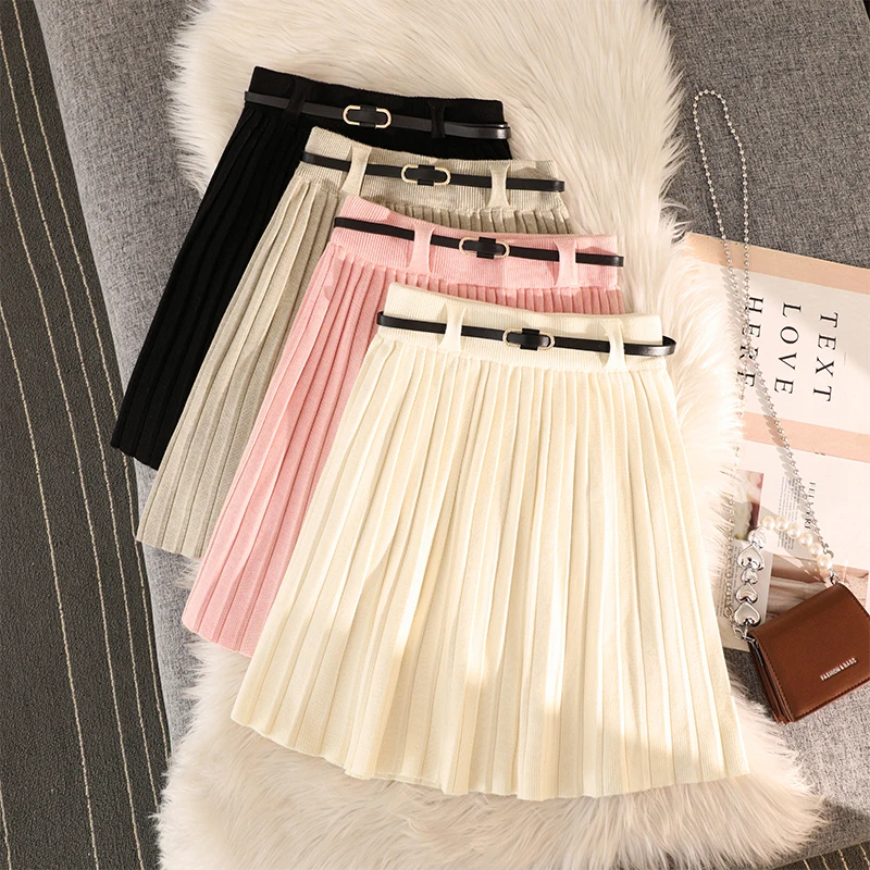 Solid Elegant Holiday minigonna lavorata A maglia donna 2023 autunno inverno spessa calda una linea A vita alta gonne corte pieghettate donna Casual