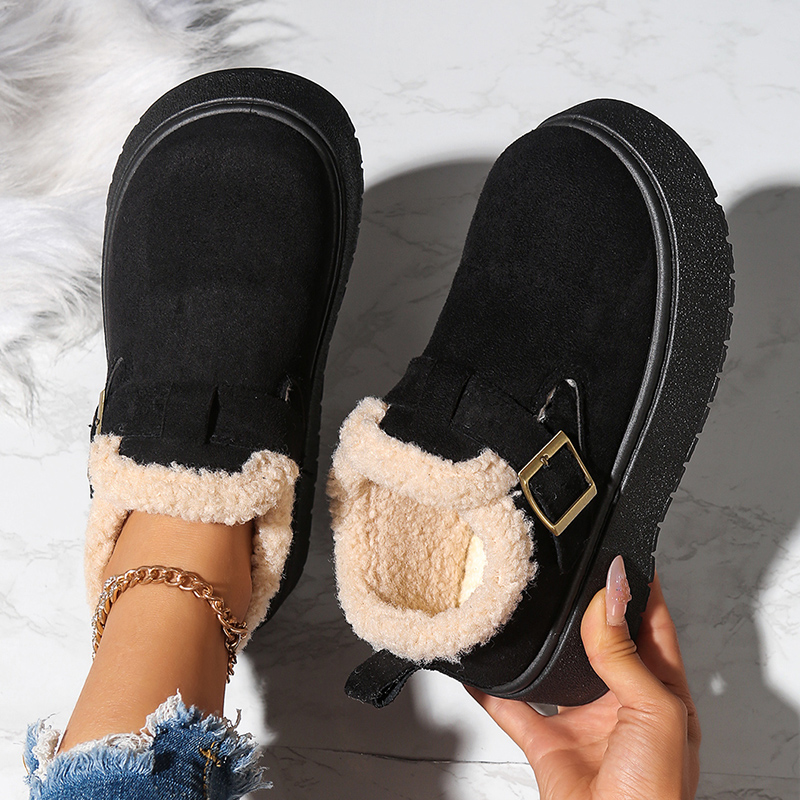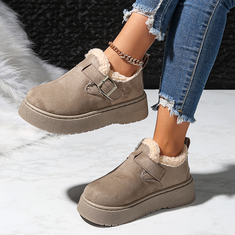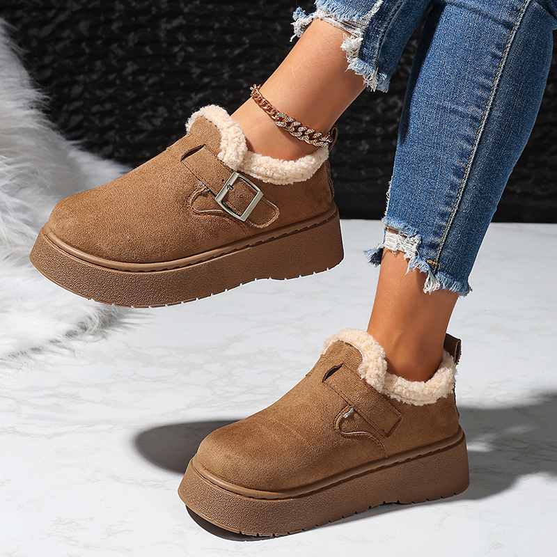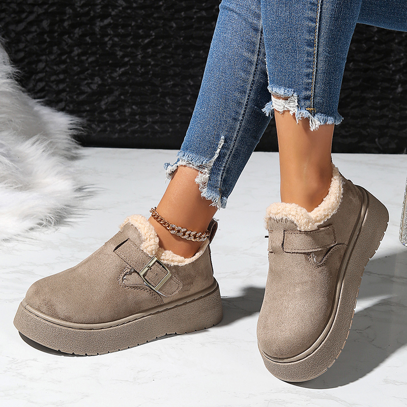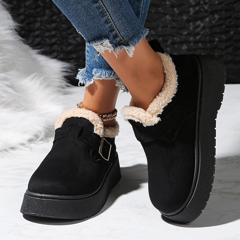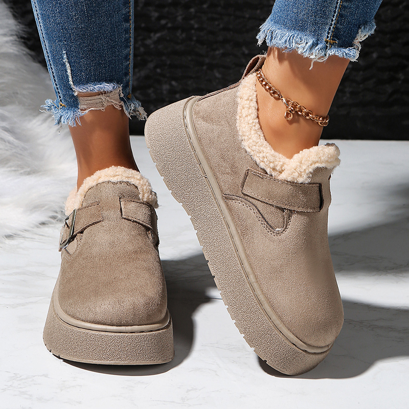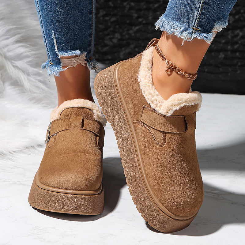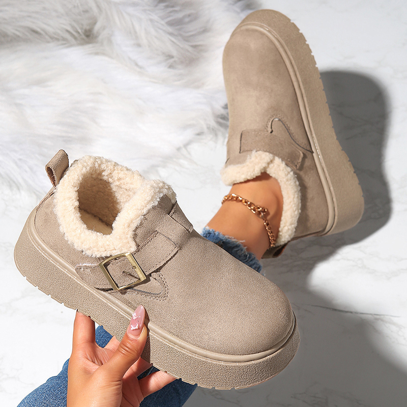 Stivali da neve in peluche con suola spessa autunno inverno donna comodi stivaletti con fodera in pile caldo donna scarpe in cotone con plateau antiscivolo Mujer