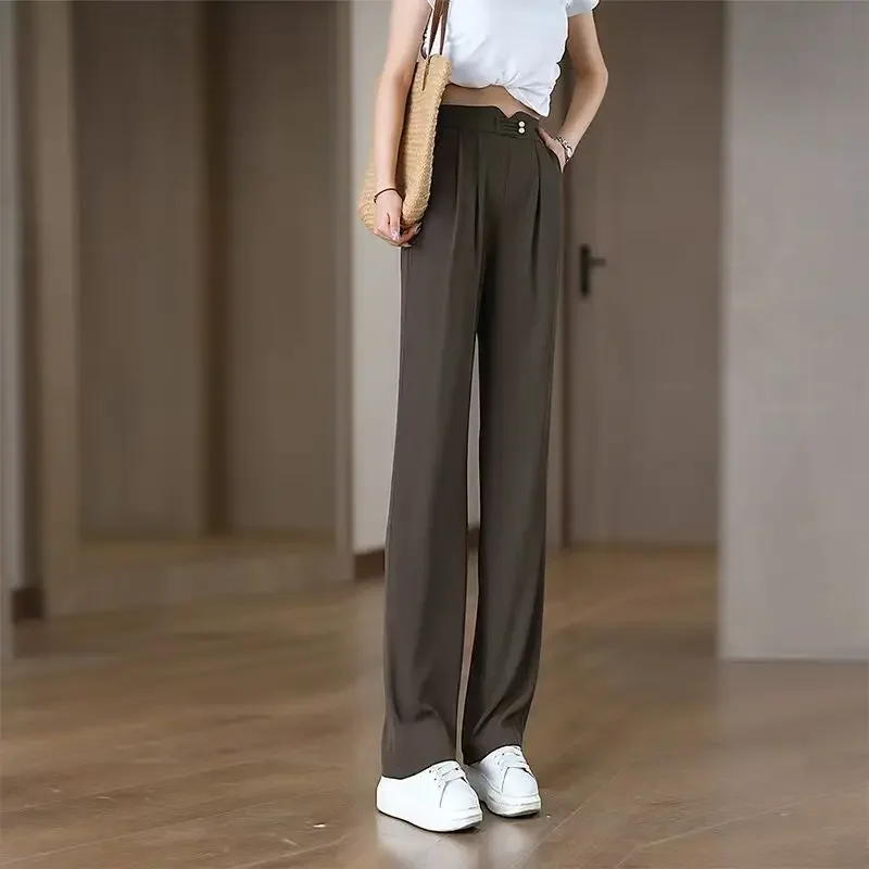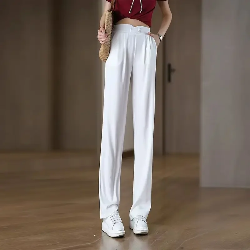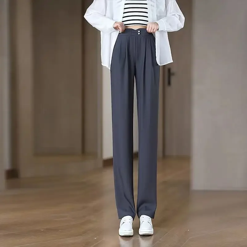 Summer New Ice Silk Cool Casual Pants Women High Waist Slimming Tall Draping Narrow Version Straight Leg Trousers
