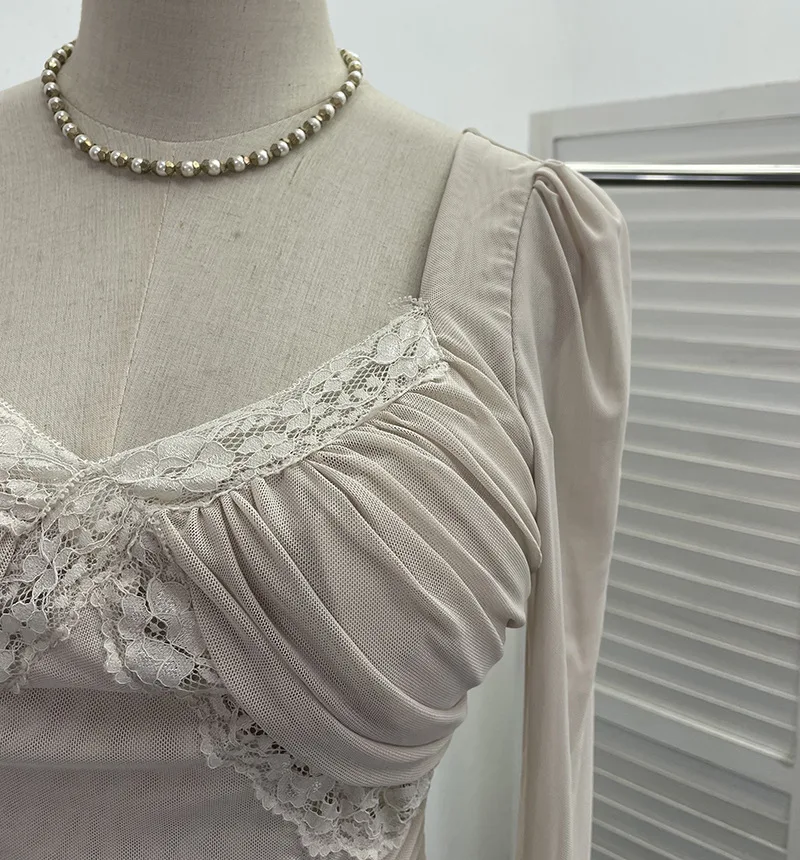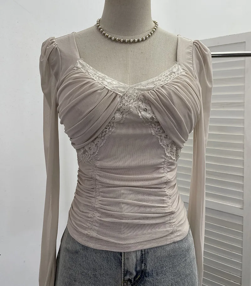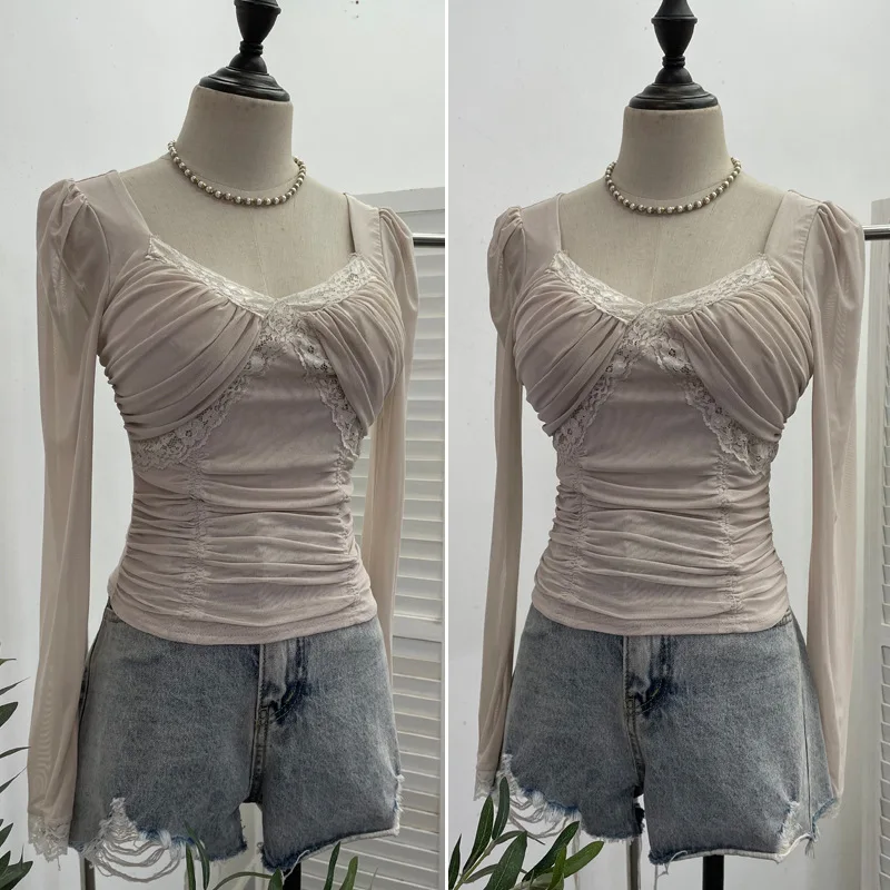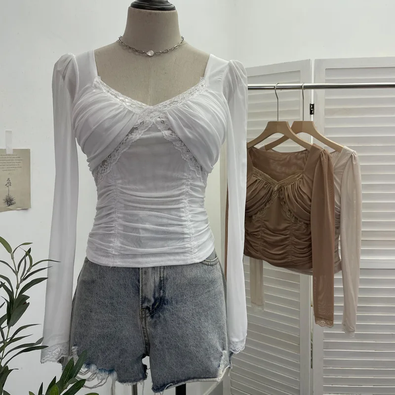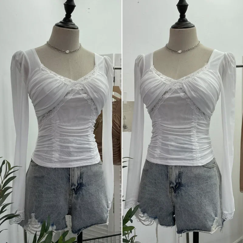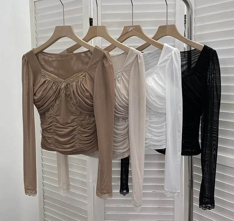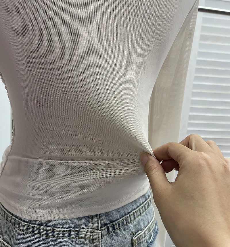 Recensisci per primo “T-shirt a maniche lunghe in rete impiombata con pizzo rivelatore del seno imbottito sexy da donna T-shirt corta slim fit Y2K Top Partyclub Leisure 2673” Annulla risposta