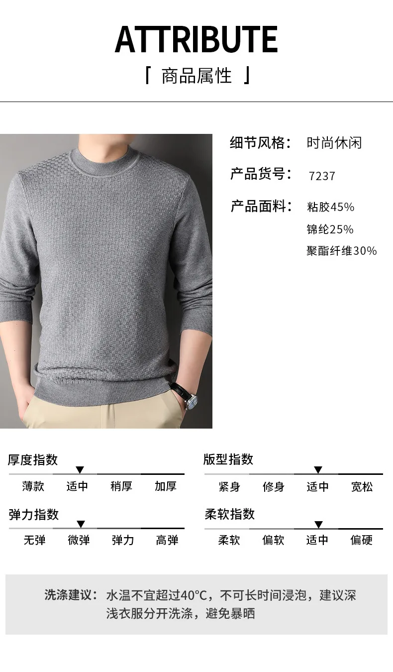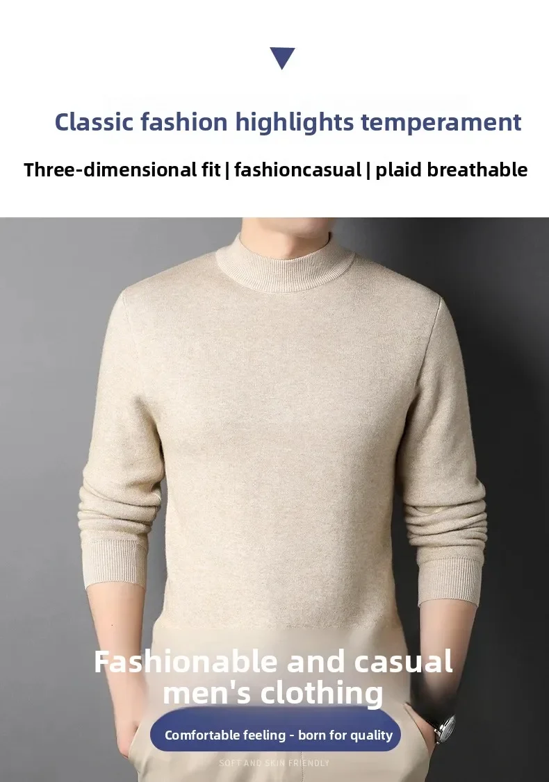 T-shirt a maniche lunghe primavera autunno tinta unita mezzo dolcevita maglione pullover per uomo maglione base abbigliamento da uomo