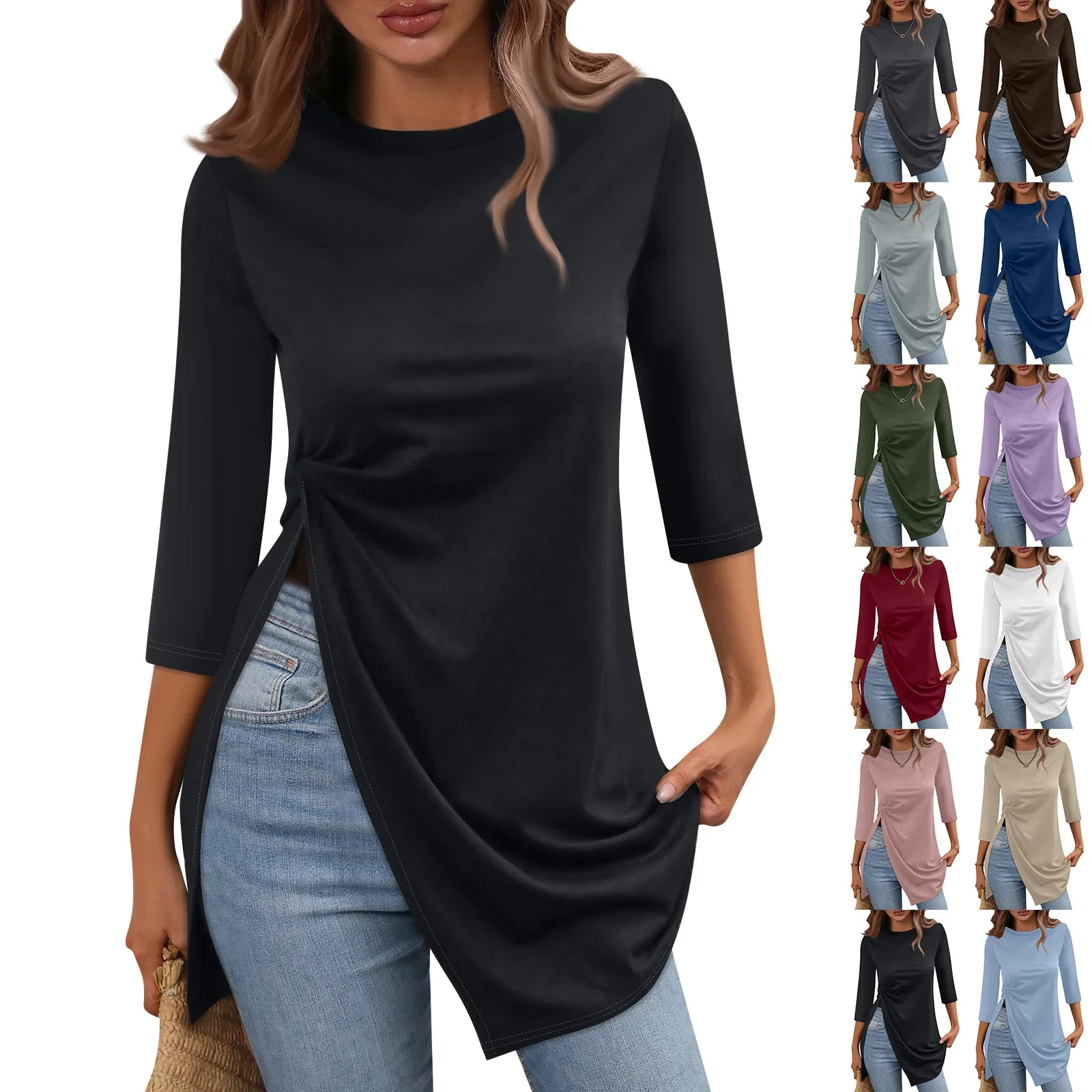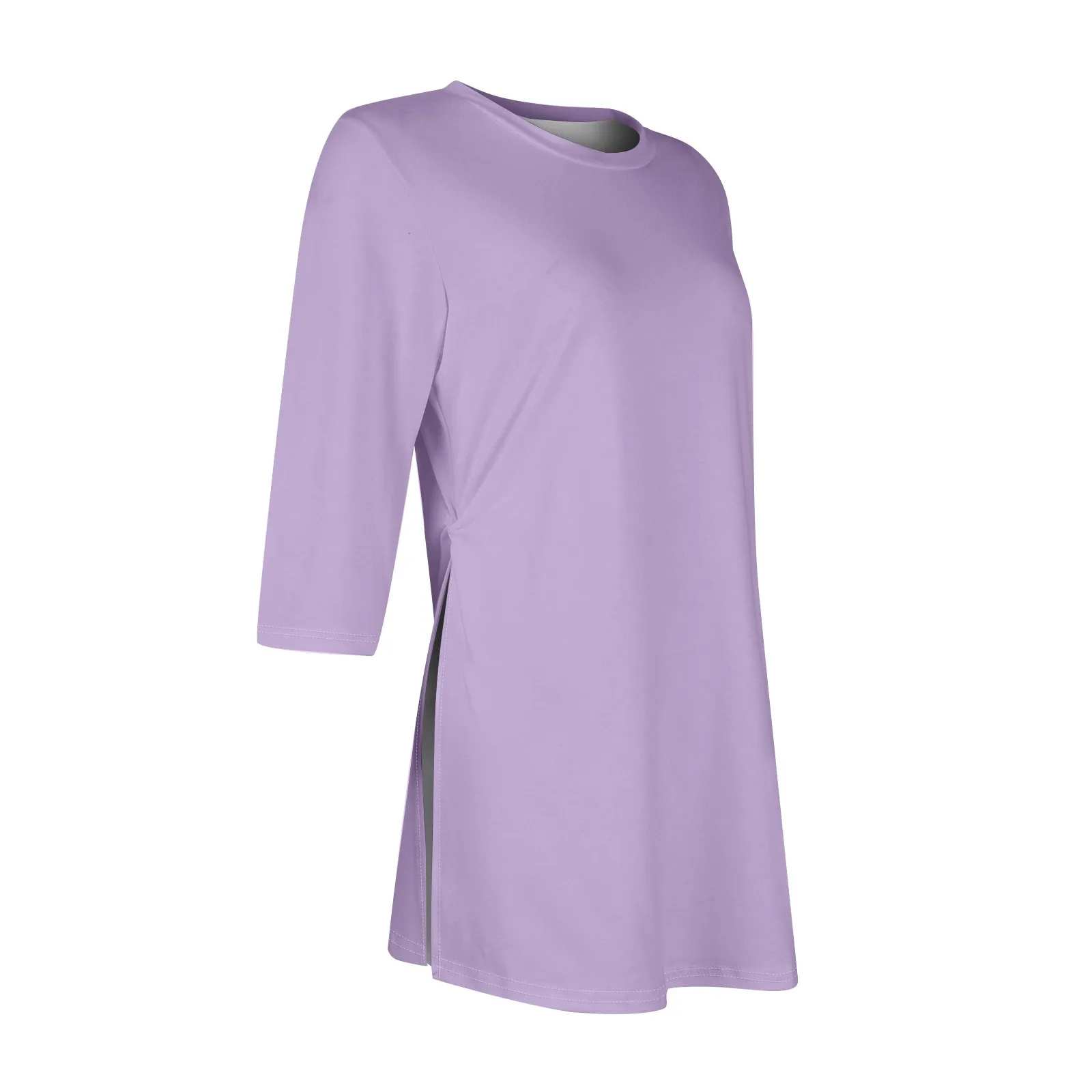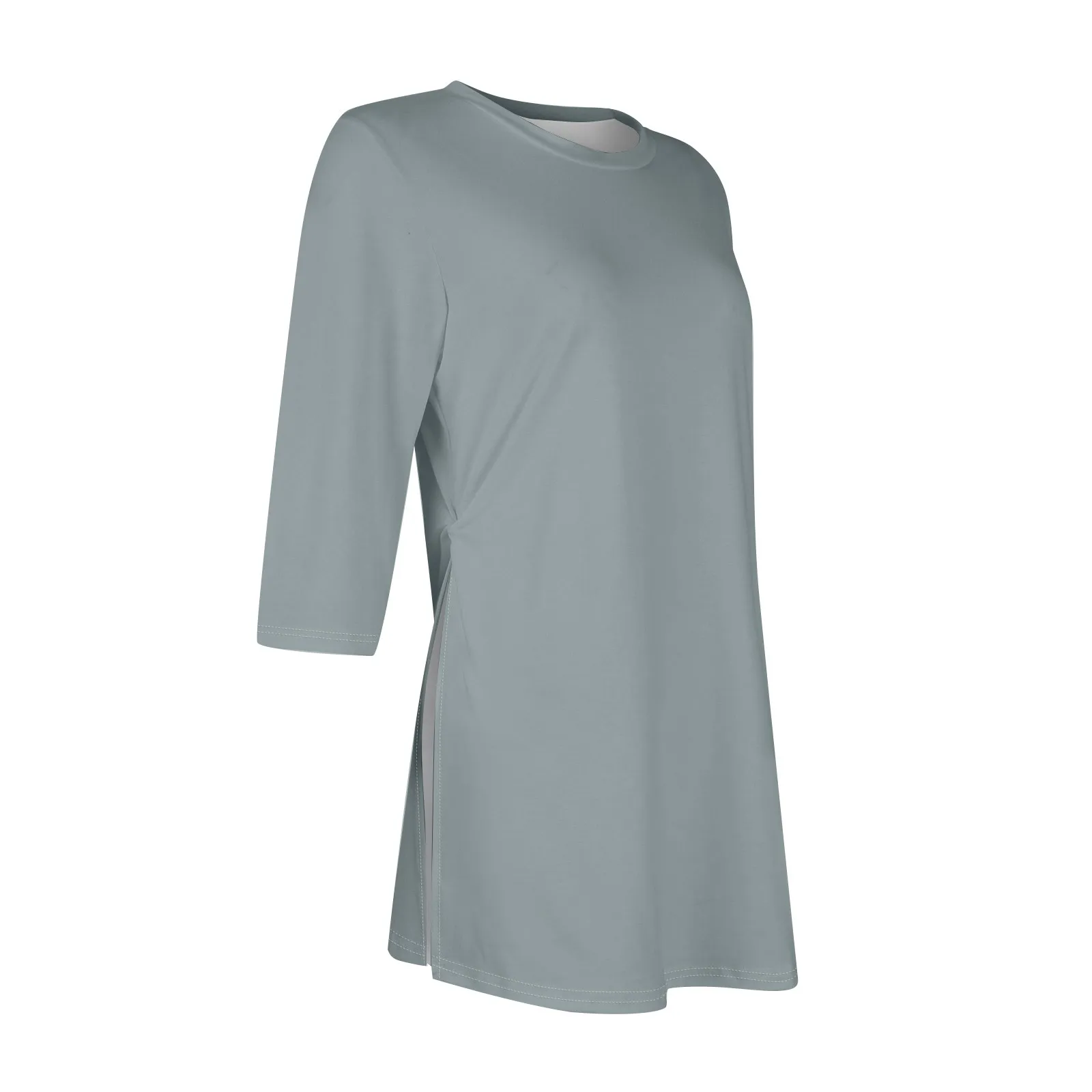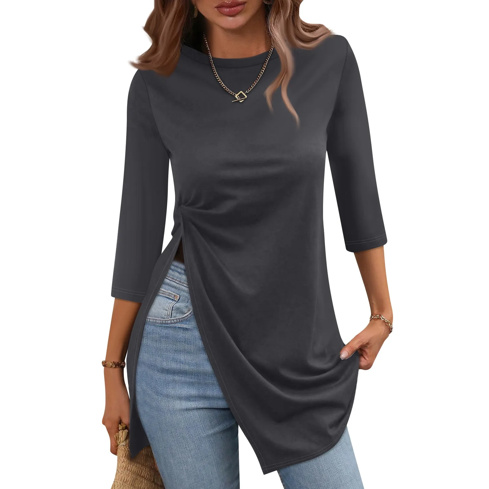 Maglietta Casual con orlo diviso moda donna girocollo manica corta 3/4