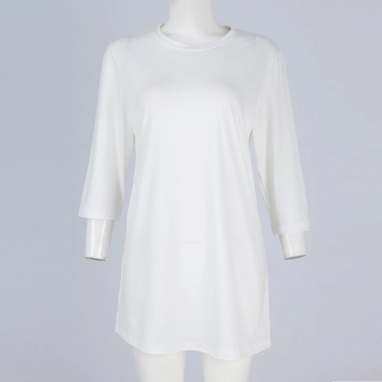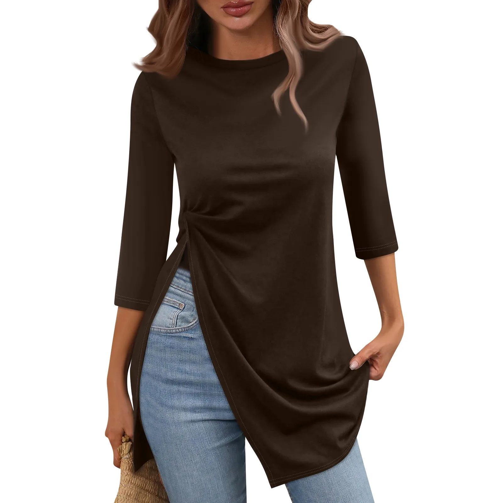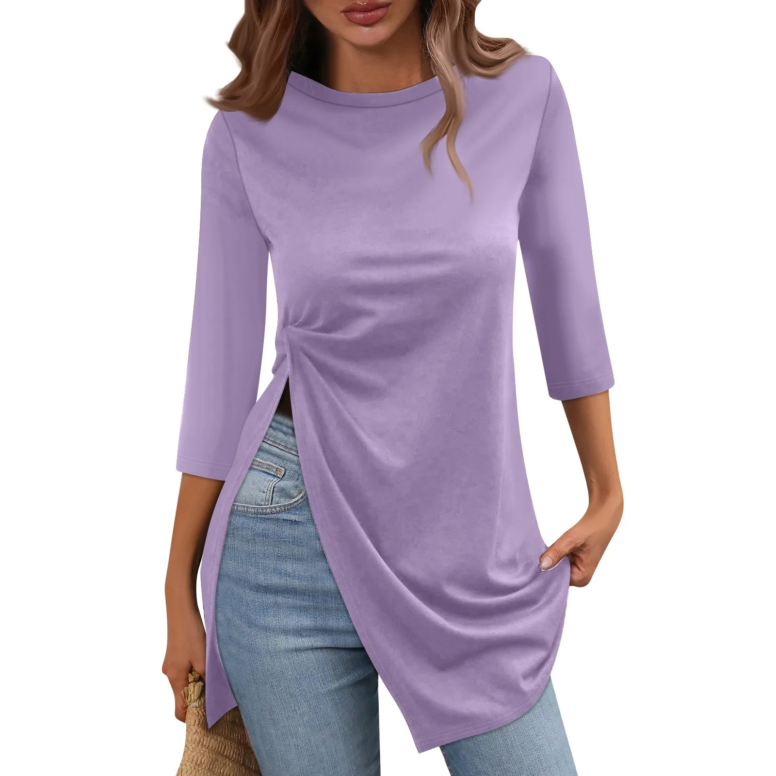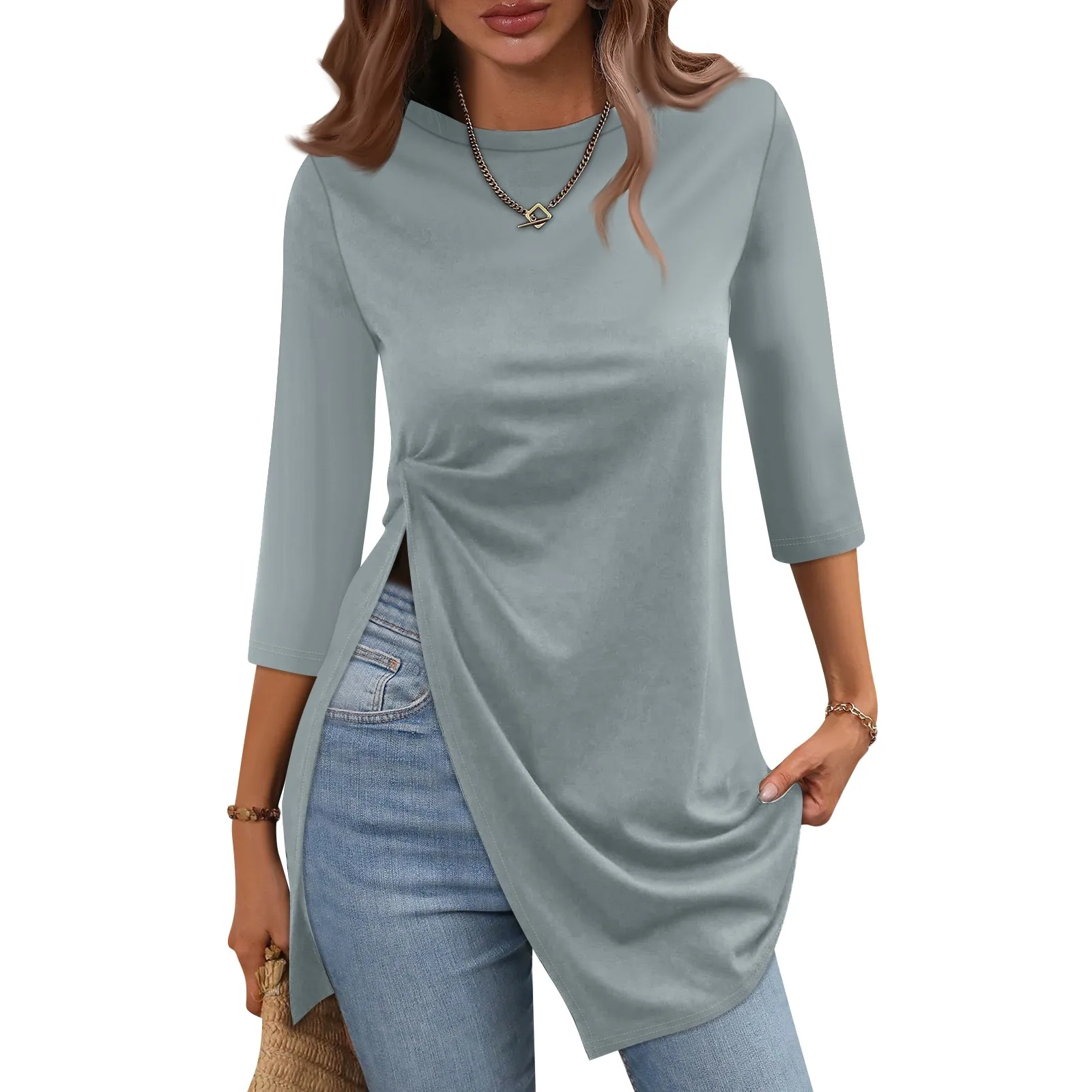 Maglietta Casual con orlo diviso moda donna girocollo manica corta 3/4