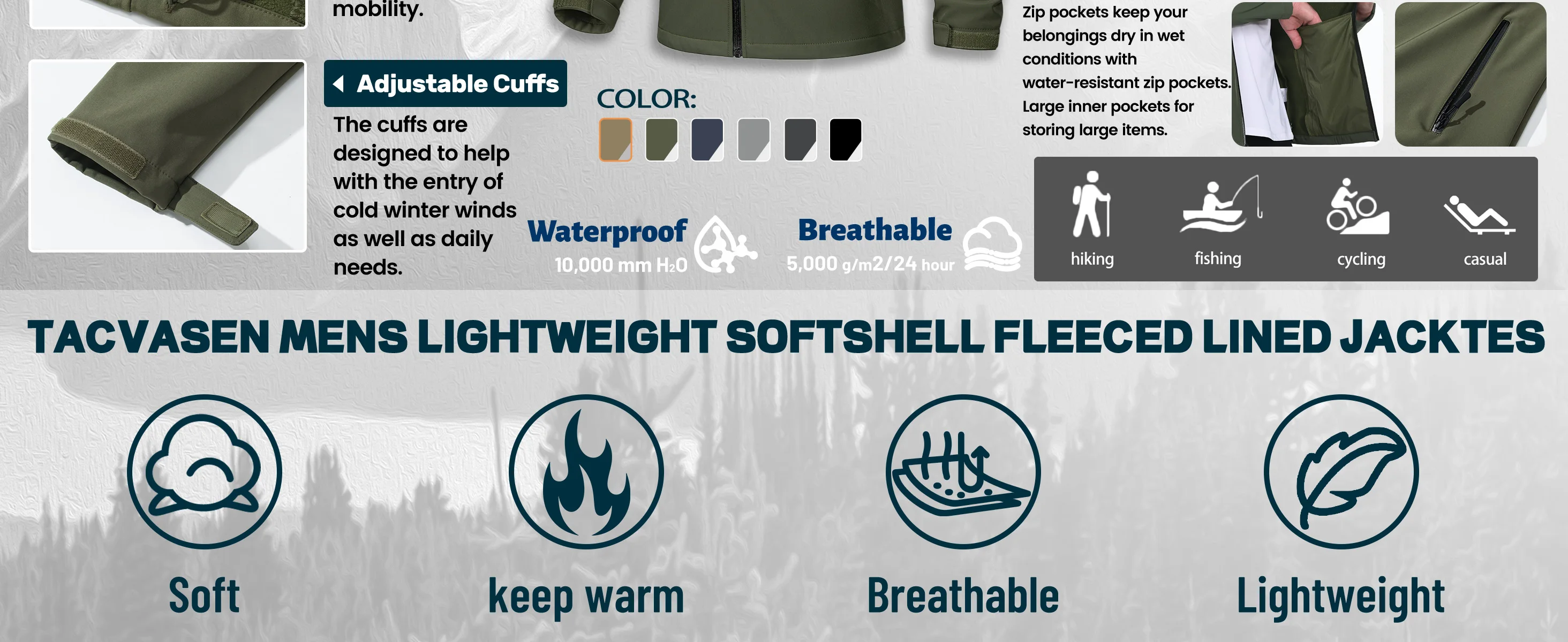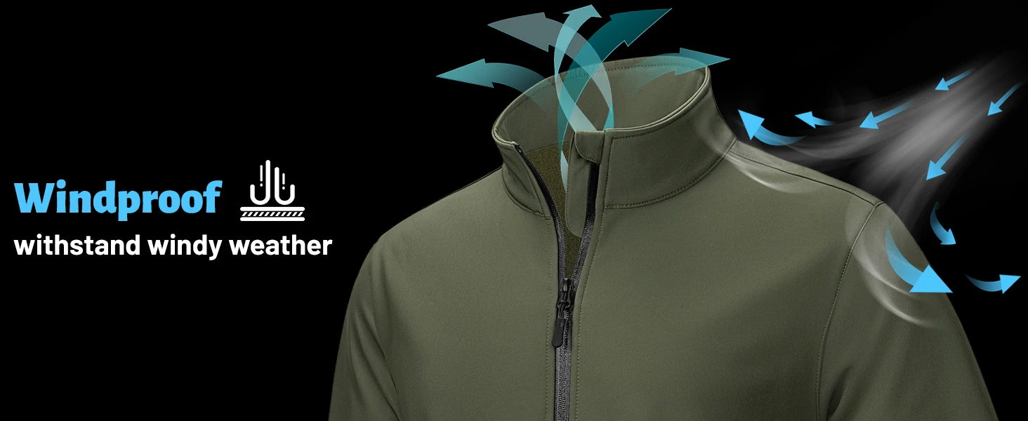 TACVASEN Giacca Softshell foderata in pile Giacca antipioggia da uomo con zip intera Giacca da lavoro all’aperto Primavera Trekking Escursionismo Giacca a vento da uomo