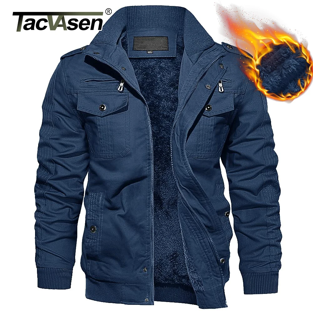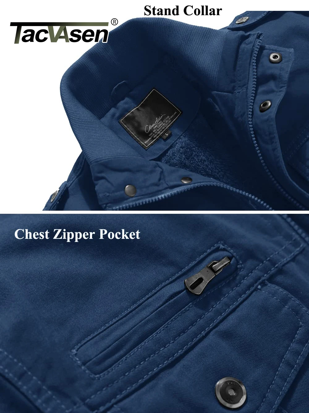 TACVASEN Giacche casual in pile addensato invernale oversize Giacca da uomo in cotone Cappotto Multi-tasche Giacca calda Parka Giacca a vento