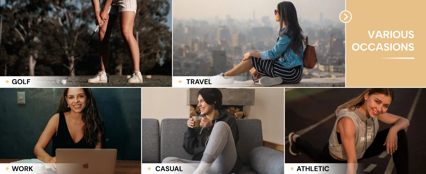 * Ottimo per attività all’aperto come escursioni, jogging, campeggio, arrampicata, golf, ecc.Anche una buona scelta per l’uso quotidiano, il relax e lo shopping.