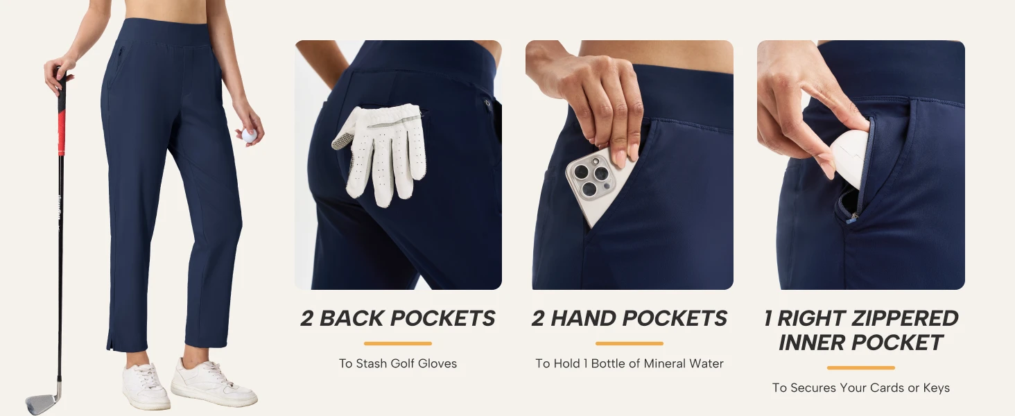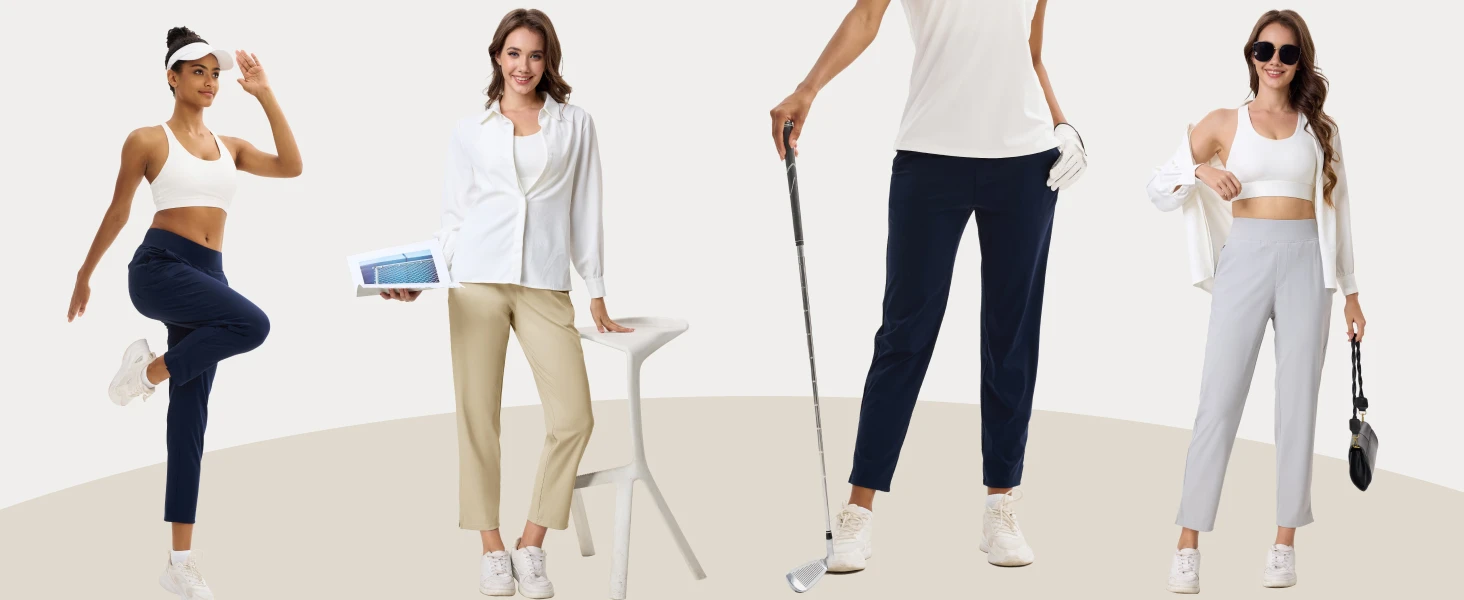 TACVASEN Pantaloni da golf da donna UPF 50+ Pantaloni a vita alta elasticizzati leggeri Pantaloni da lavoro casual ad asciugatura rapida Pantaloni sportivi da viaggio