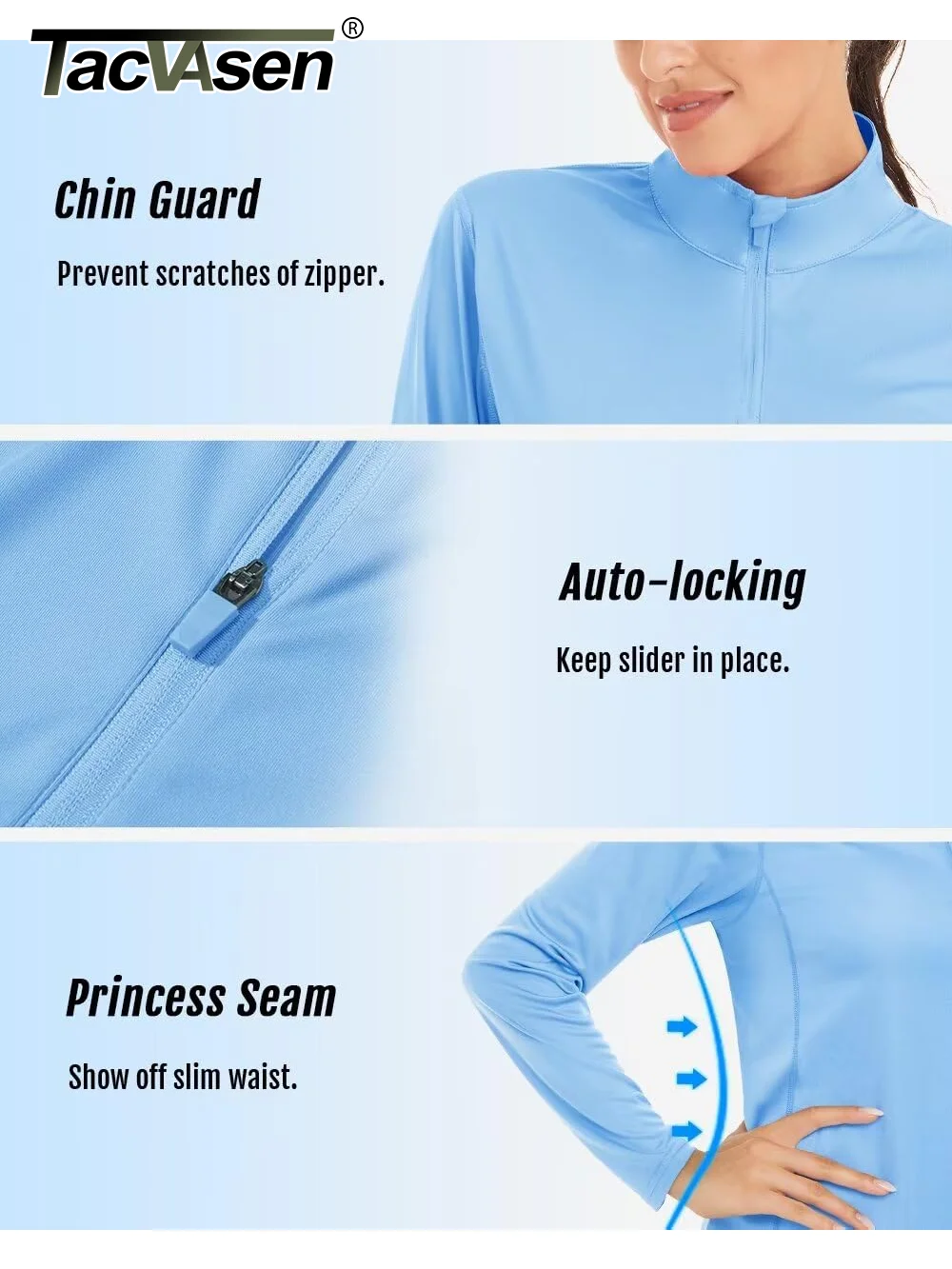 TACVASEN UPF 50 + magliette a manica lunga ad asciugatura rapida camicie da donna Anti UV/protezione solare Running escursionismo pesca t-shirt Outdoor