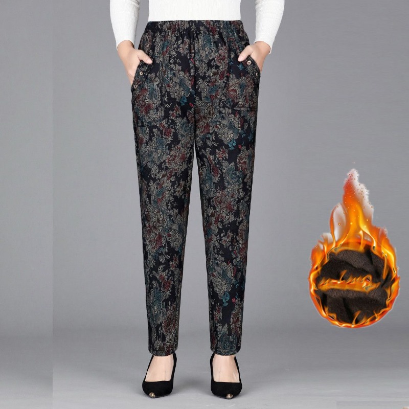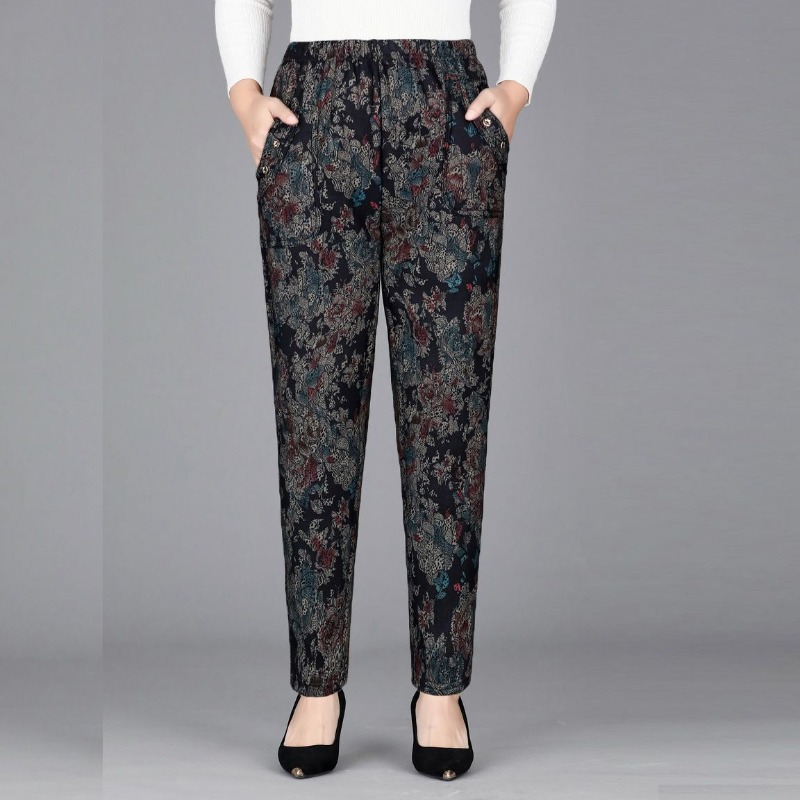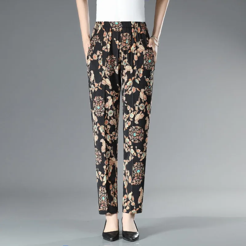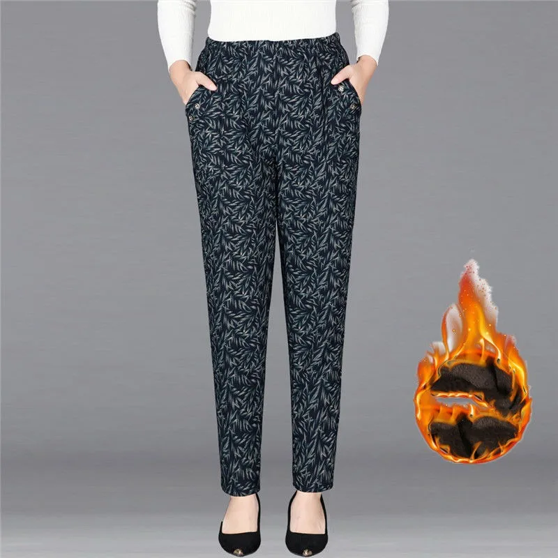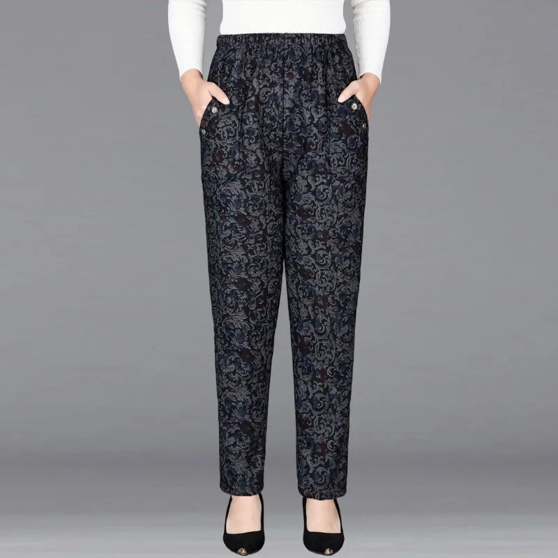 Tasche con bottoni stampa a vita alta da donna autunno e inverno pieghe elastiche moda Casual eleganti pantaloni a gamba dritta per pendolari