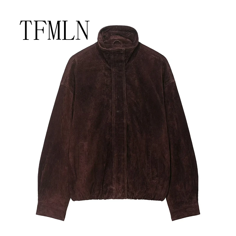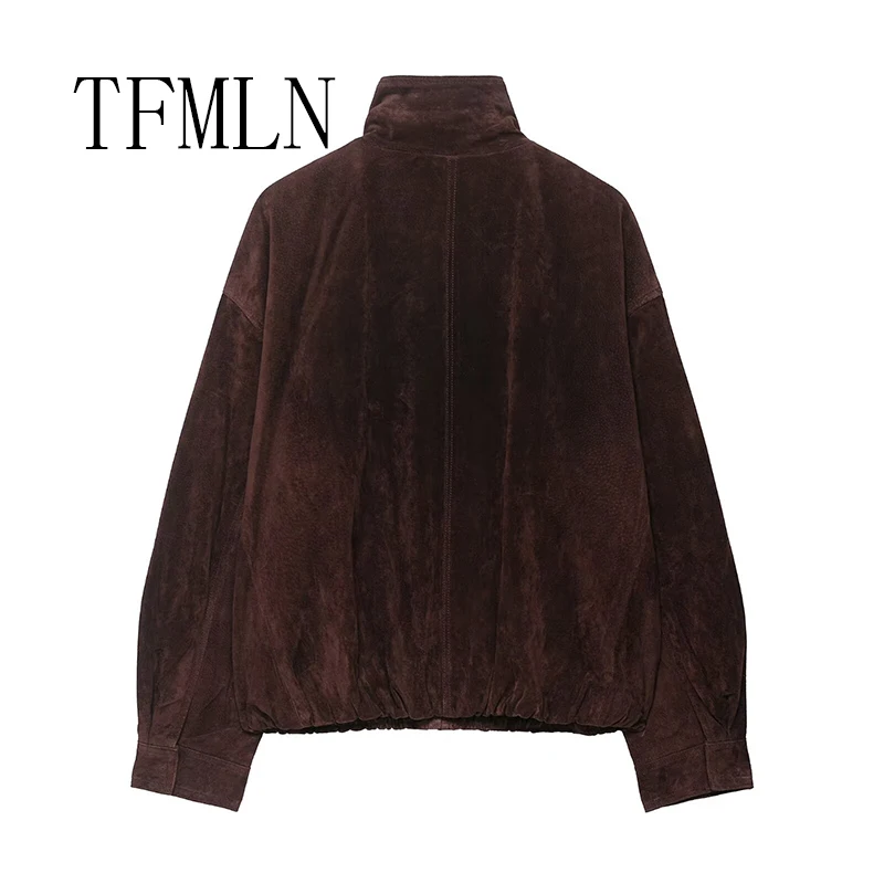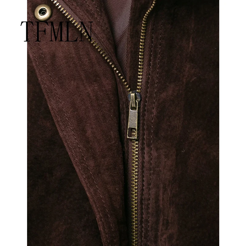 TFMLN Nuovo Autunno Inverno Giacca Allentata da Donna Manica Lunga Ritagliata Cerniera Giubbotti Moda Cappotti Caldi Capispalla Casual