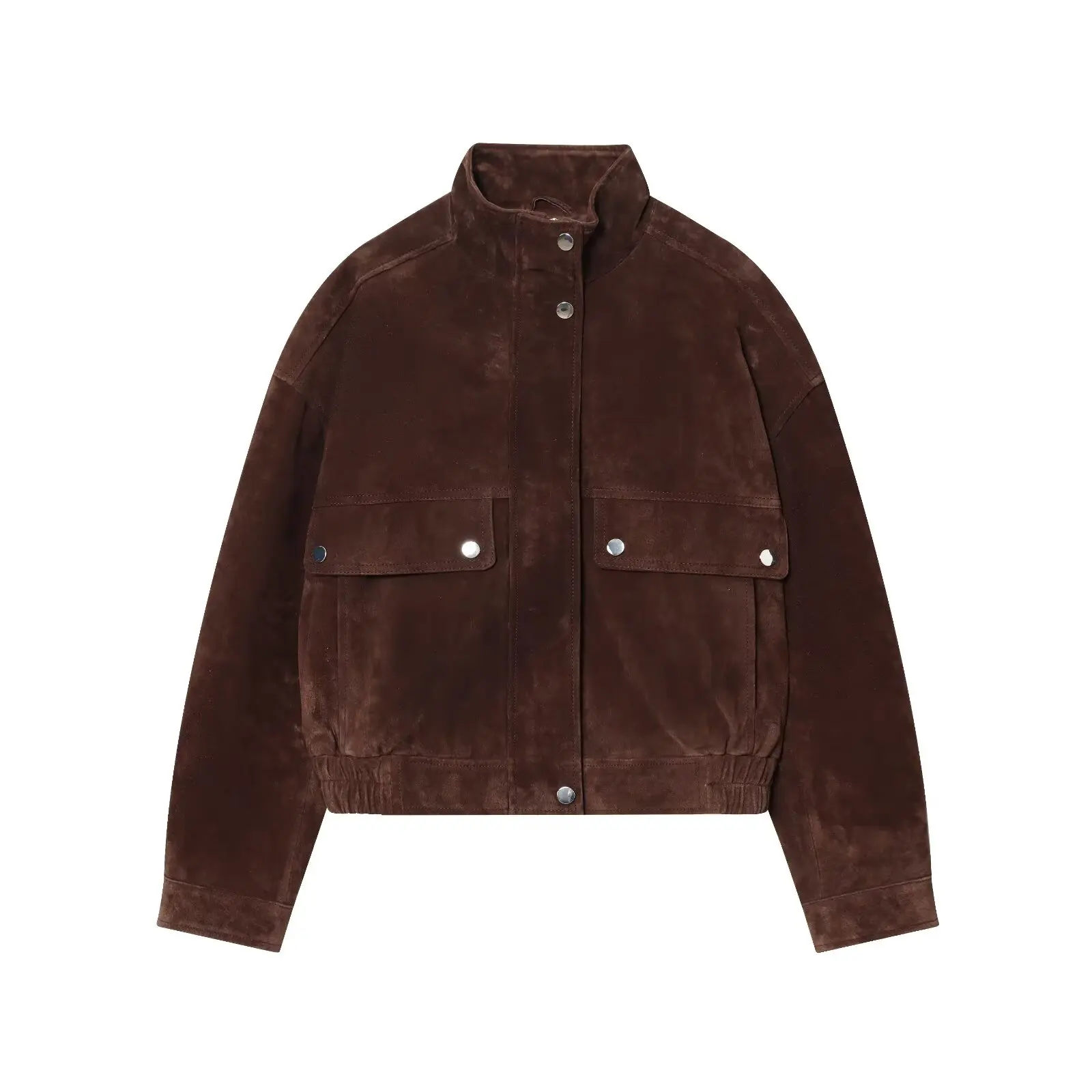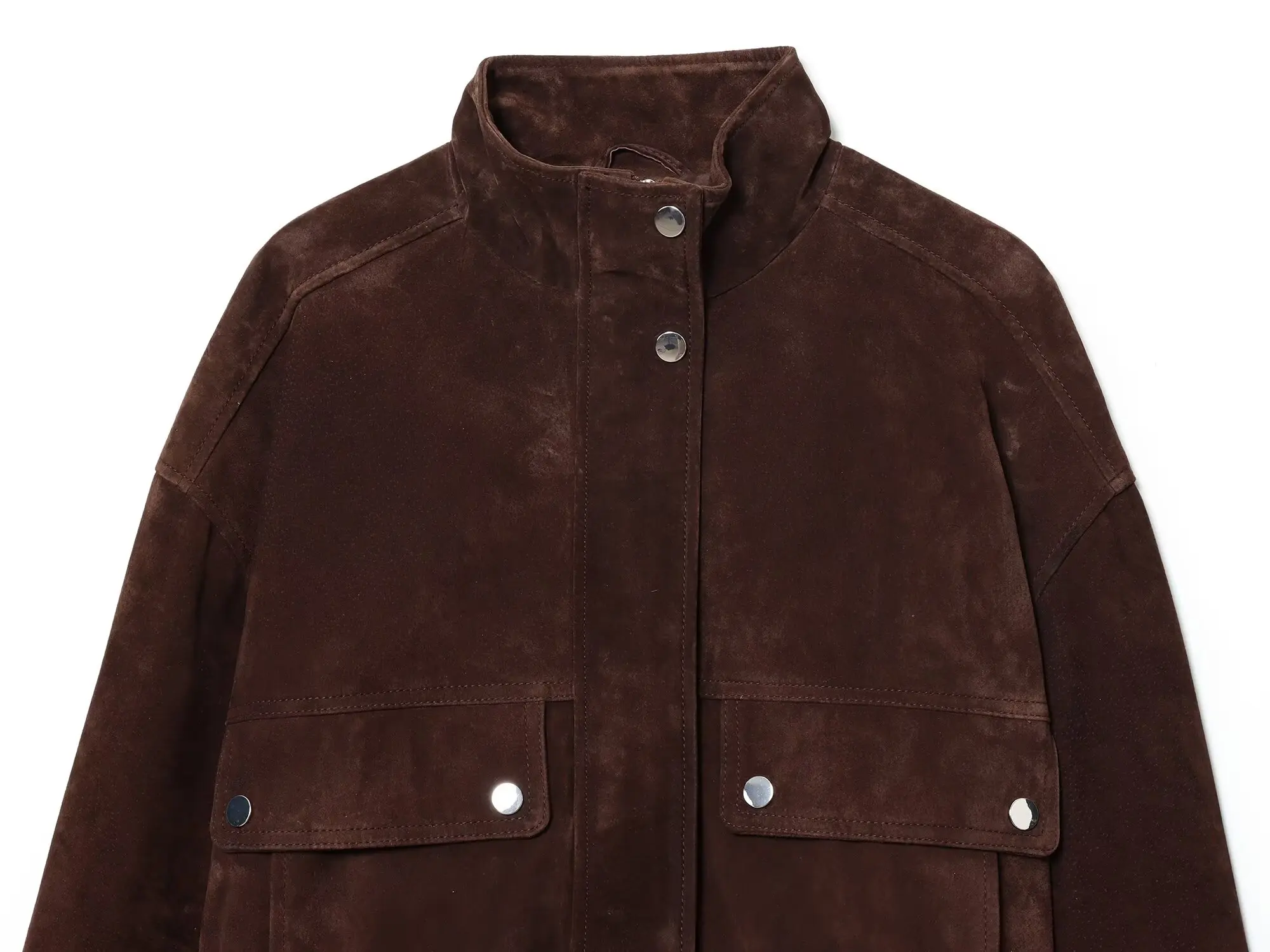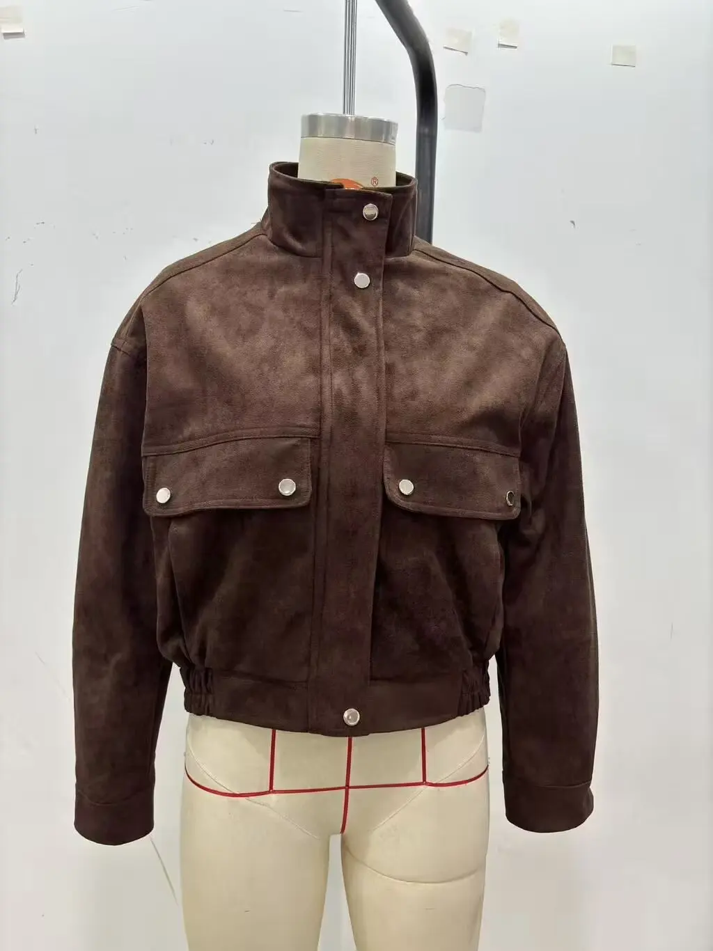 1 recensione per Tidalyf 2025 Giacca da donna in finta pelle scamosciata – Colletto rialzato, Manica lunga, Tasche decorative, Cappotto casual chic autunno inverno con orlo elastico
