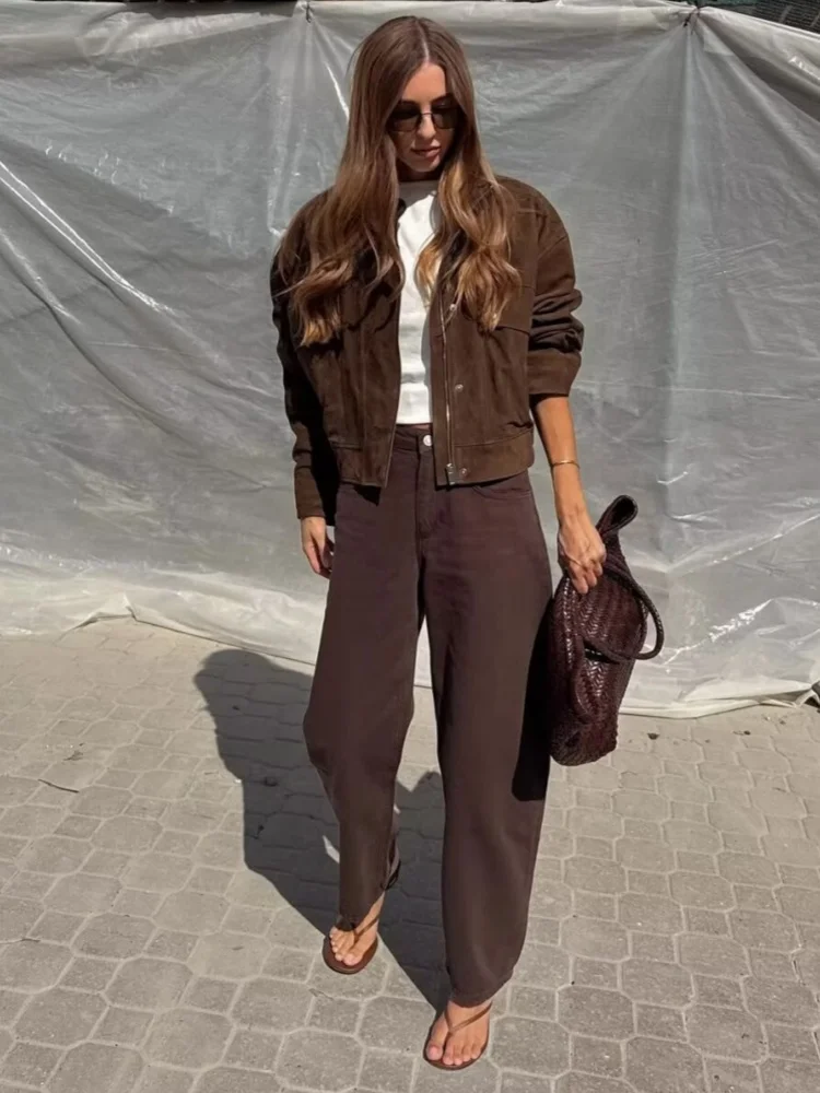 Tidalyf 2025 Giacca da donna in finta pelle scamosciata – Colletto rialzato, Manica lunga, Tasche decorative, Cappotto casual chic autunno inverno con orlo elastico