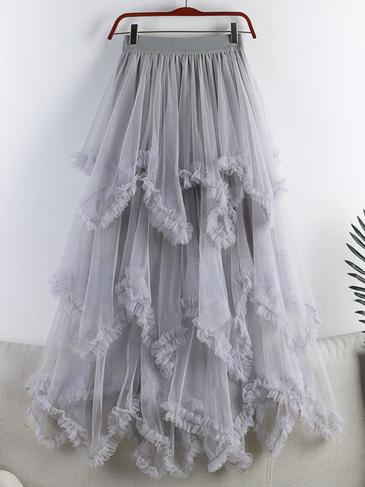 5 recensioni per TIGENA Tutu Tulle gonna lunga per le donne 2023 nuova estate coreana estetica carino irregolare maglia a vita alta Maxi gonna femminile viola
