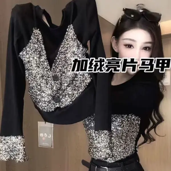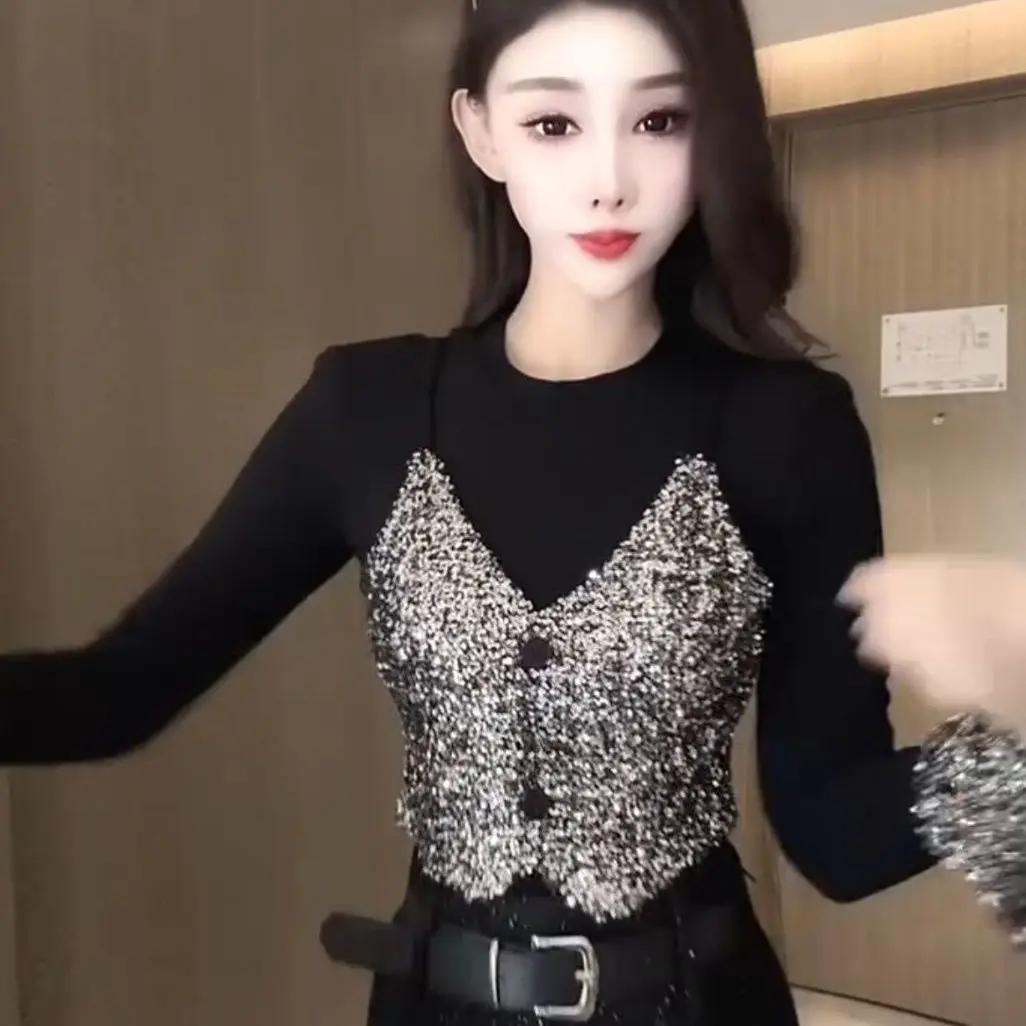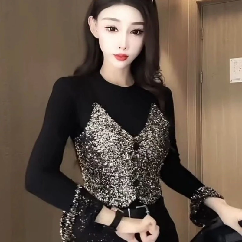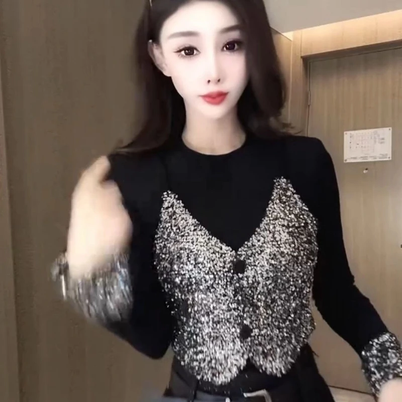 Recensisci per primo “Top con temperamento in due pezzi finto patchwork con paillettes Primavera Autunno Manica lunga Contrasto T-shirt vintage Moda Abbigliamento donna” Annulla risposta