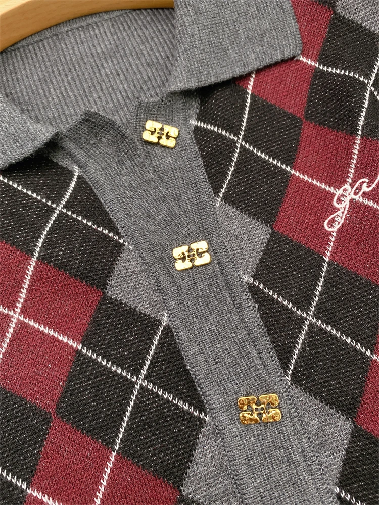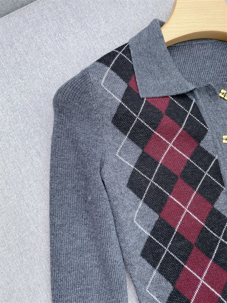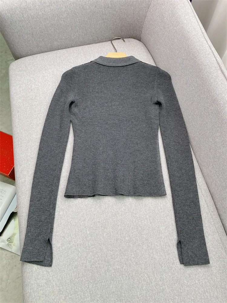 Top Donna y2k vestiti Lingge Modello Top Polo Style Pullover Maglione lavorato a maglia GA Tutta la lana 24autunno/inverno Nuovo articolo Linea in pile