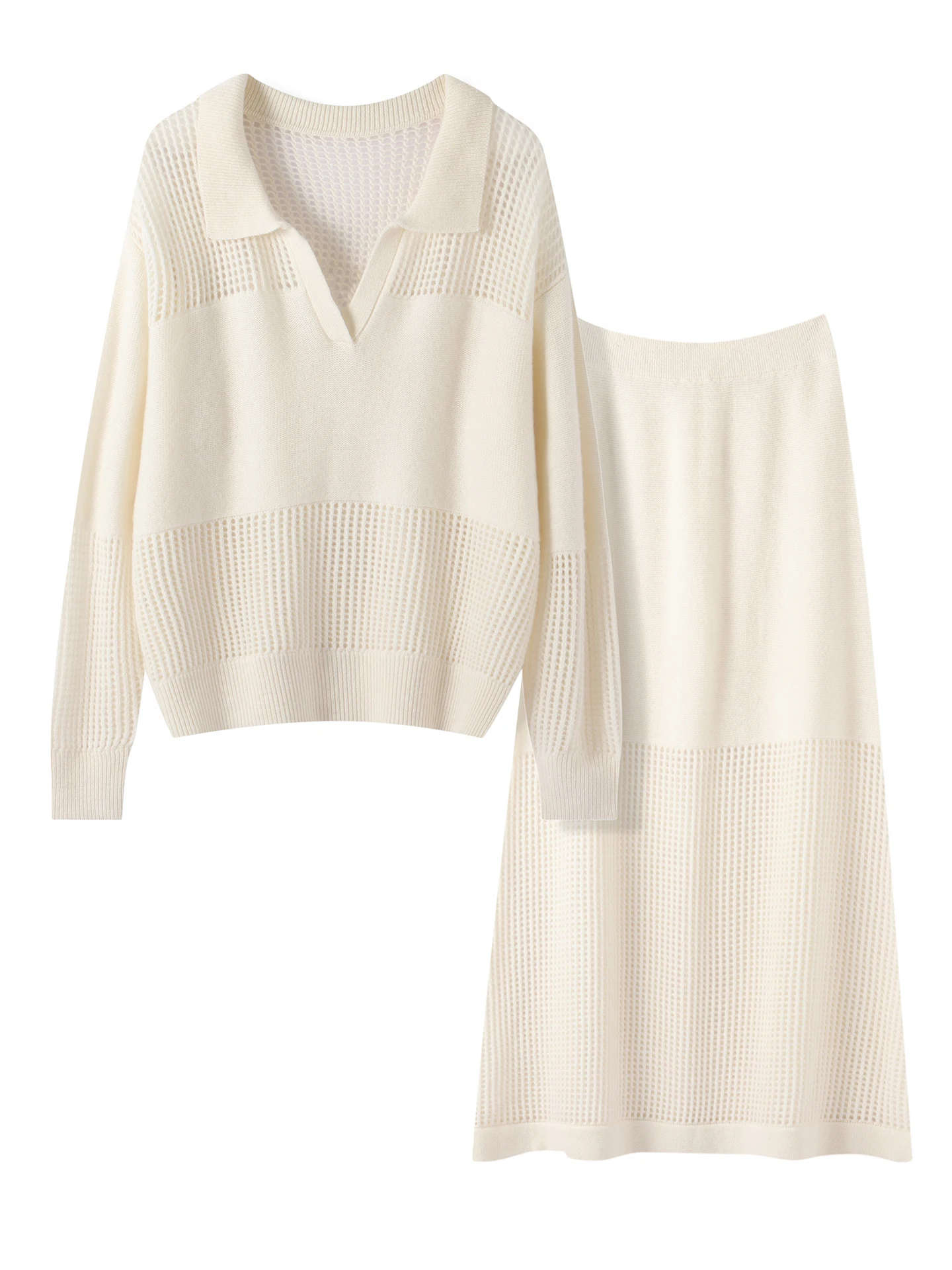 Top e gonna maglione lavorato a maglia in cashmere 100% da donna alla moda coreana Set casual primavera autunno abito elegante in due pezzi per donna
